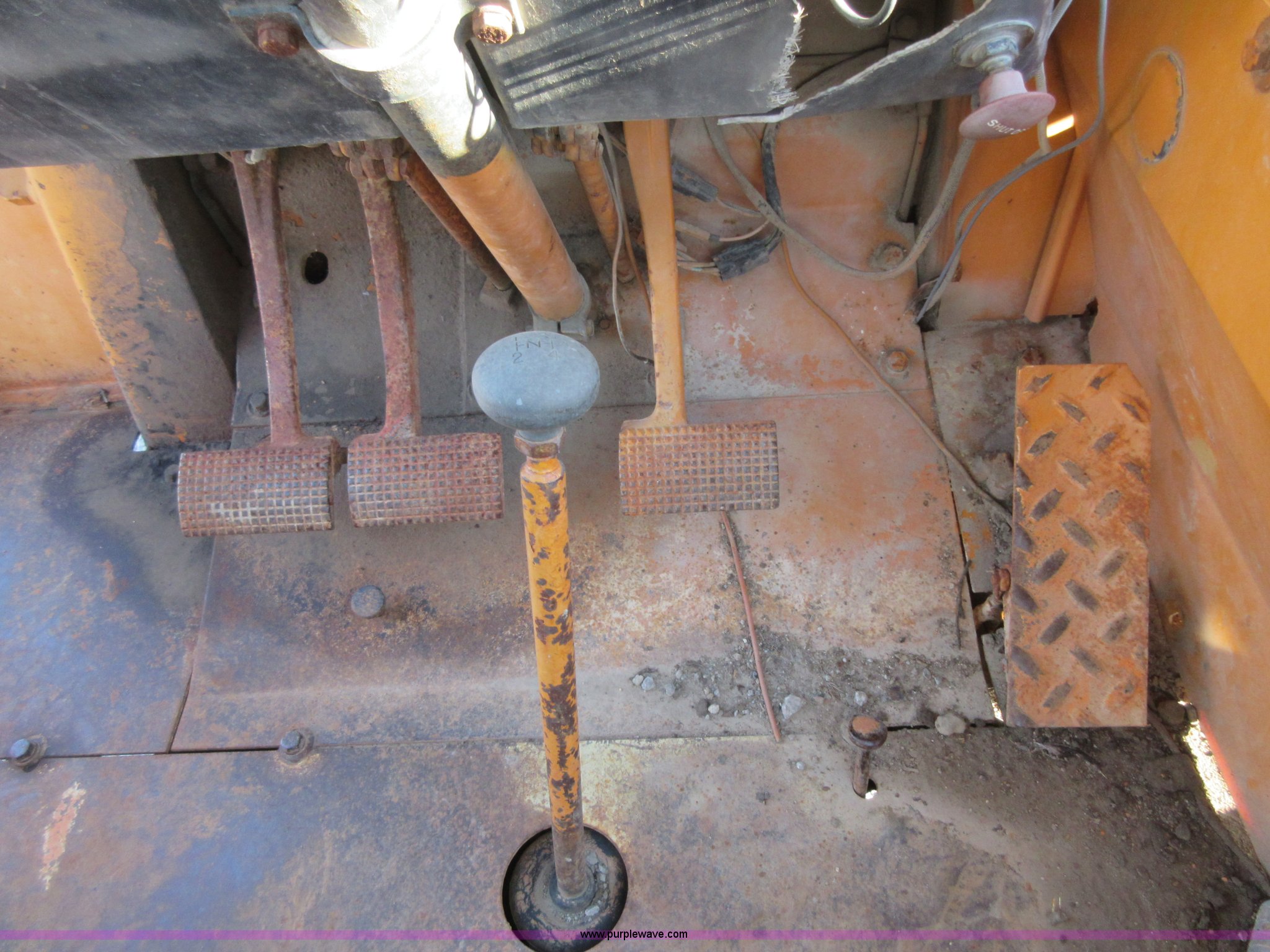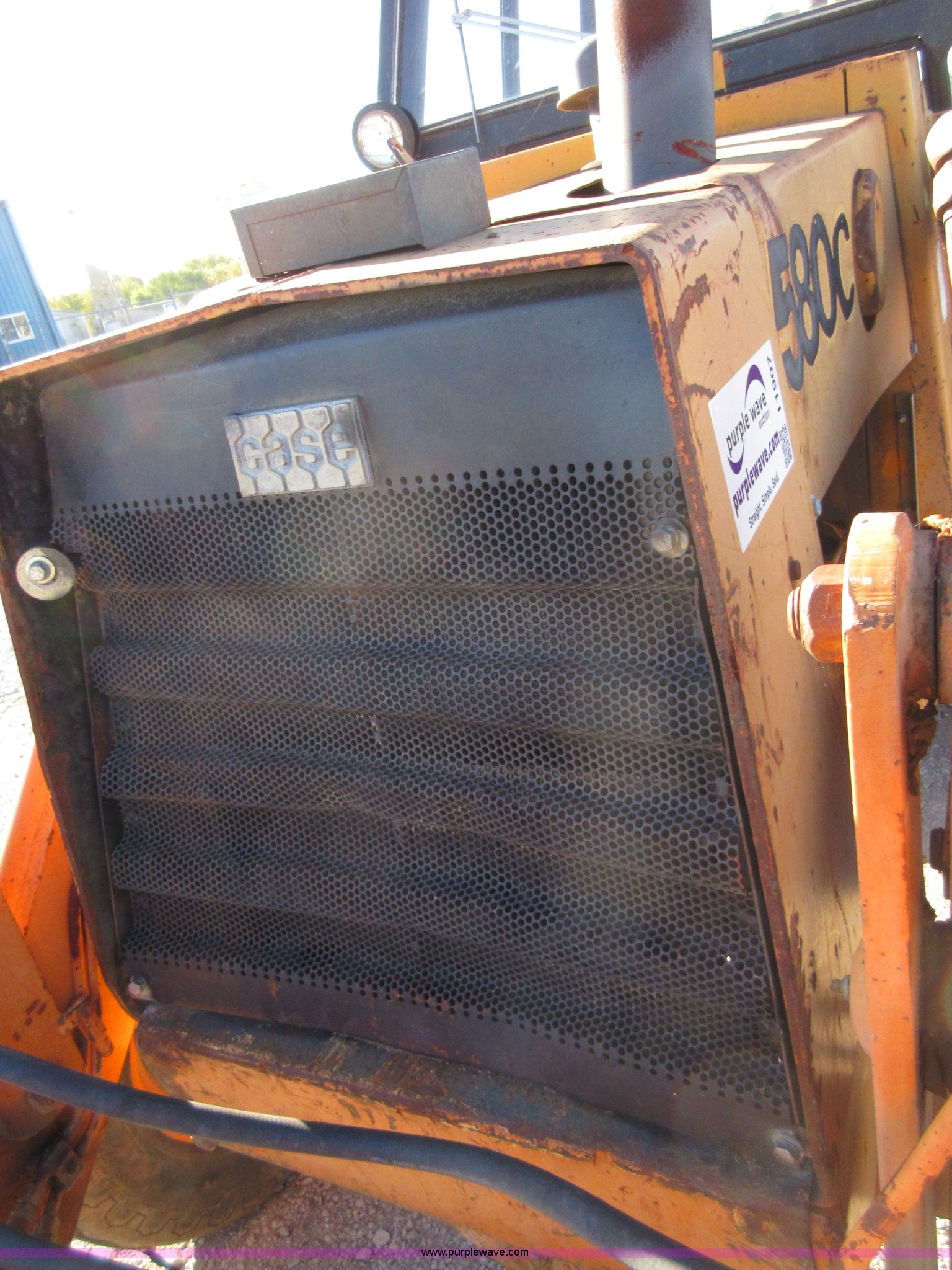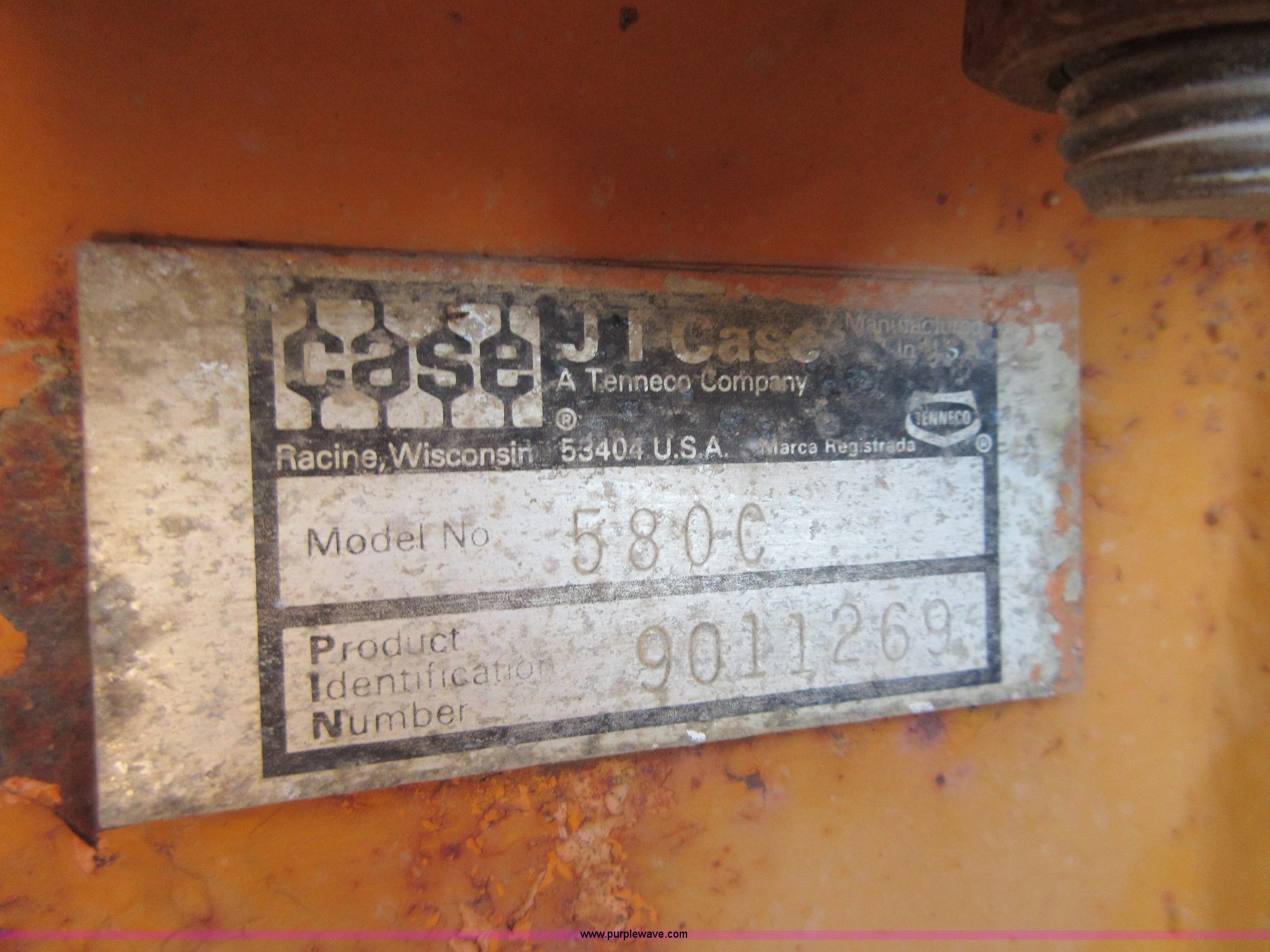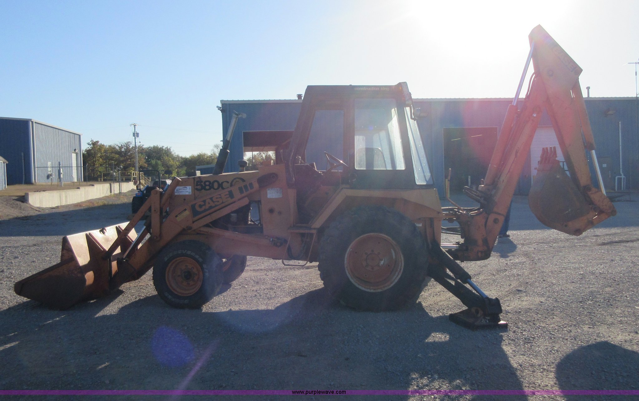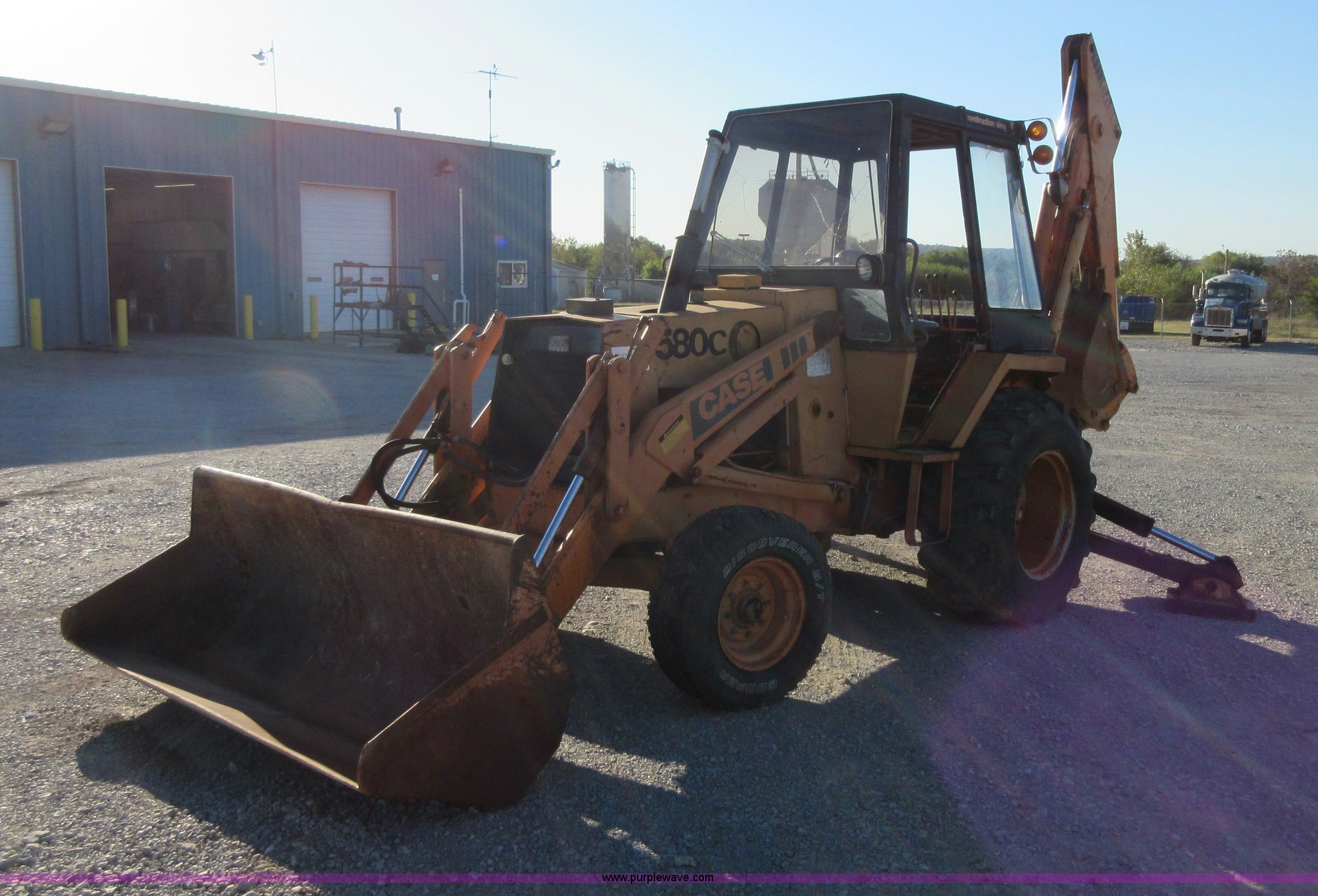 Purple Wave is selling a used Tractor Loader Backhoe in Oklahoma. This item is a 1980 Case 580C backhoe with the following: 3,278 hours on meter, Four cylinder diesel engine, Shuttle shift transmission, 4F-4R gears, EROPS, Three stick backhoe controls, Front work lights, 82"W loader bucket, 18"W four tooth backhoe bucket, 17.5L-24 rear tires, 10,192 lbs. base operating weight, Glass cracked and missing, Non-operational brakes, Serial 9011269