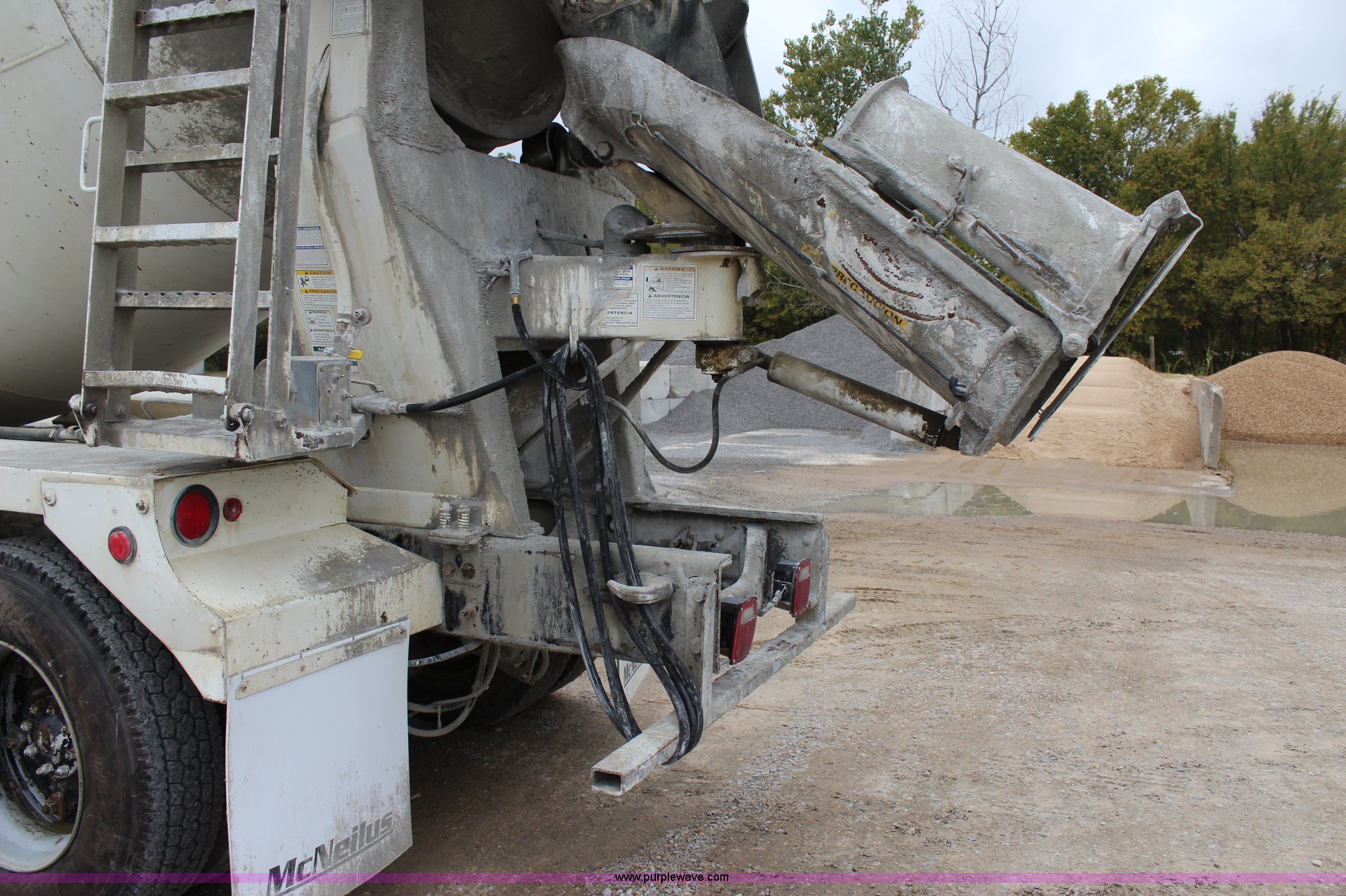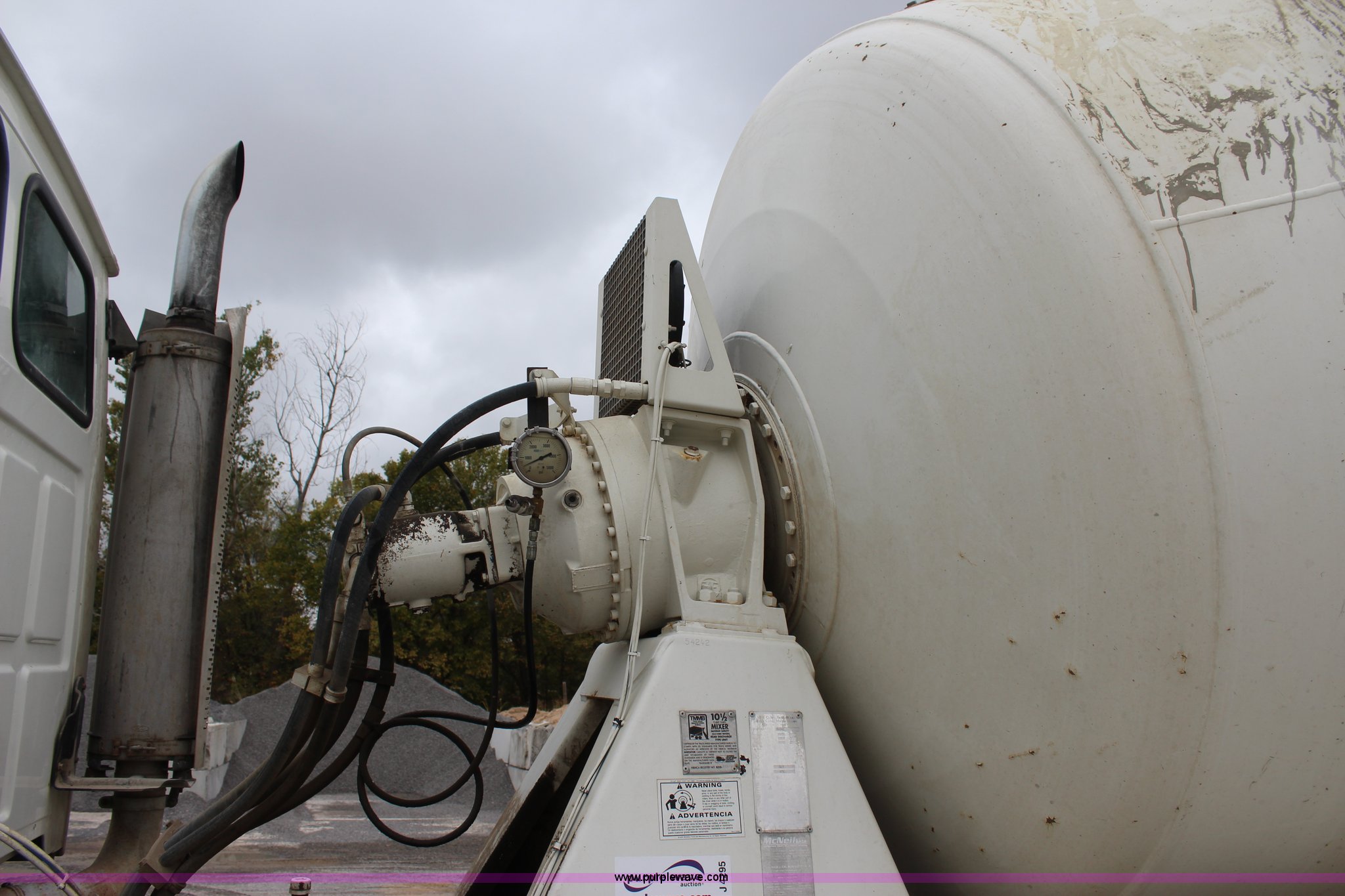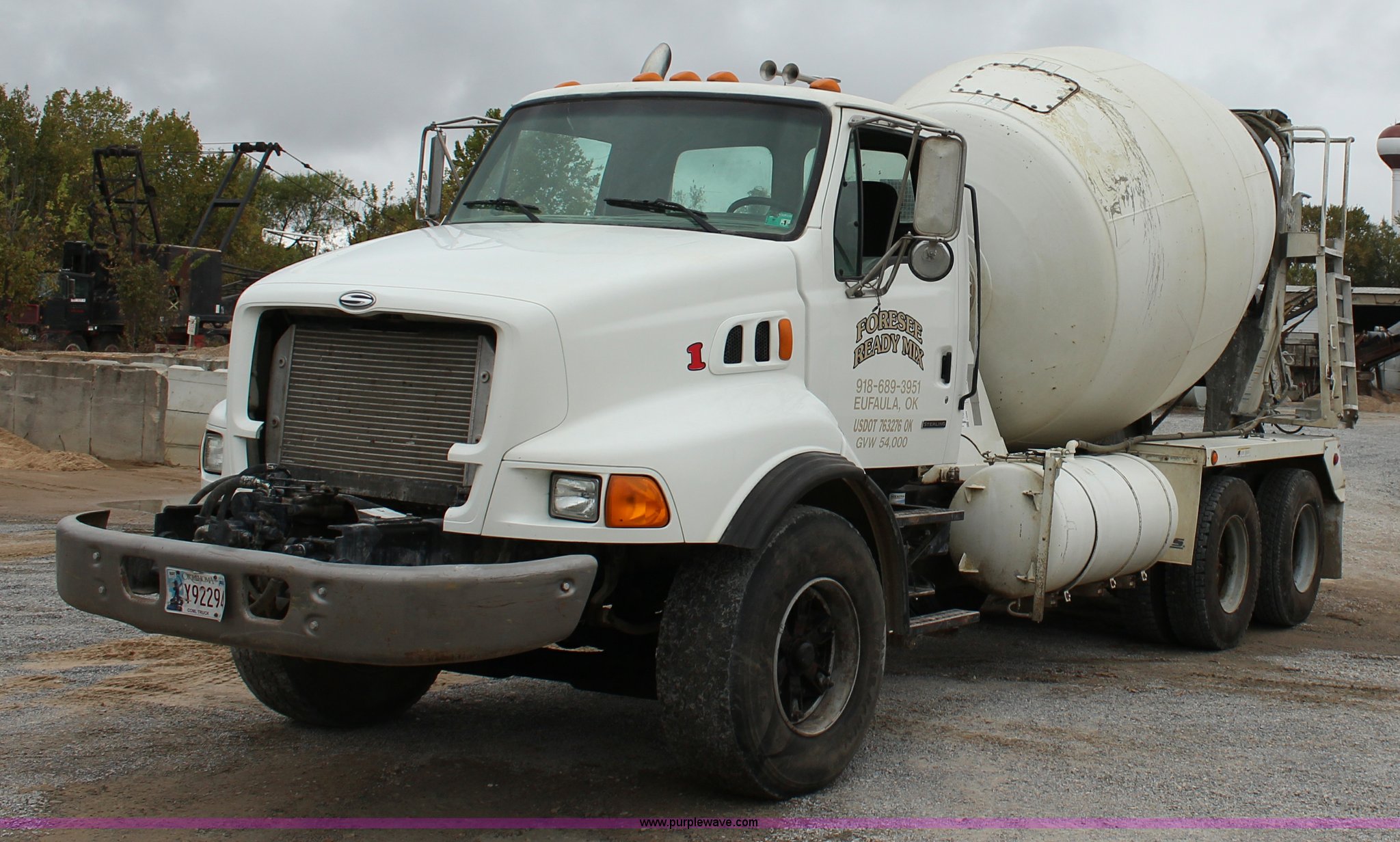 Purple Wave is selling a used Ready Mix or Pump Truck in Oklahoma. This item is a 1999 Sterling A9500 mixer truck with the following: 156,868 miles on odometer, 13,537 hours on meter, Cummins M11 10.8L L6 diesel engine, Eaton Fuller eight speed manual transmission, Tandem axle, AC and heat, Tilt, Heated mirrors, Air suspension seat, Backup alarm, 10.5 cubic yard mixer, Steel chute, Single rear exhaust stack, Single fuel tank, Spring over walking beam suspension, Air brakes, 425/65R22.5 front tires, 11R22.5 rear tires, GVWR 66,000 lbs, FAWR 20,000 lbs, IAWR 23,000 lbs, RAWR 23,000 lbs, Unit# 1