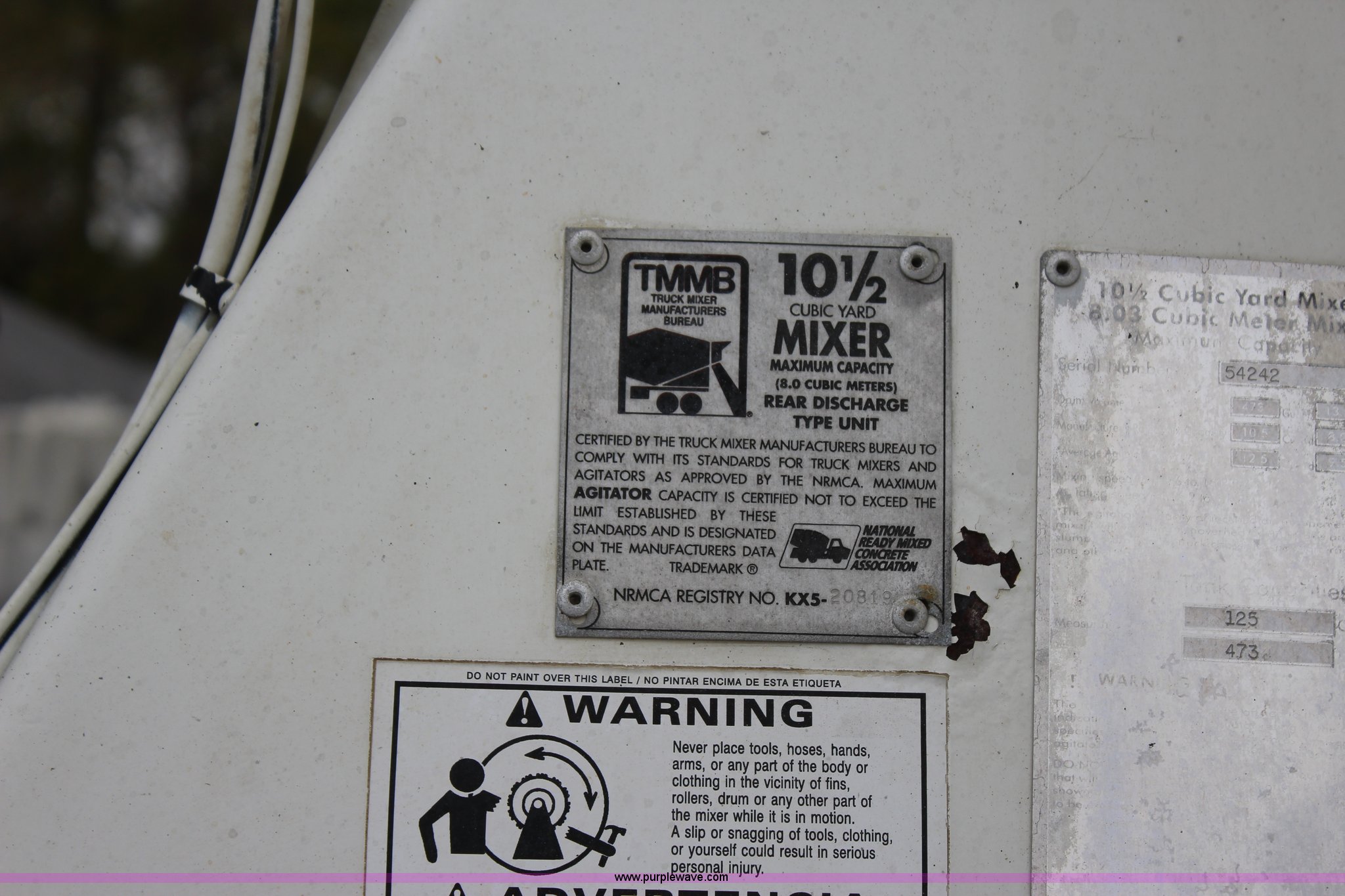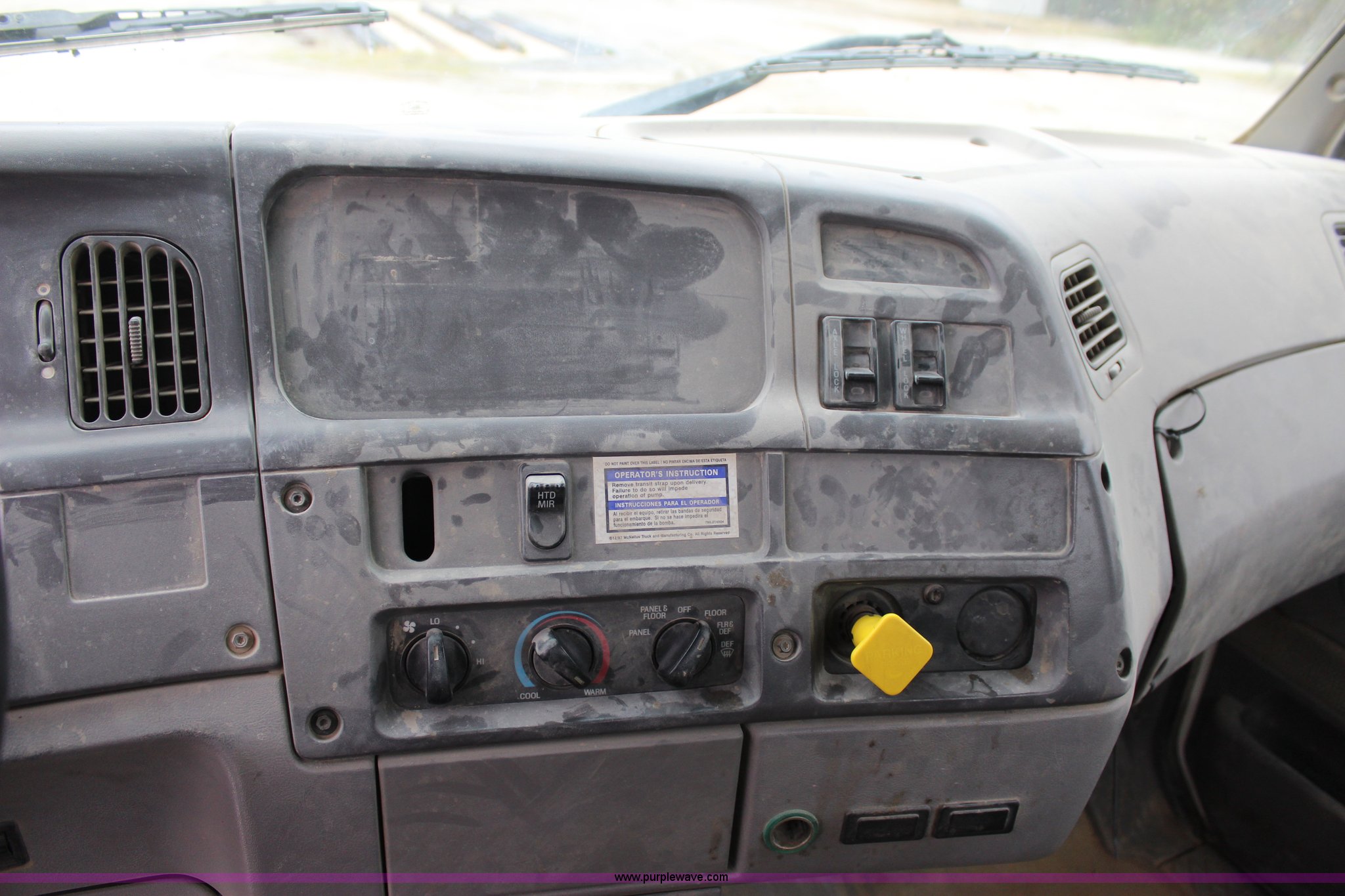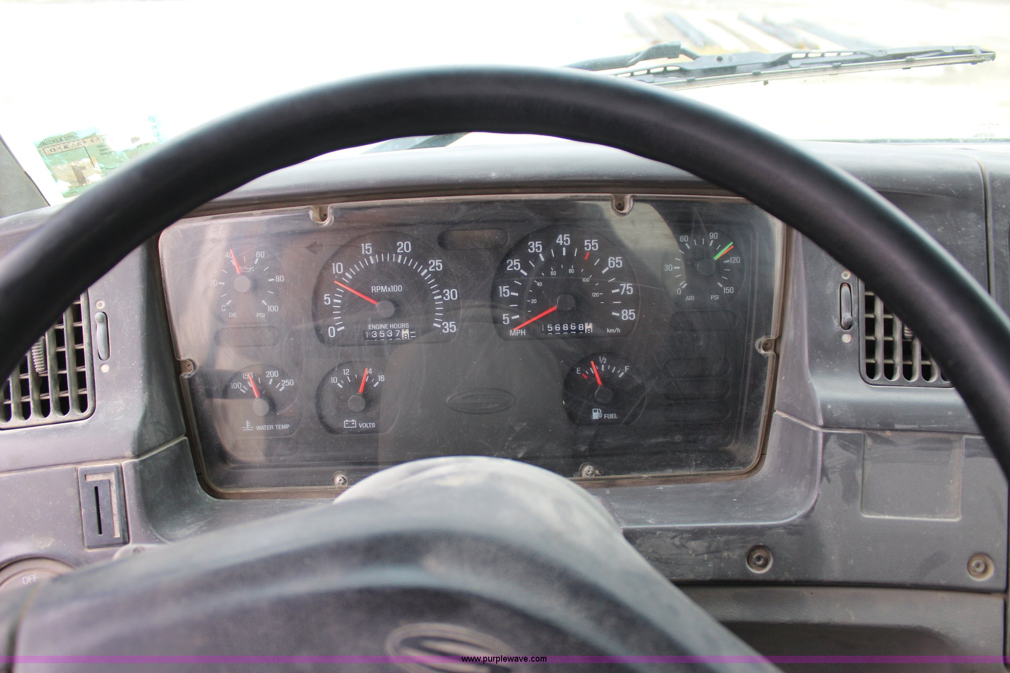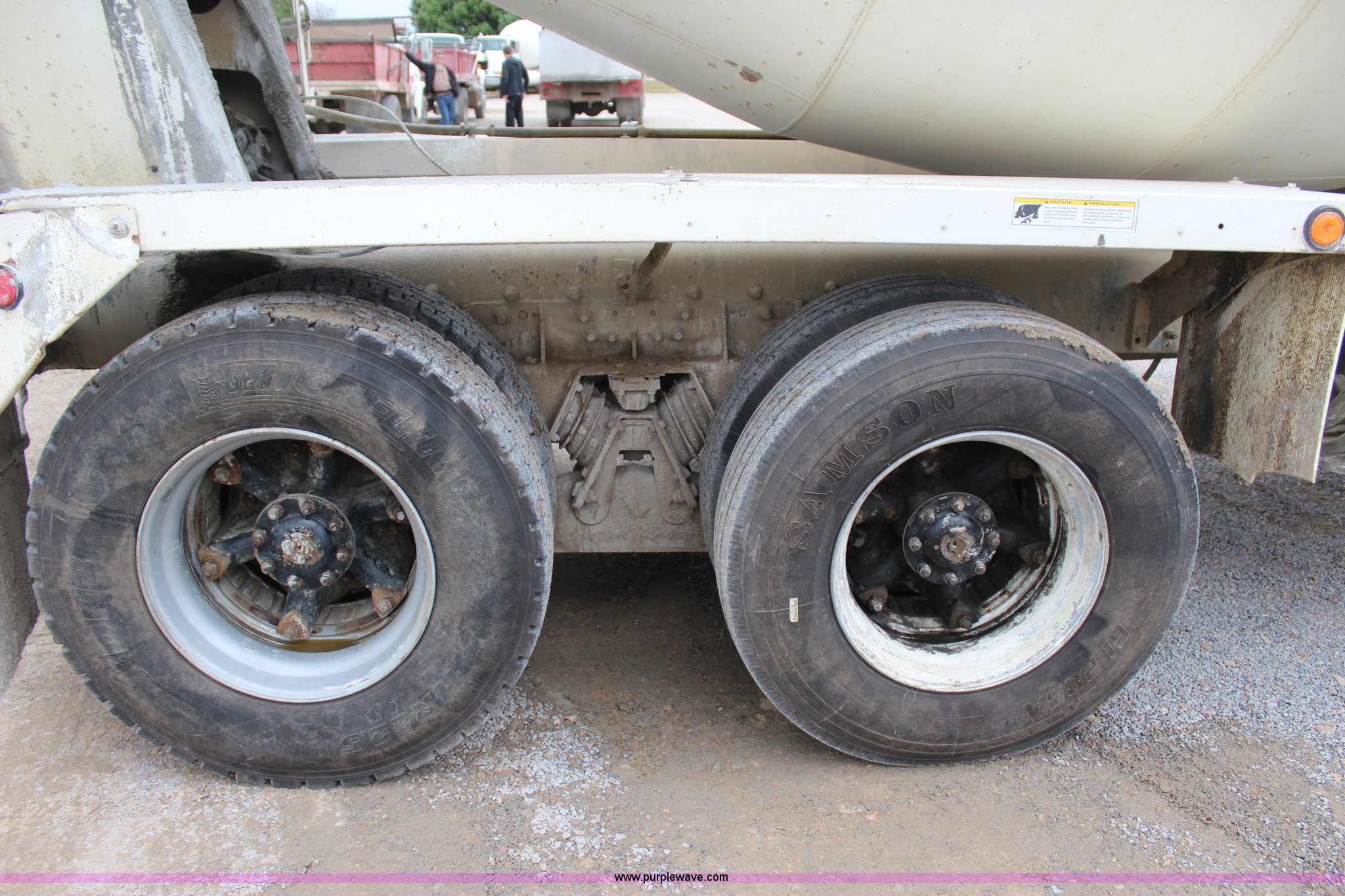 Purple Wave is selling a used Ready Mix or Pump Truck in Oklahoma. This item is a 1999 Sterling A9500 mixer truck with the following: 156,868 miles on odometer, 13,537 hours on meter, Cummins M11 10.8L L6 diesel engine, Eaton Fuller eight speed manual transmission, Tandem axle, AC and heat, Tilt, Heated mirrors, Air suspension seat, Backup alarm, 10.5 cubic yard mixer, Steel chute, Single rear exhaust stack, Single fuel tank, Spring over walking beam suspension, Air brakes, 425/65R22.5 front tires, 11R22.5 rear tires, GVWR 66,000 lbs, FAWR 20,000 lbs, IAWR 23,000 lbs, RAWR 23,000 lbs, Unit# 1
