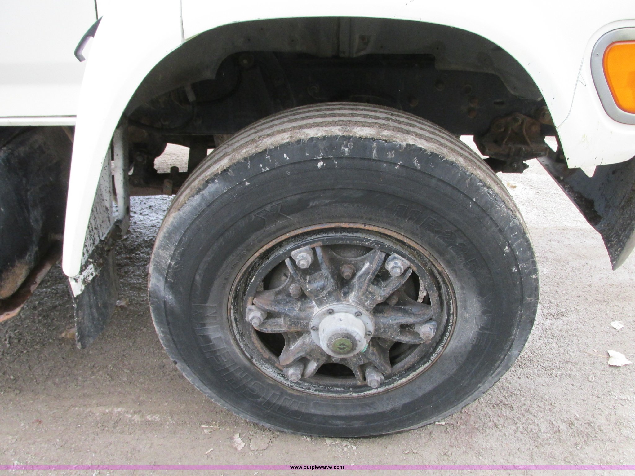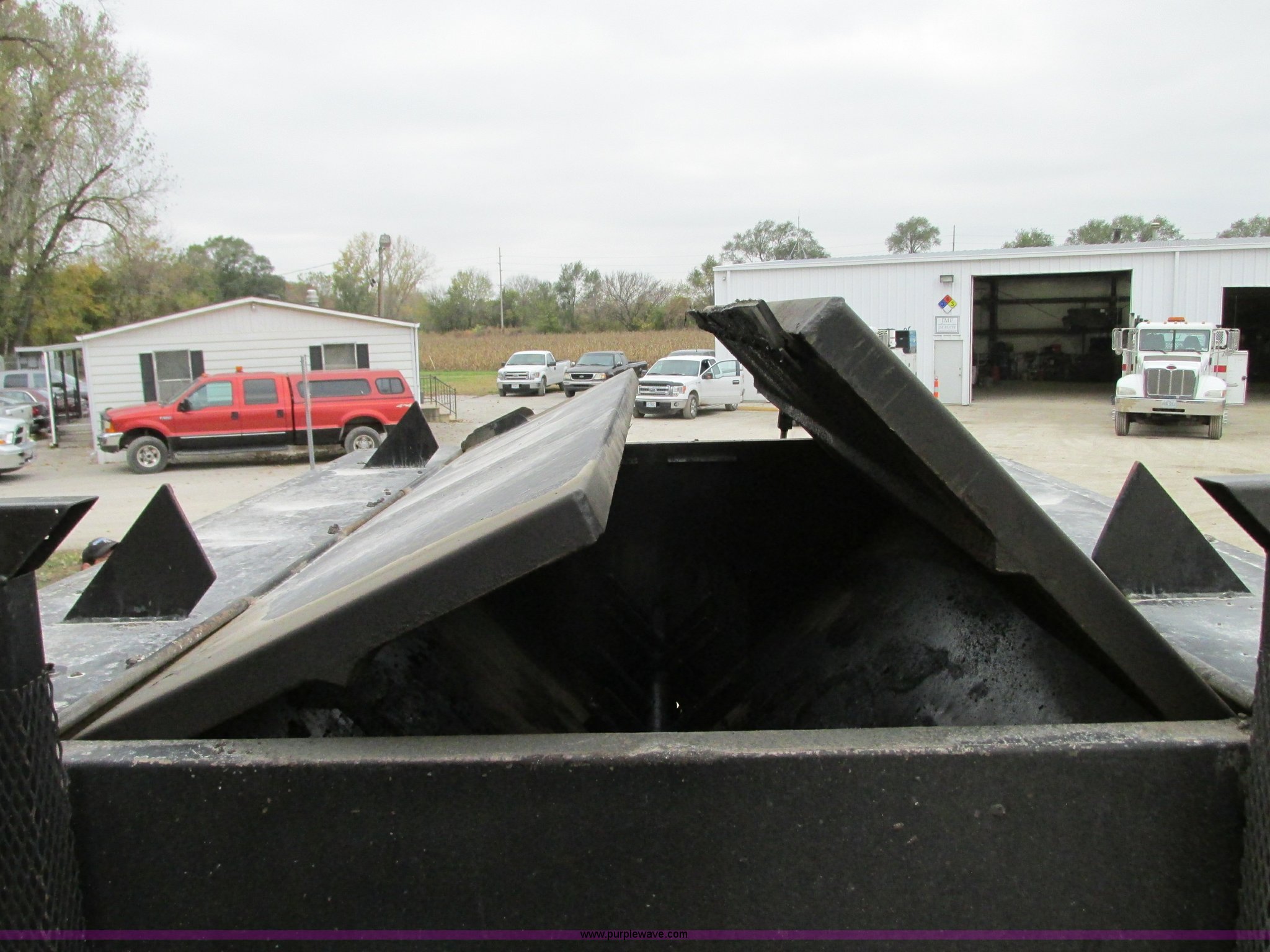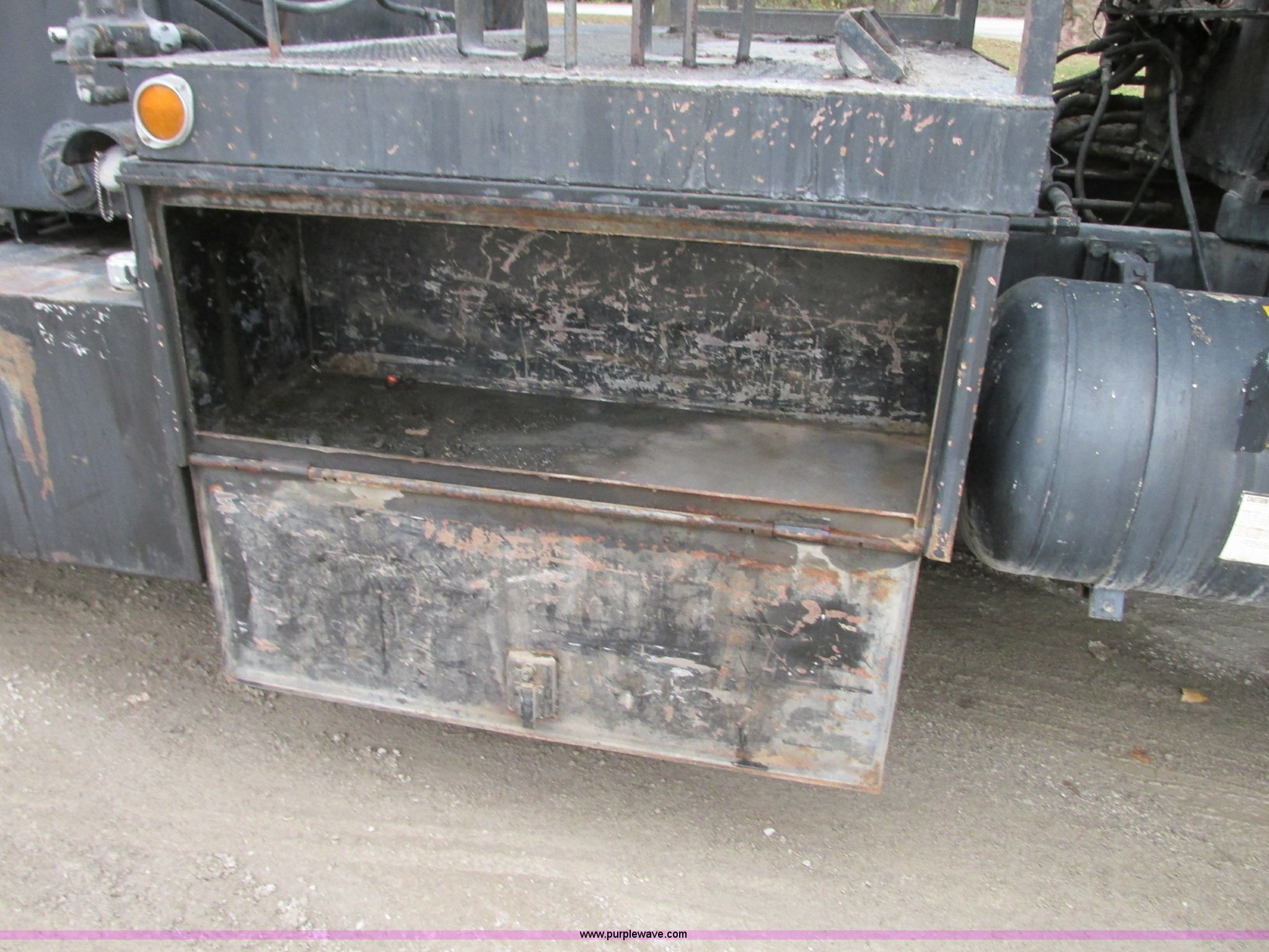 Purple Wave is selling a used Oil Distributor Truck in Kansas. This item is a 1995 Ford F800 asphalt patch truck with the following: 123,385 miles on odometer, Cummins ISB 5.9L L6 turbo diesel engine, Five speed manual transmission, AC and heat, PTO, Diesel burner with gun, Diesel wash down, P.B. loader, Five ton capacity hopper, Auger feed rear heated dispenser, Plate compactor storage with auto loading, Rear auxiliary hydraulics, Approximately 25'L line on spool, 68" x 29" x 32"d trash bin, Hydraulic passenger side dump, Arrow board, In-cab controls, 100 gallon heated tack tank, Tack wand, Retractable hose, 60 gallon propane tank, 48" storage box, Dual fuel tanks, 35 and 50 gallon capacities, Spring suspension, Air brakes, 214" wheelbase, 12R22.5 tires, GVWR 35,000 lbs, FAWR 12,000 lbs, RAWR 23,000 lbs, Manuals and service records available