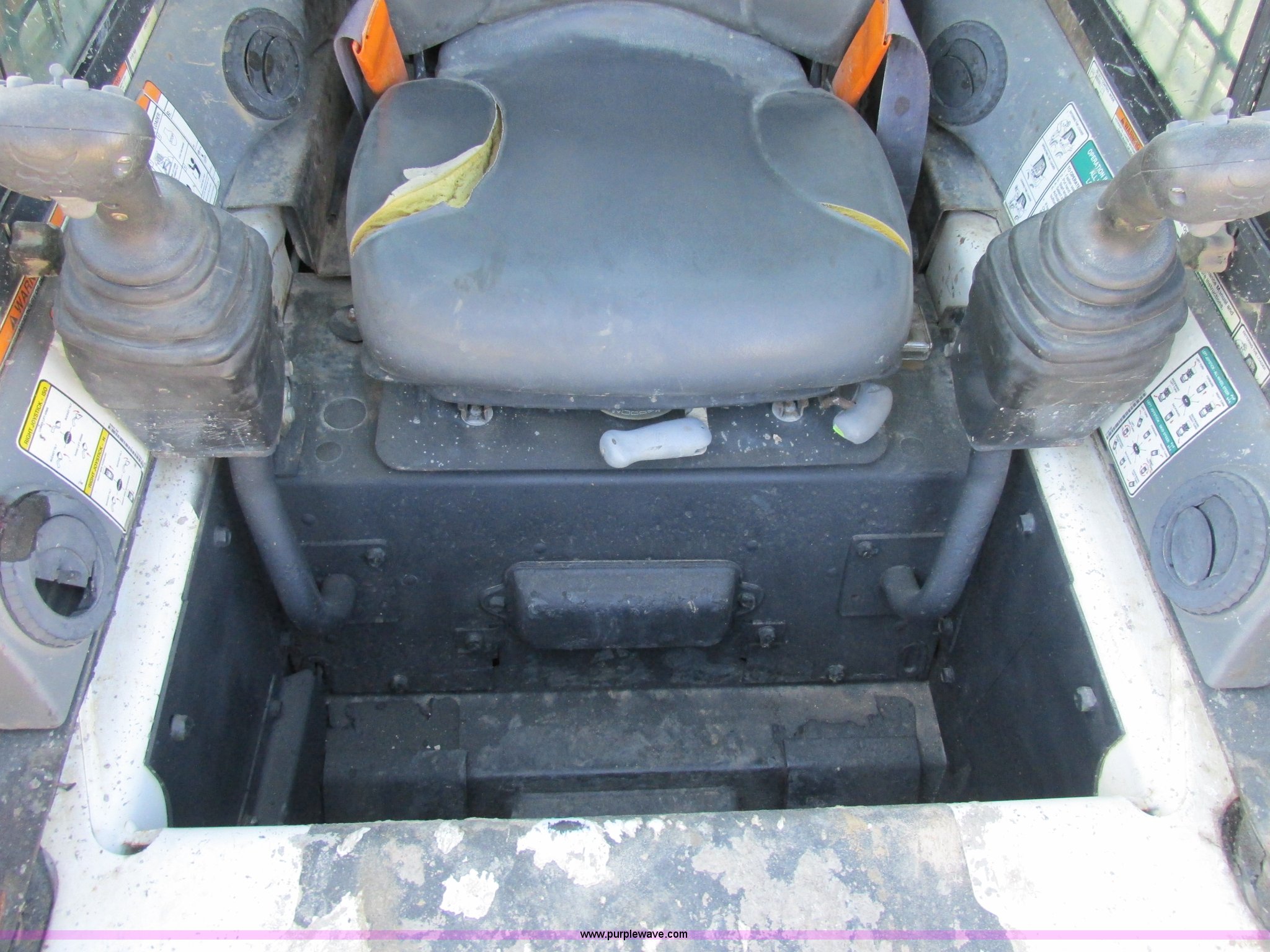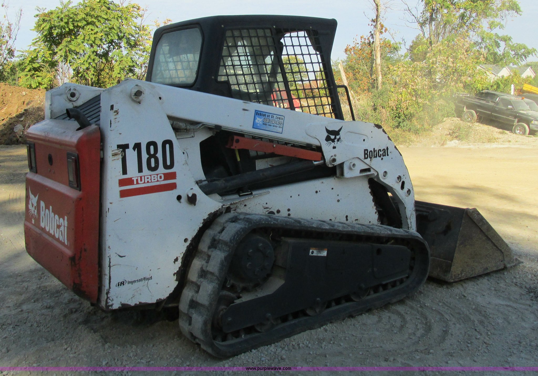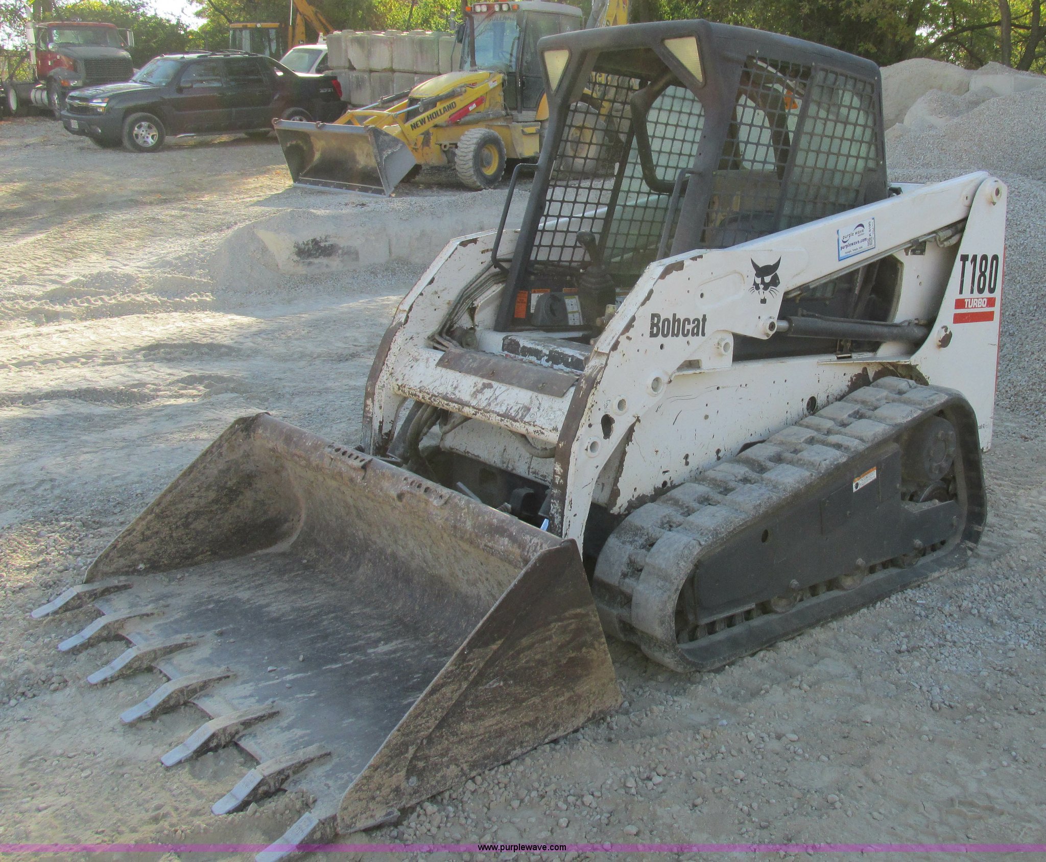 Purple Wave is selling a used Tracked Skid Steer Loader in Missouri. This item is a 2005 Bobcat T180 skid steer with the following: 2,823 hours on meter, Hours may vary, unit is still in use, Four cylinder turbo diesel engine, Hydrostatic transmission, Enclosed cab, AC and heat, Selectable joystick controls, 66"W bucket, Weld-on cutting edge, Bolt-on teeth, Hydraulic quick coupler, Auxiliary hydraulics, 12"W tracks, Door is not included, Serial 527514163