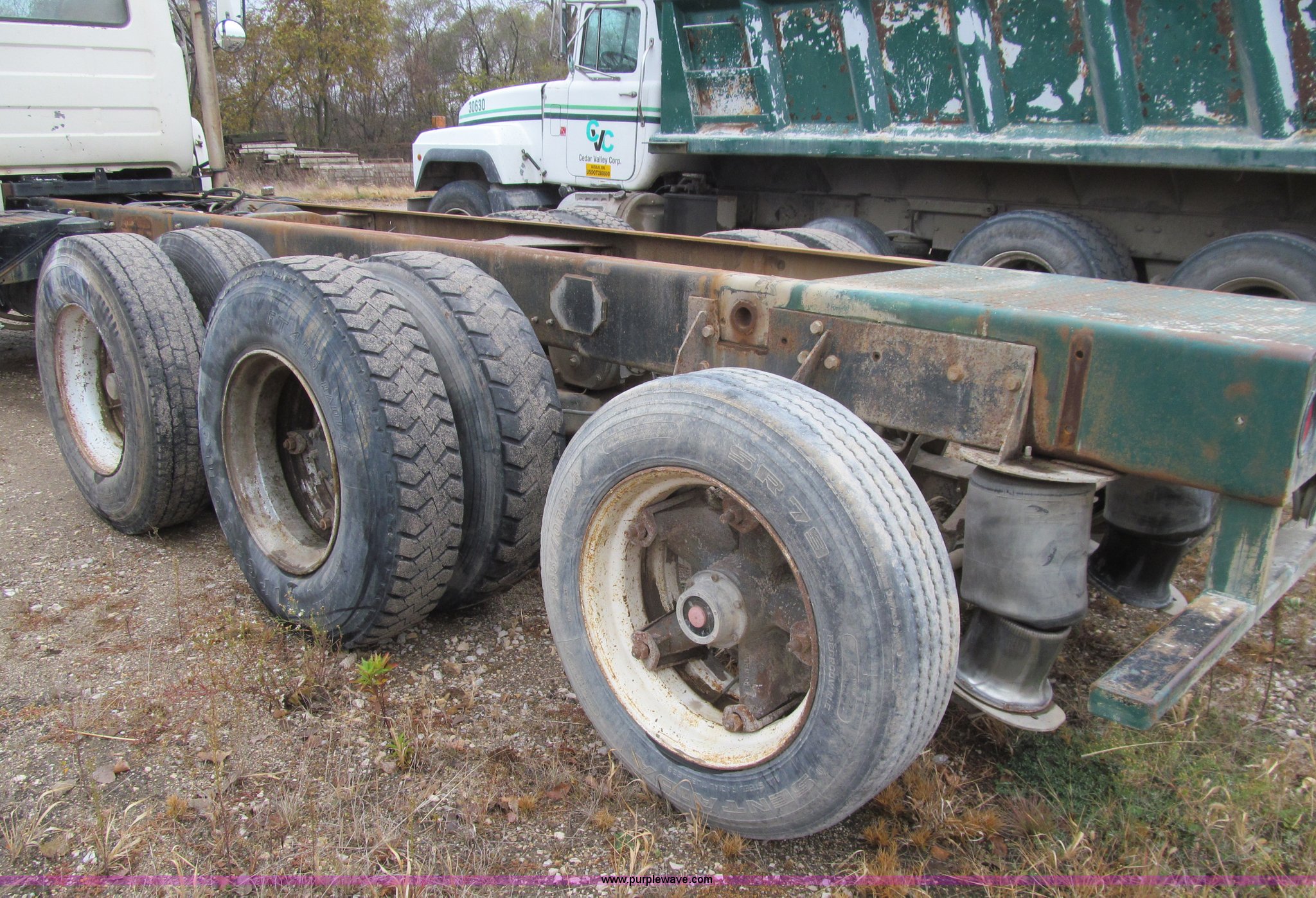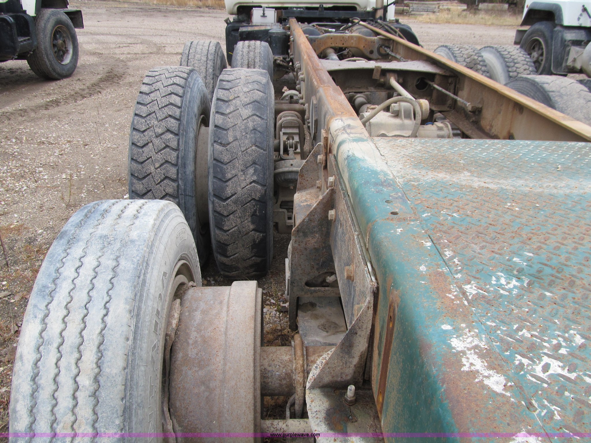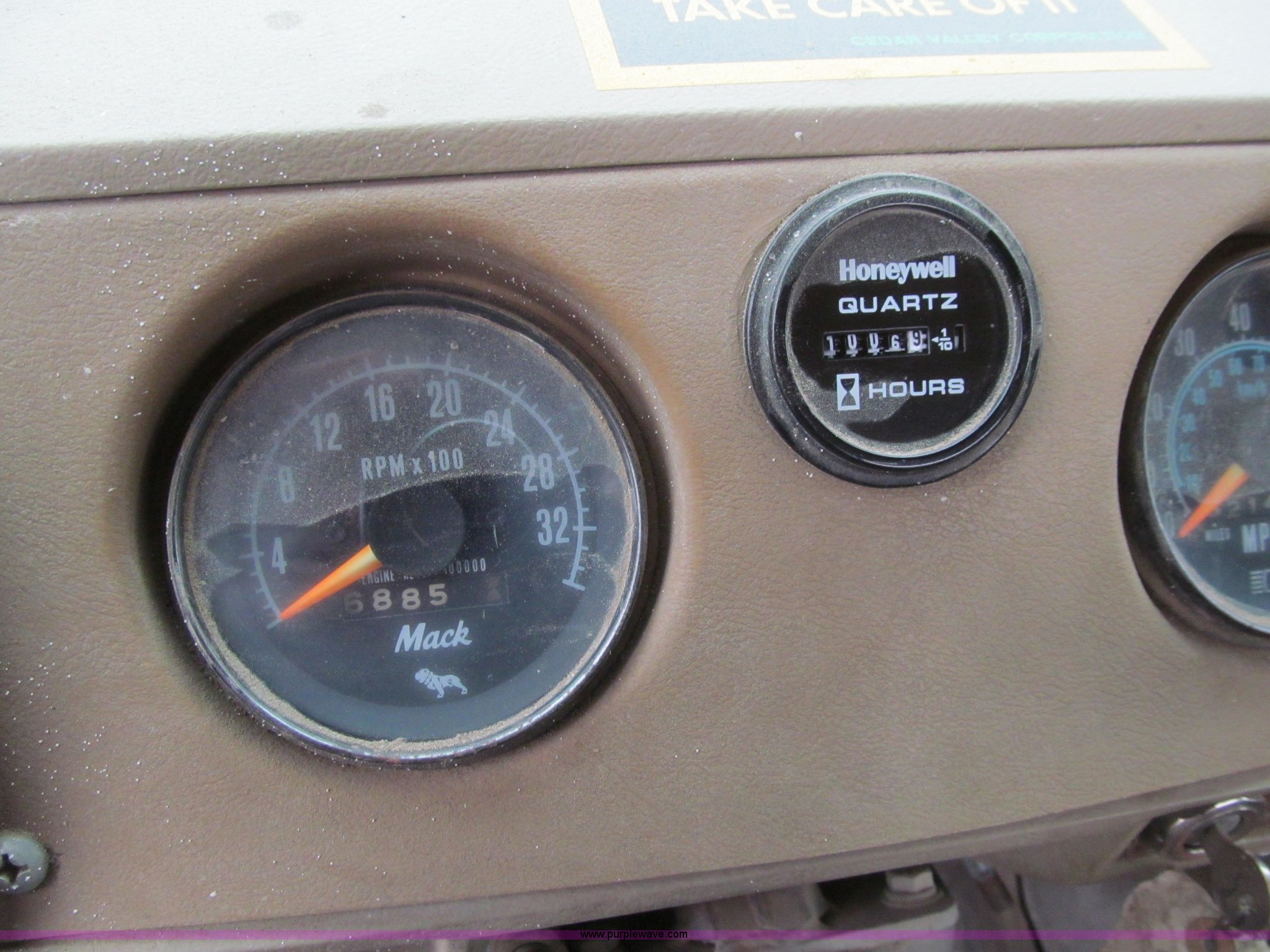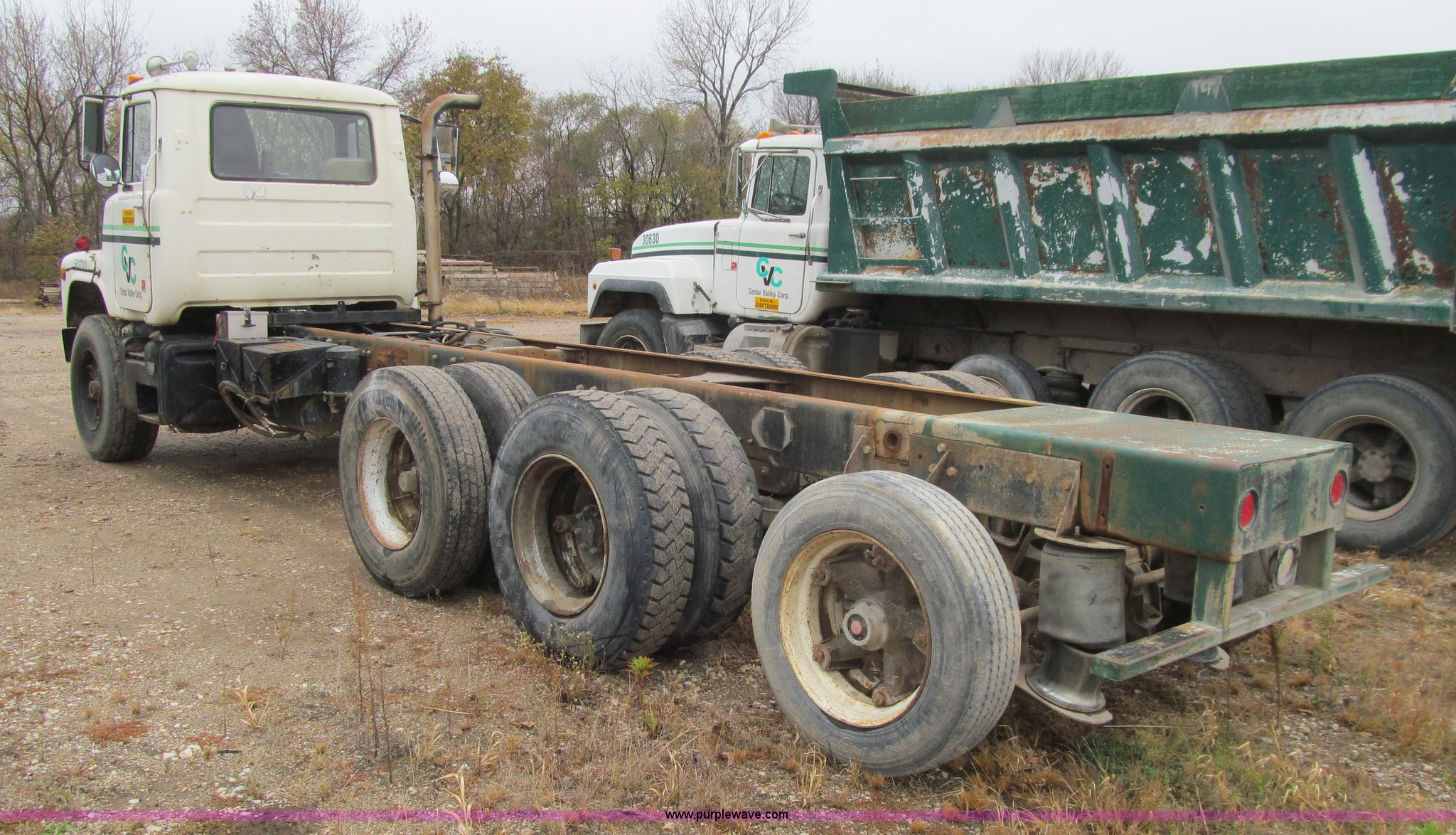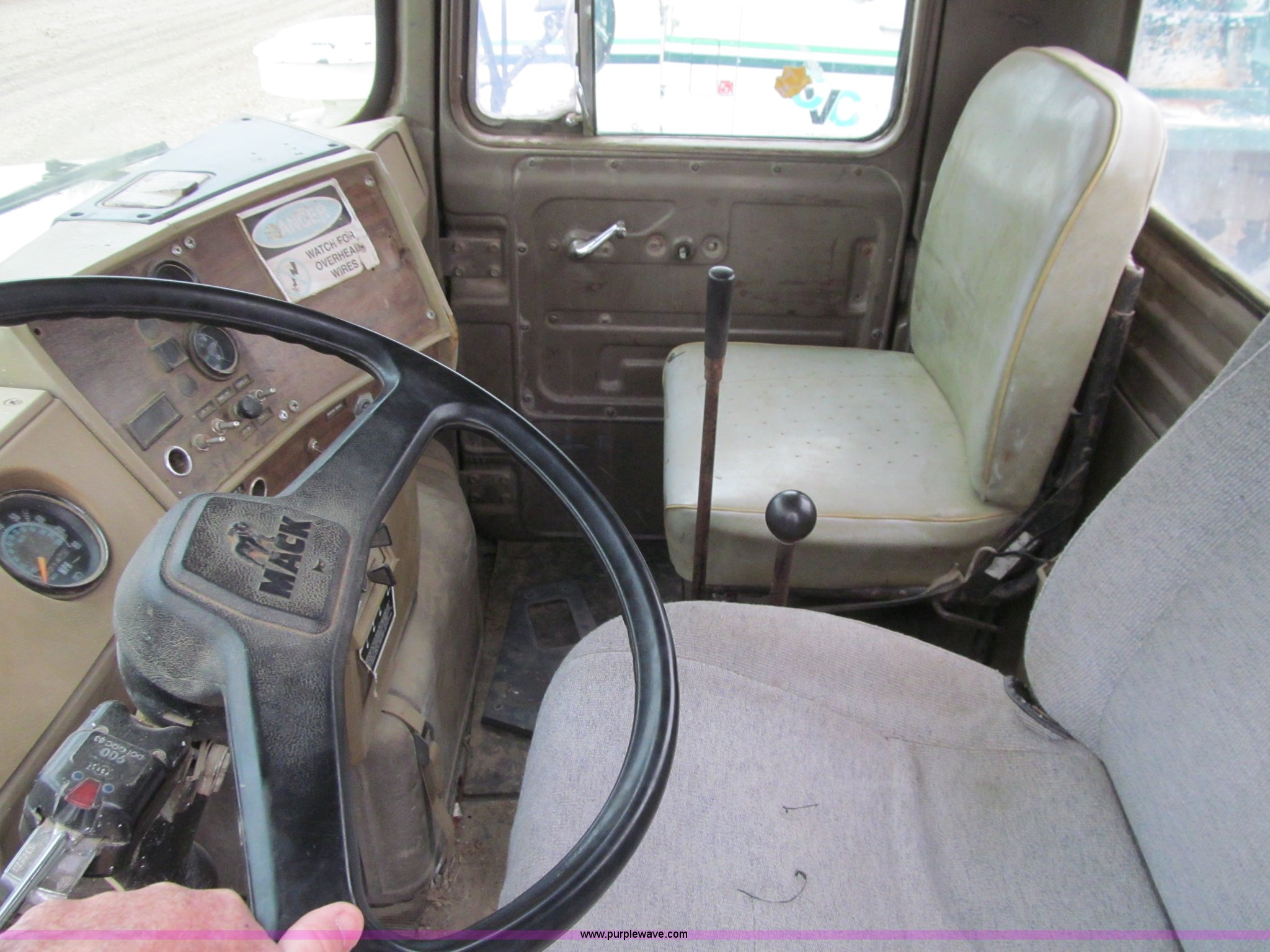 Purple Wave is selling a used Truck Chassis in Iowa. This item is a 1984 Mack DM685S cab and chassis with the following: 432,145 miles on odometer, 6,885 hours on meter, Mack six cylinder diesel engine, 237 HP, Maxitorque five speed extended manual transmission, Triple axle, Heat, Tilt, Air suspension seat, PTO, Single rear exhaust stack, Dual fuel tanks, Front tow hooks, 247" from rear of cab to rear of frame, Spring suspension, Air brakes, 200" wheelbase, 385/65R22.5 front tires, 255/70R22.5 air lift axle tires, 11R22.5 rear tires