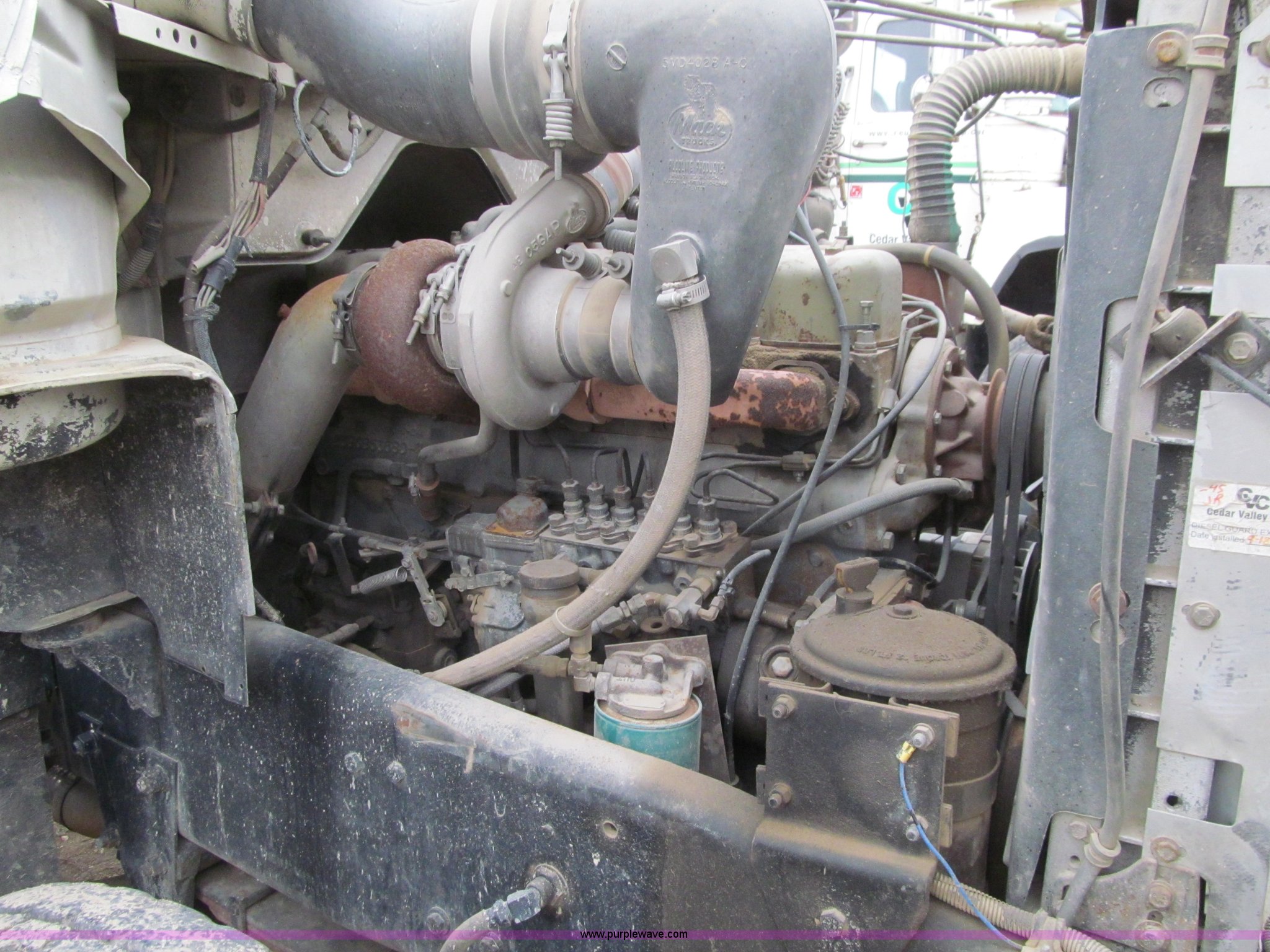 1984 Mack DM685S cab and chassis. 432,145 miles on odometer, 6,885 hours on meter, Mack six cylinder diesel engine 237 HP, Maxitorque five speed extended manual transmission, Triple axle, Heat, Tilt, Air suspension seat, PTO, Single rear exhaust stack, Dual fuel tanks, Front tow hooks, 247" from rear of cab to rear of frame, Spring suspension, Air brakes, 200" wheelbase, 385/65R22.5 front tires, 255/70R22.5 air lift axle tires, 11R22.5 rear tires. Title distribution may be delayed up to 14 days from verification of funds. 1M2B120C4EA054202. 2637 Wagner Road. Waterloo, IA 50704