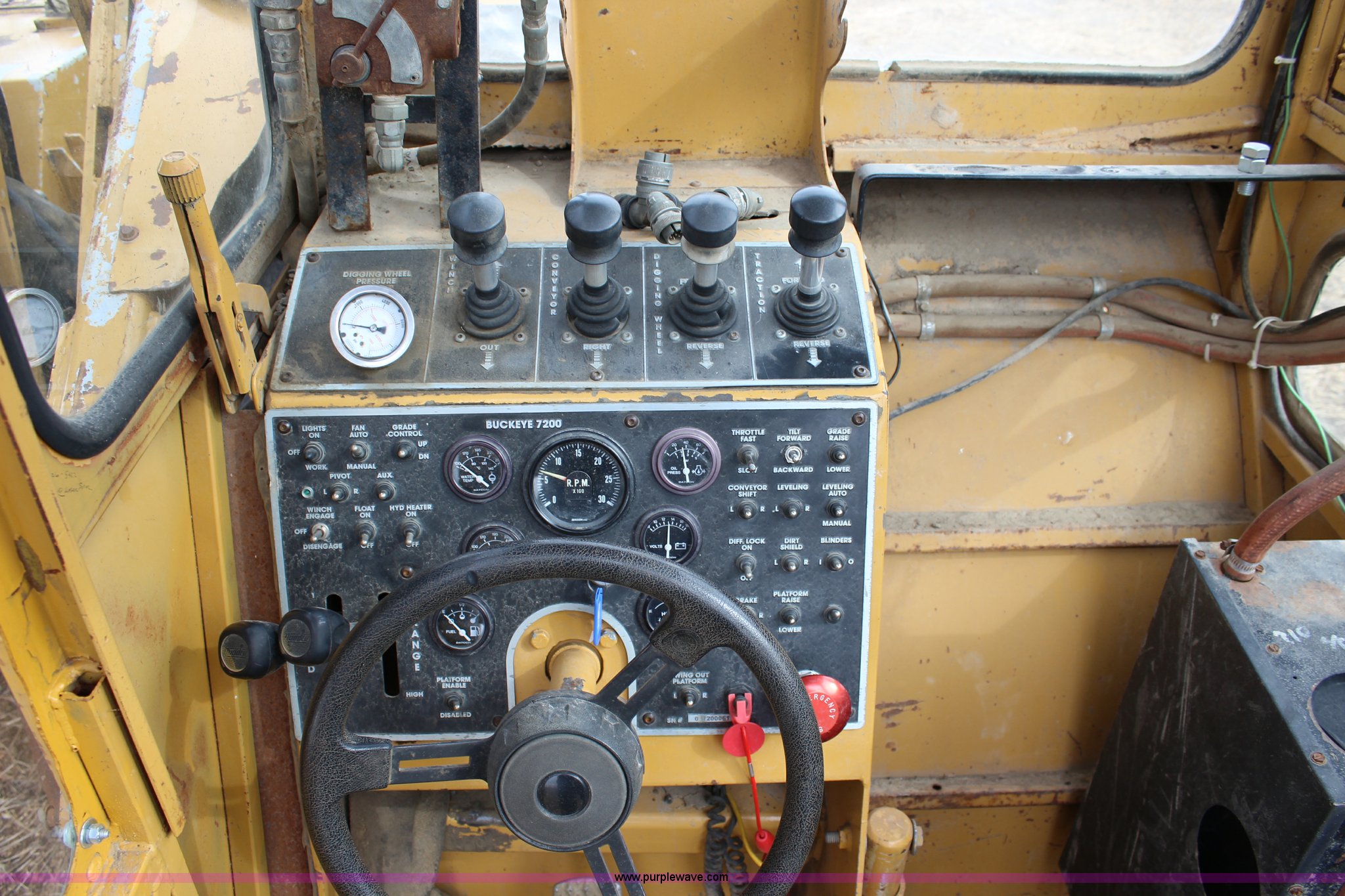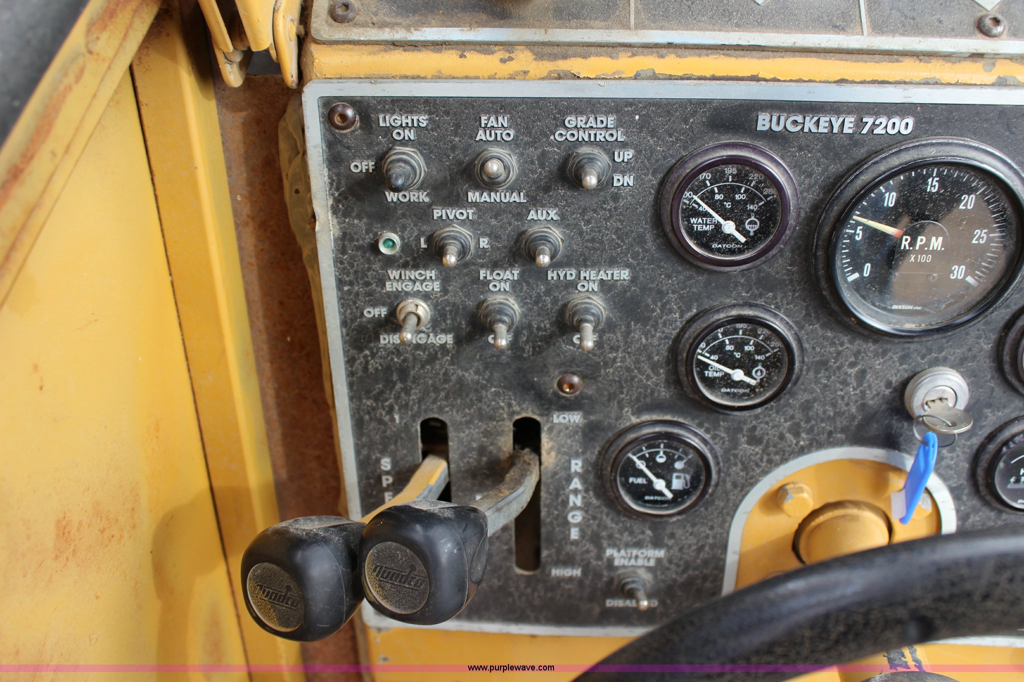 2001 Buckeye 7200 Magnum drainage tile wheel trencher. 2,929 hours on meter, Cummins M11 six cylinder turbo diesel engine 380 HP, Hydrostatic transmission, Four wheel drive, Heat, Bucket wheel trencher 24" cutting width, 11' diameter, 7' maximum digging depth, 36" conveyor width, 15" tileing boot, Auto tilt, Pivoting wheel, Winch, Hydraulic and electrical laser capable, GPS capable, Enclosed swing away platform, Heavy duty truck wheels and carriers, Firestone 30.5-32 tires, Starter replaced at 2,912 hours, Drive sprockets replaced 29 hours ago, Hydraulic pumps and motors rebuilt at 2,200 hours, Serial 01720061. View equipment video. Bramhall Dozer Service. Vermillion, KS 66544