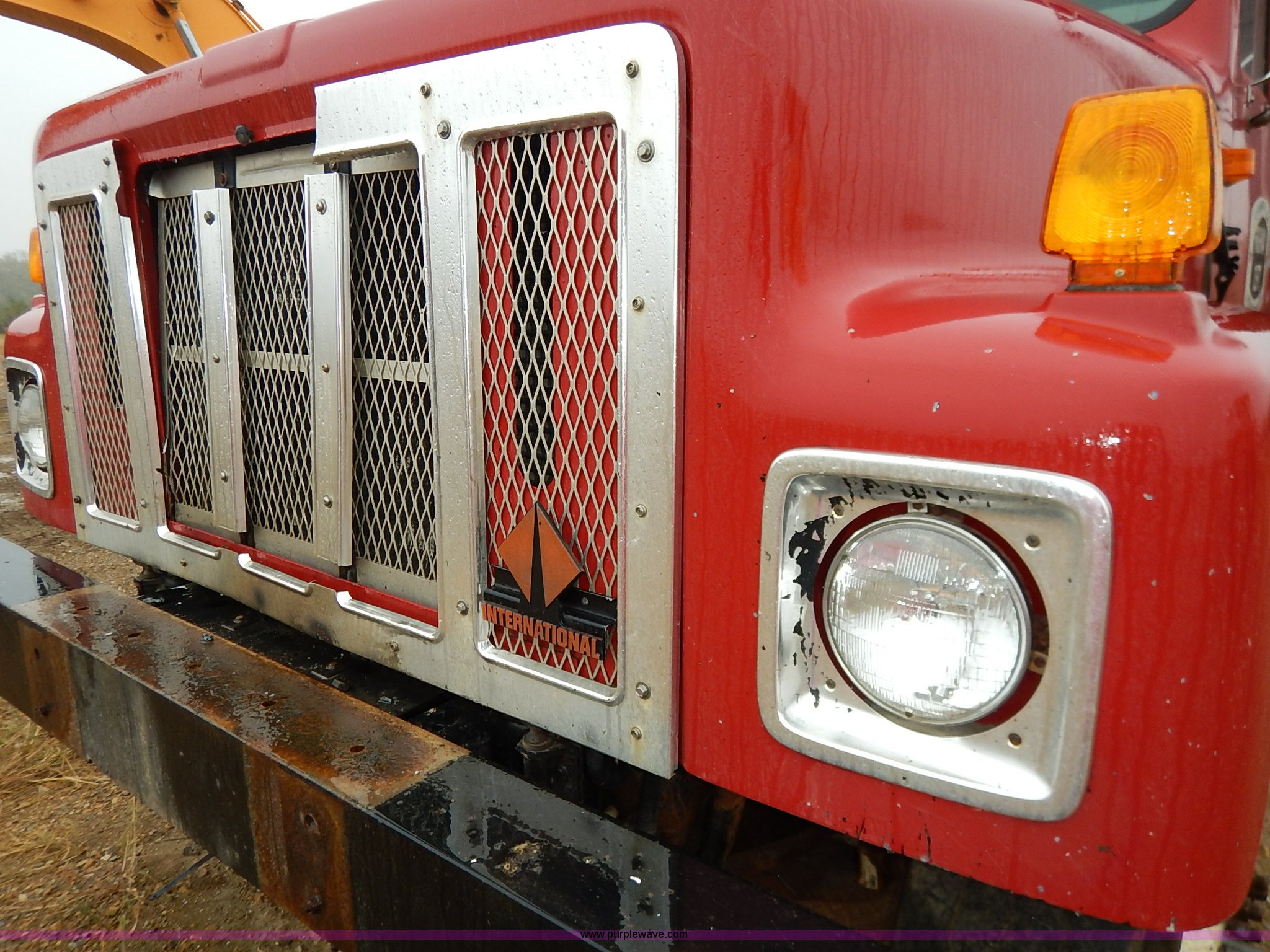 Purple Wave is selling a used Construction Dump Truck in Kansas. This item is a 2001 International F2554 dump truck with the following: 317,031 miles on odometer, International DT530 8.7L L6 turbo diesel engine, Eaton Fuller eight speed manual transmission, Lo+Lo/Lo, Inter-axle differential lock, Heat, Cruise, AM/FM, Heated mirrors, Air suspension seat, Vinyl interior, Beacon light, Block heater, Chelsea PTO, 15'L x 8'W steel dump bed, 54" side height, Toolboxes, Single fuel tank, Spring suspension, Air brakes, 315/80R22.5 front tires, 208" wheelbase, 11R22.5 rear tires, GVWR 56,000 lbs, FAWR 16,000 lbs, RAWR 40,000 lbs, Engine issues, Uses antifreeze, Dents and scratches, Rust, Paint peeling and chipped, Battery weak, Maintenance records available, Unit# 04-25