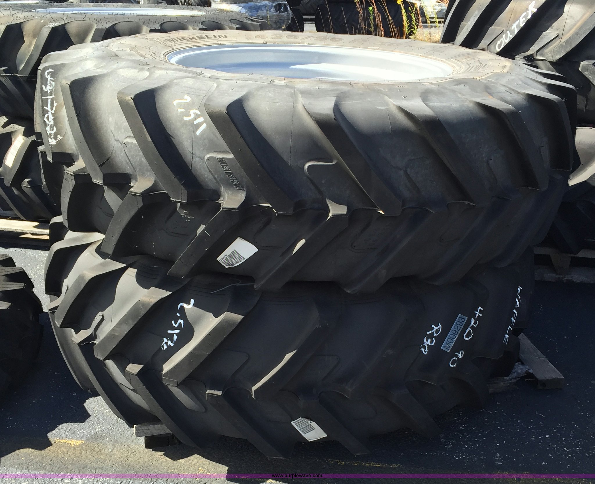 (2) Michelin AGRIBIB R1W 420/90R30 row crop rear wheel assemblies | SOLD! November 20 AGCO Surplus CUE Tire Inventory Reduction Auction