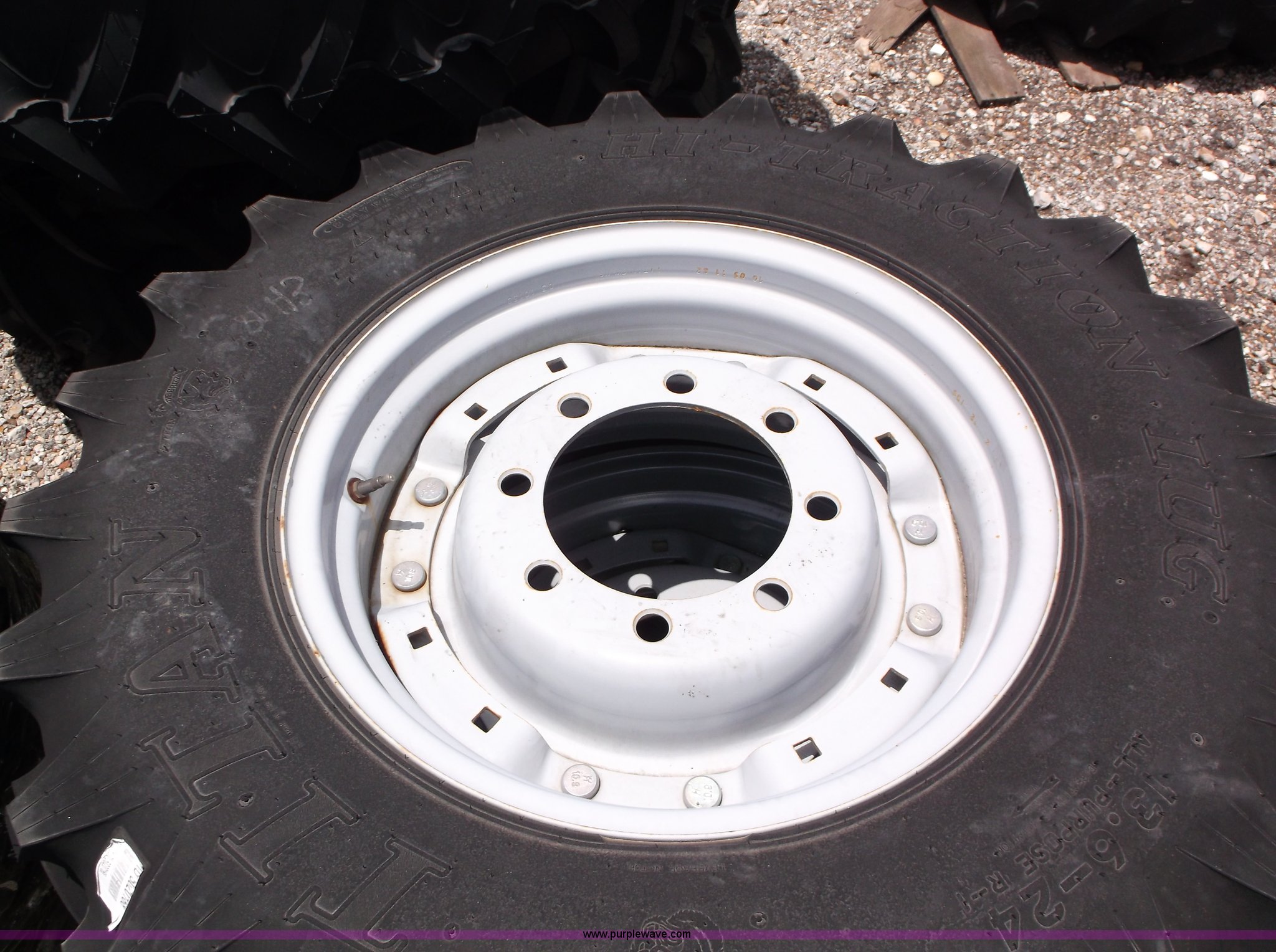 Purple Wave is selling a used Industrial Tires or Tracks in Maryland. This item is a (2) Titan Hi-Traction Lug TL 13.6-24 R1 utility front tires with the following: (1) left side, (1) right side, 6" tread spacing, Eight ply, Adjustable eight bolt wheels, 9" pilot hole diameter, Three to four year age range, Model usage MF2650/60/70/80, Catalog No. 5020168M