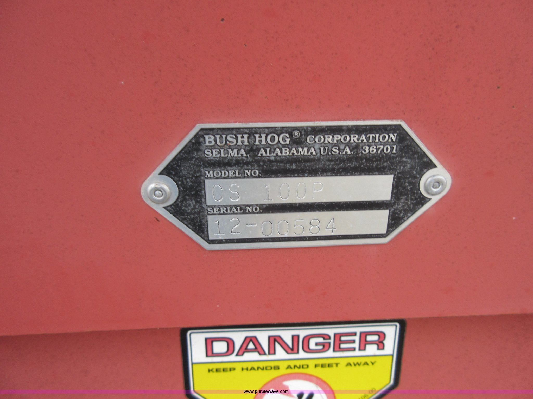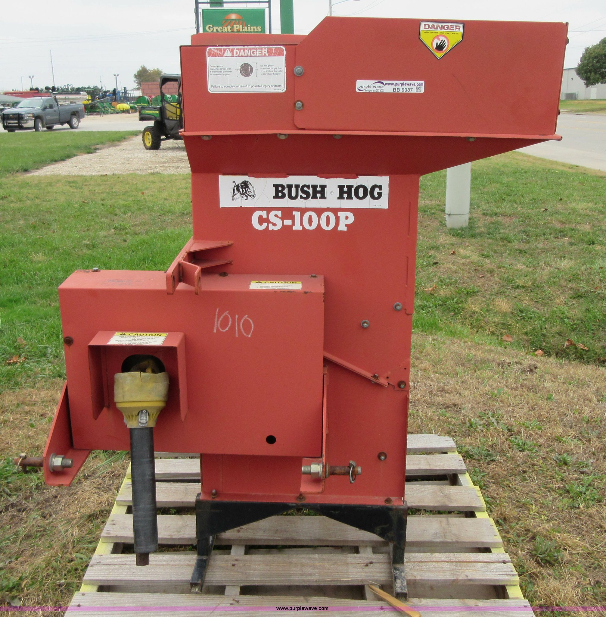 Purple Wave is selling a used Wood Chipper or Stump Grinder in Kansas. This item is a Bush Hog CS-100P chipper with the following: Three point, 540 PTO, 1 1/4" diameter capacity, Serial 12-00584