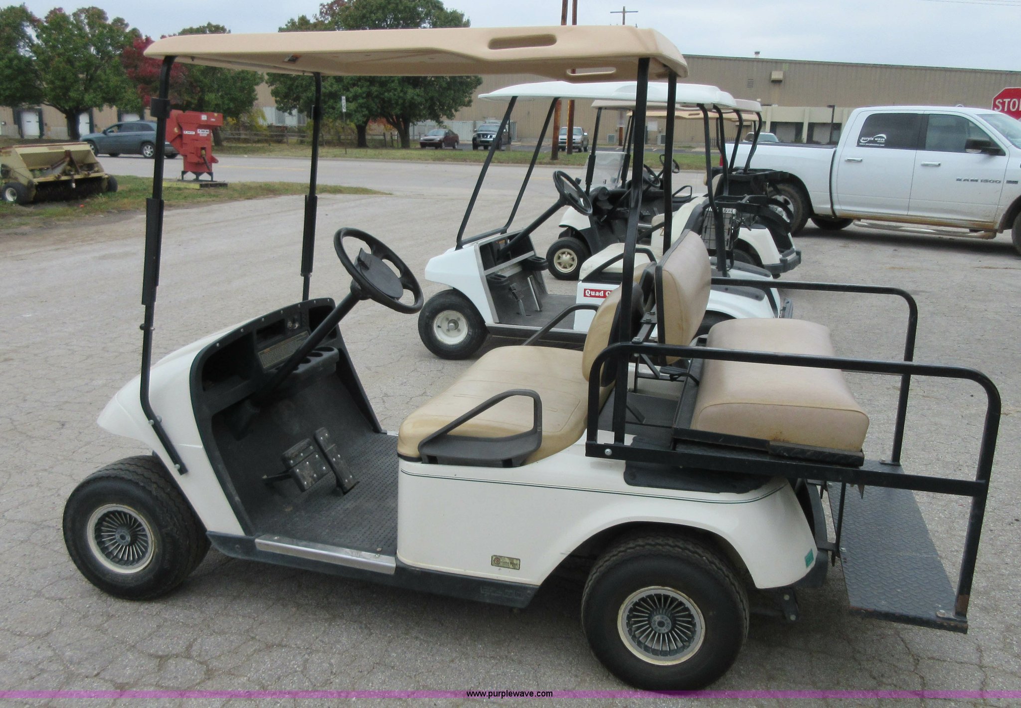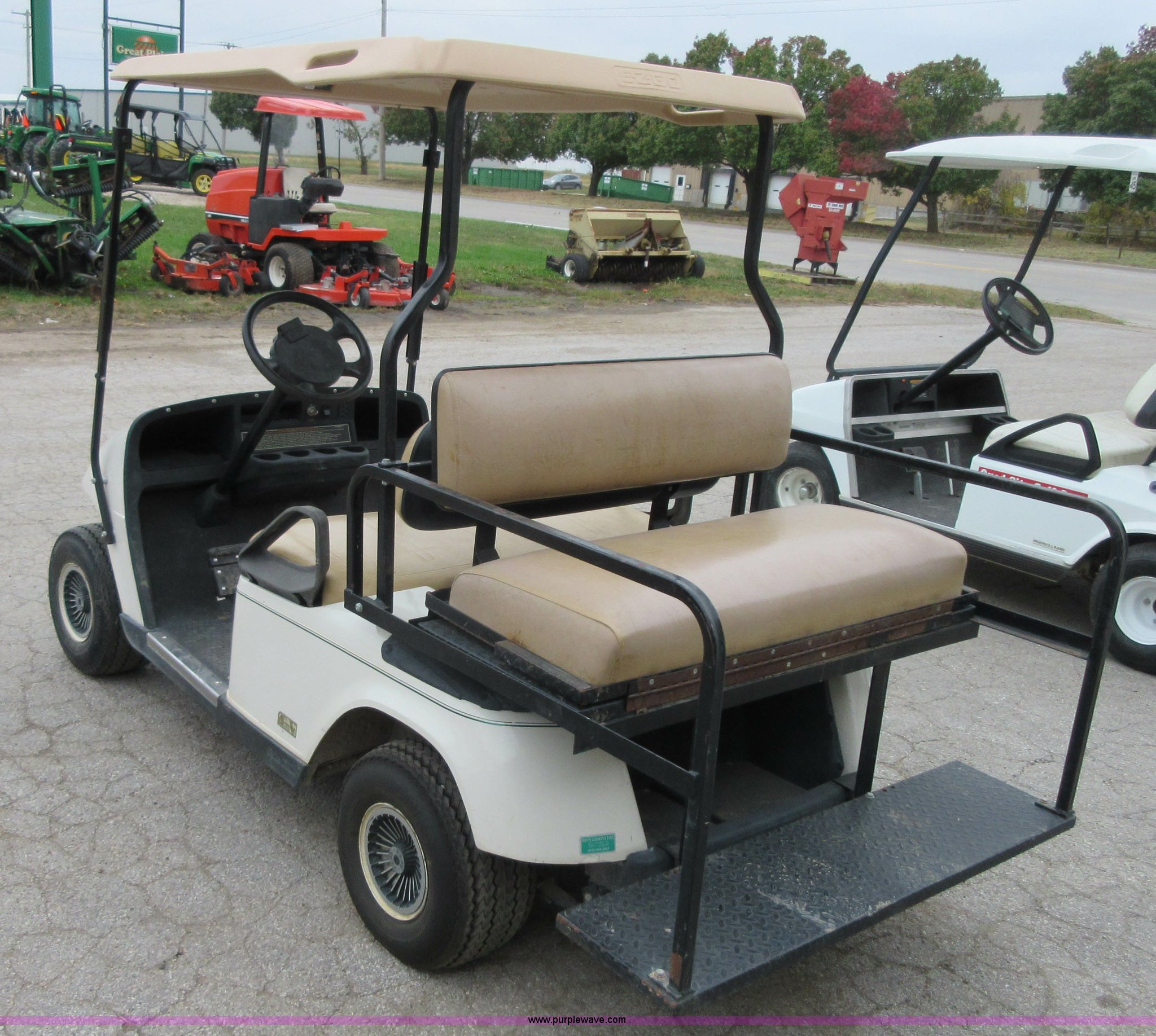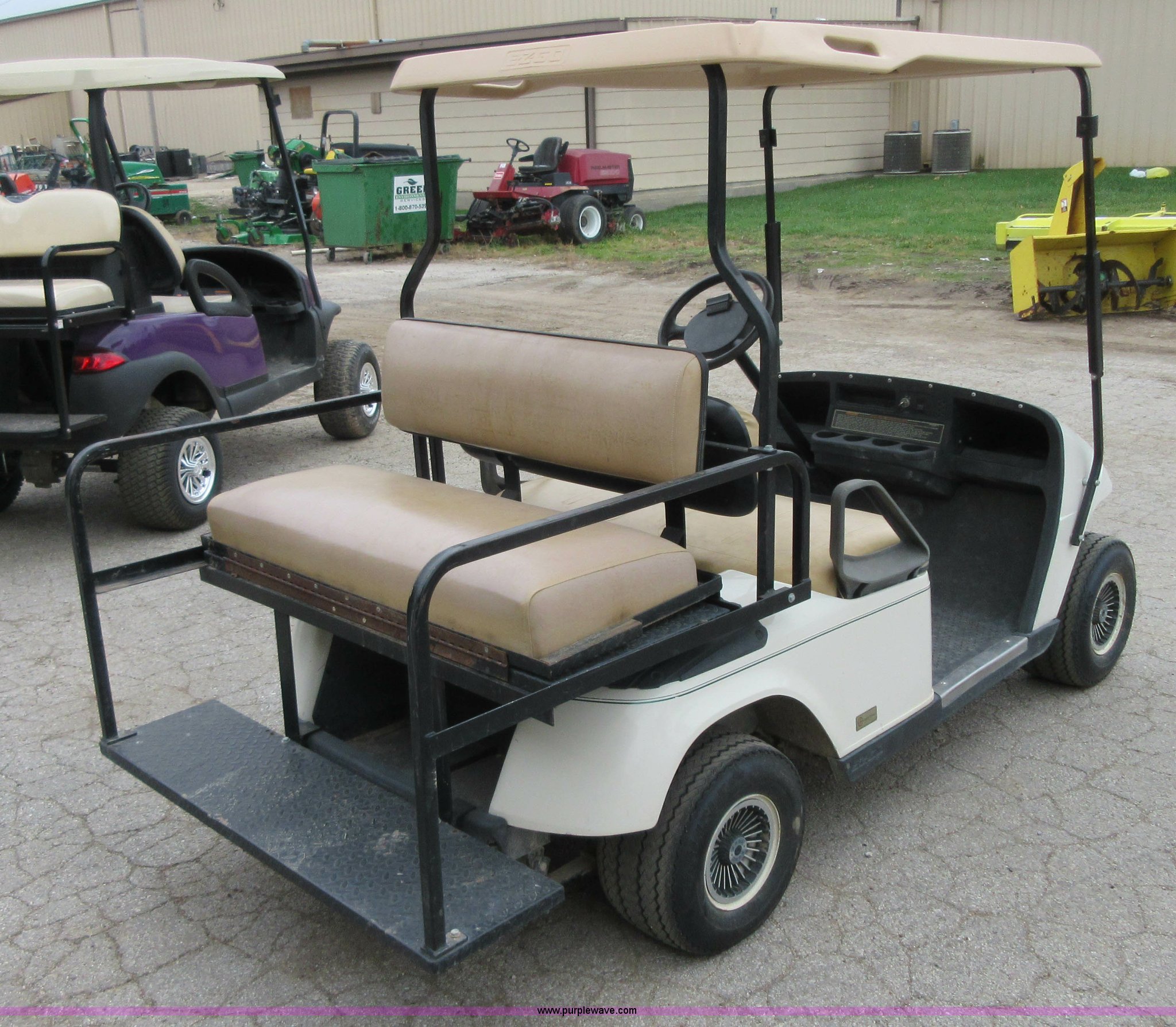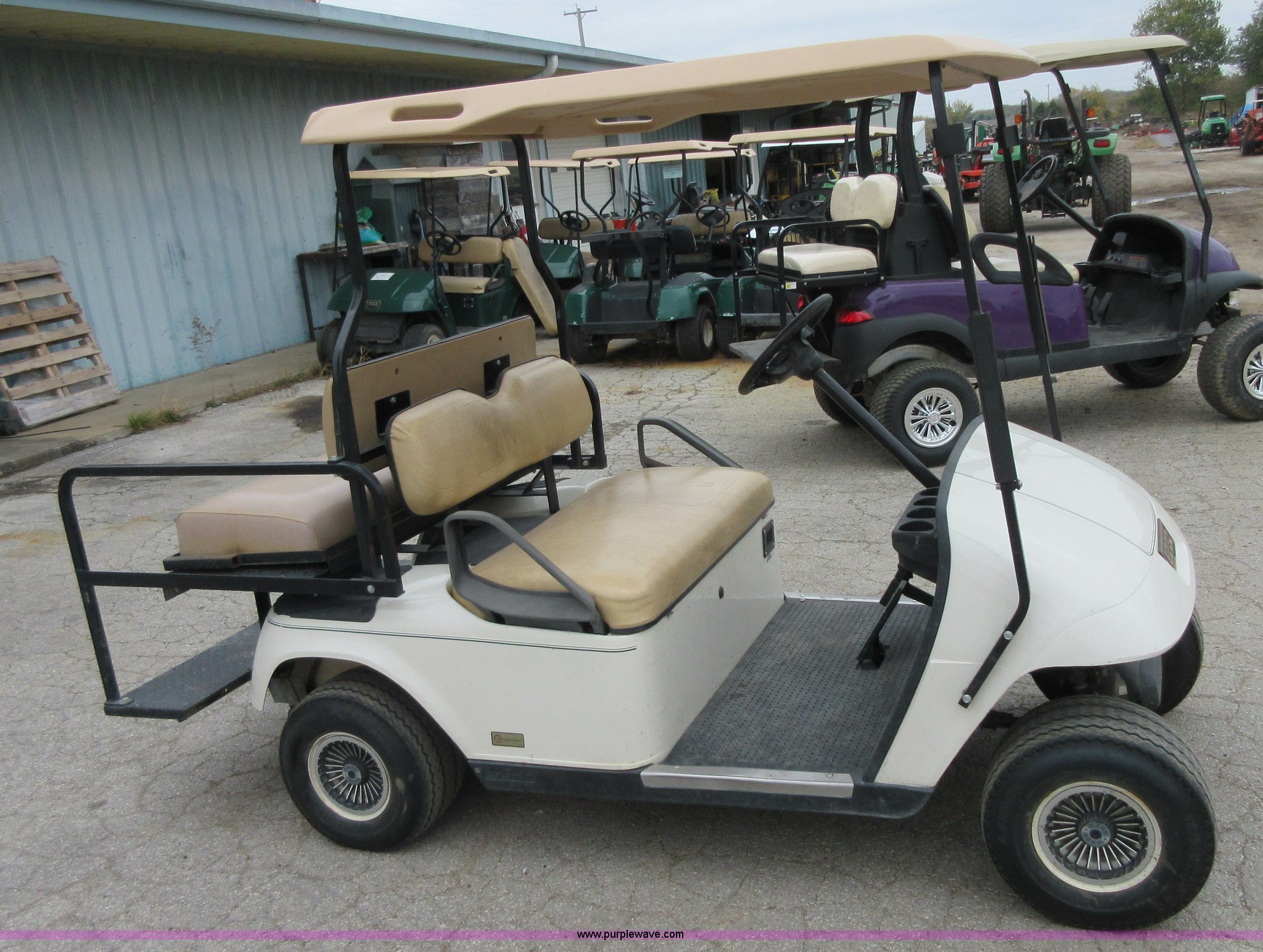Purple Wave is selling a used Golf Cart in Kansas. This item is a 2003 EZ GO golf cart with the following: 36V, Precision drive system, Folding rear seat, 18 x 8.50-8 NHS tires, Charger, Serial 2124369