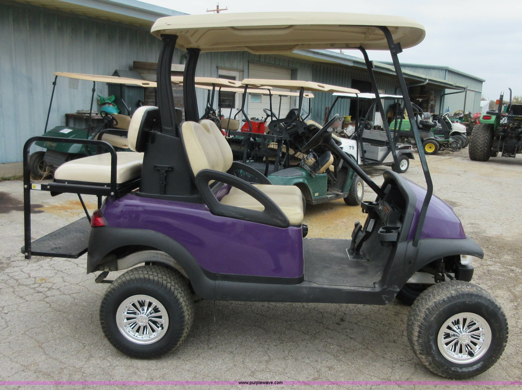Purple Wave is selling a used Golf Cart in Kansas. This item is a 2011 Club Car golf cart with the following: 48V, Lift kit, Head and taillights, Rear seat, 20 x 10 x 10 tires, Charger, Serial PH1131-210806