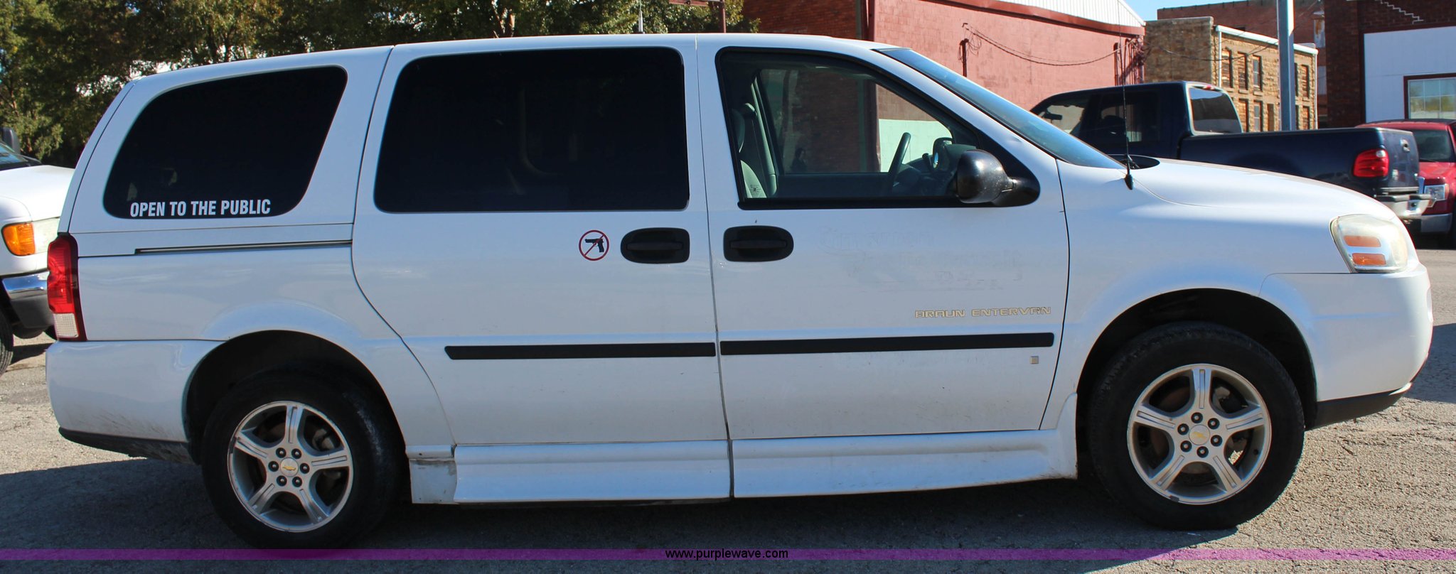 Purple Wave is selling a used 1/2 Ton Pickup or Van in Oklahoma. This item is a 2008 Chevrolet Uplander van with the following: 242,738 miles on odometer, 3.9L V6 OHV 12V FFV gas engine, Automatic transwmission, AC and heat, Tilt, Cruise, AM/FM/CD, Power windows, locks, and mirrors, Cloth interior, Manual locking rear door, Backup alarm, P225/60R17 tires, No middle seats or restraints, Unit# 146