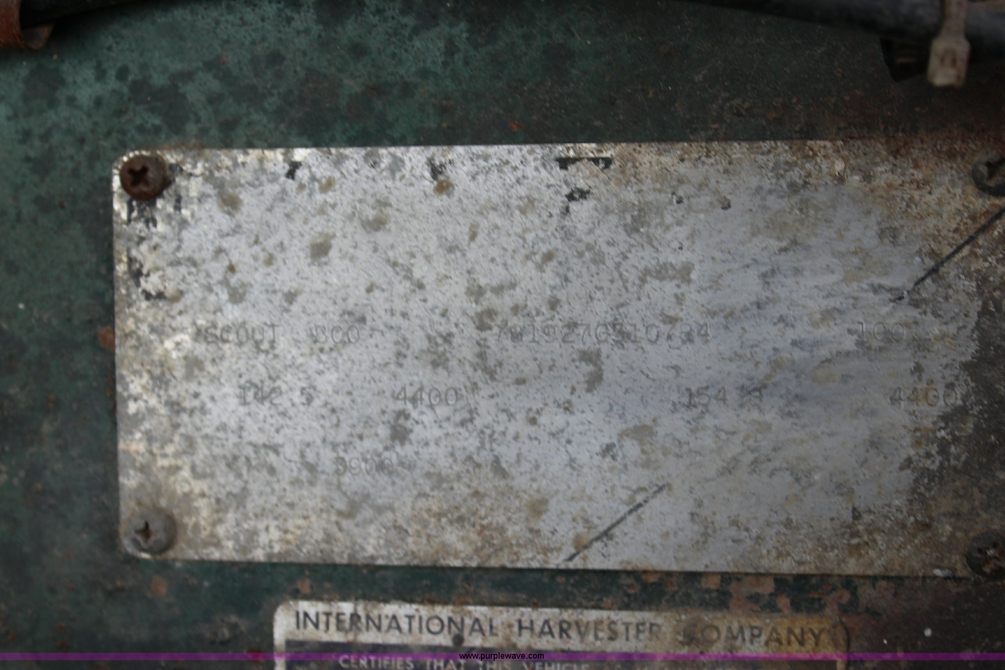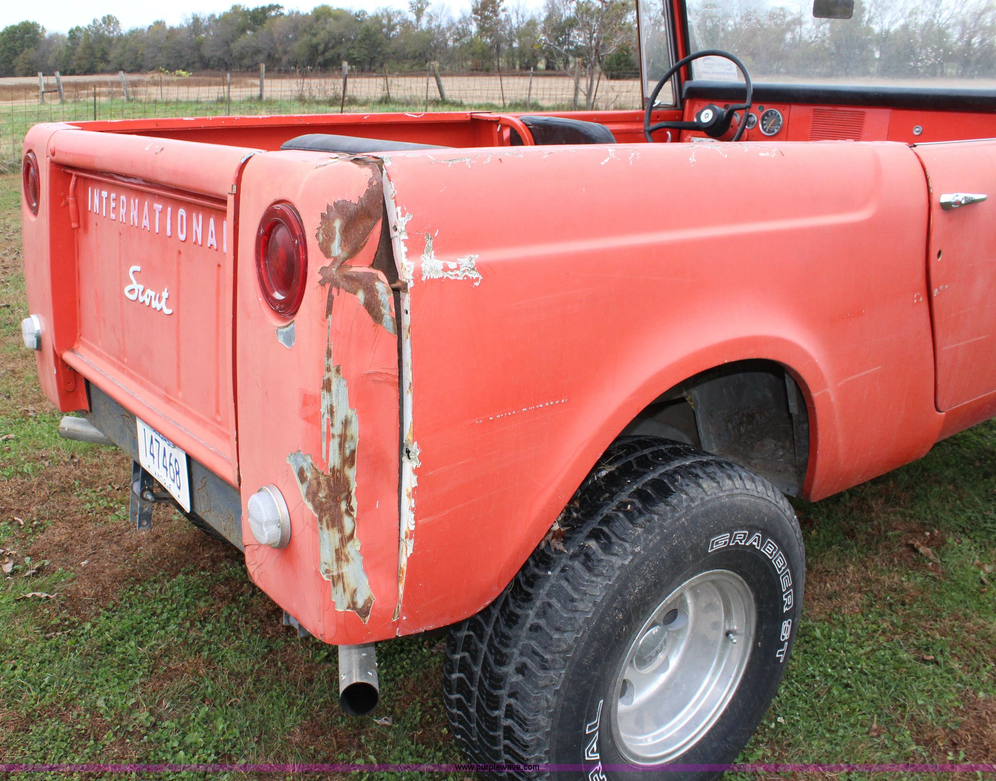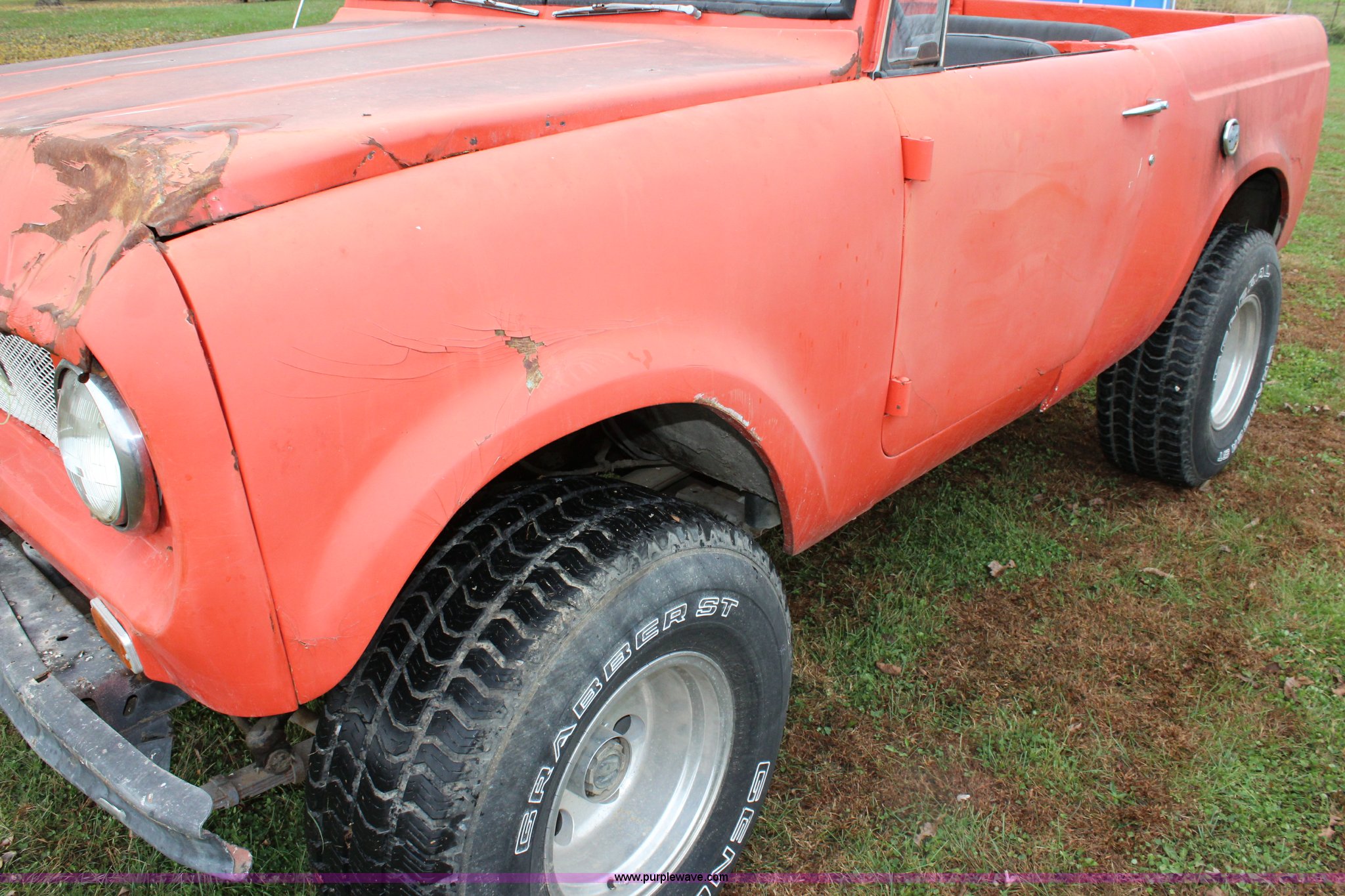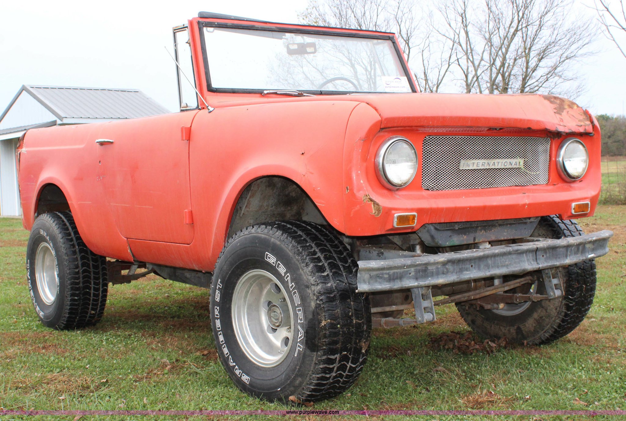 Purple Wave is selling a used Passenger Vehicle in Kansas. This item is a 1968 International Scout 800 SUV with the following: 89,488 miles on odometer, 392 C.I.D. gas engine, Four speed manual transmission, Heat, AM/FM, 3" lift, Topper included, 33x12.50-15 tires, Interior/exterior cosmetic damage