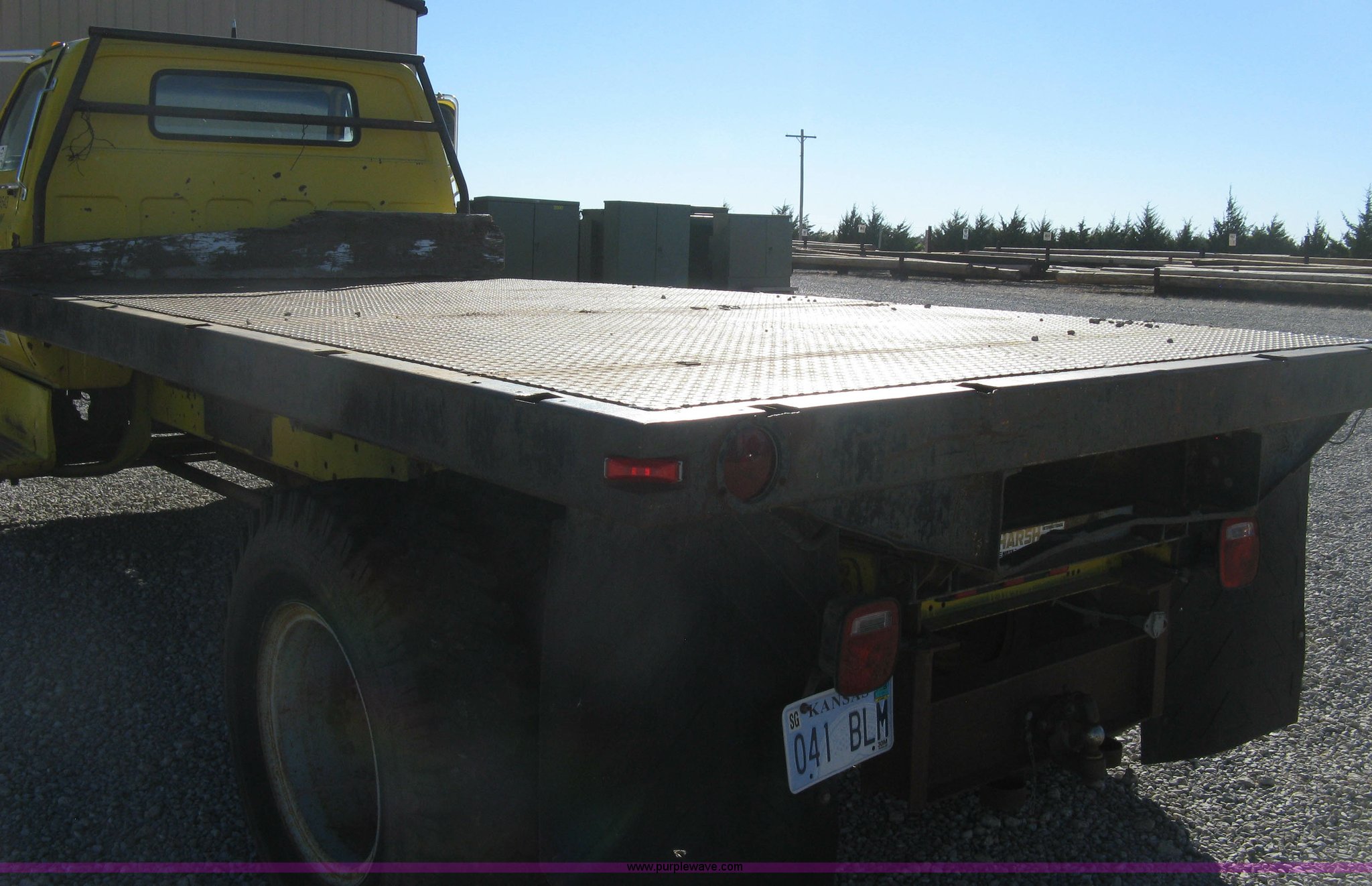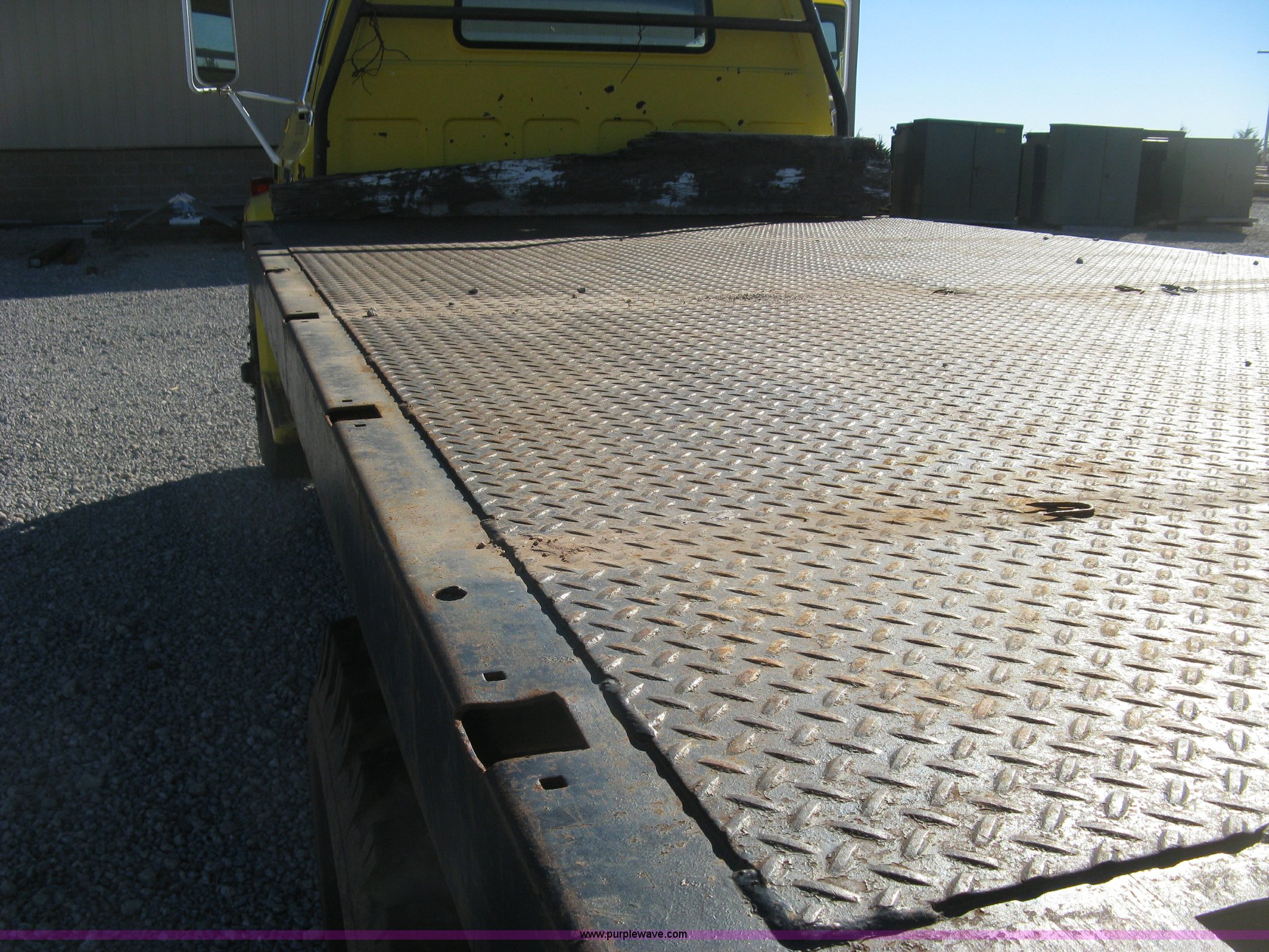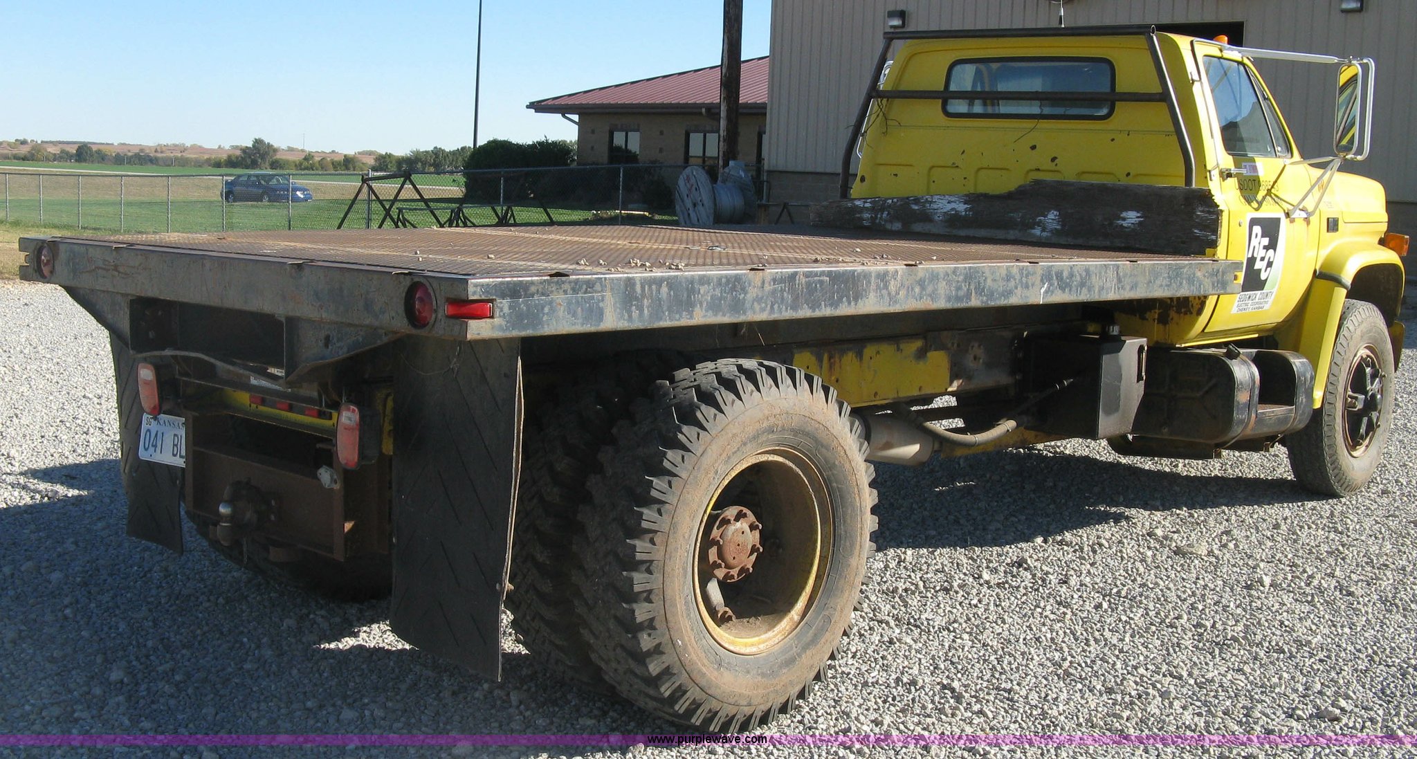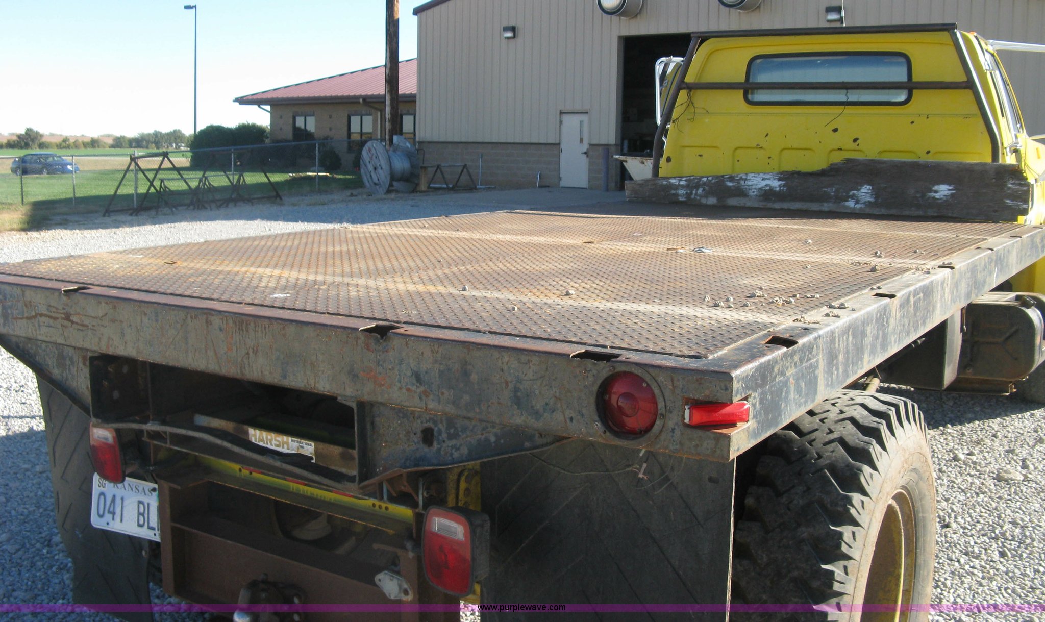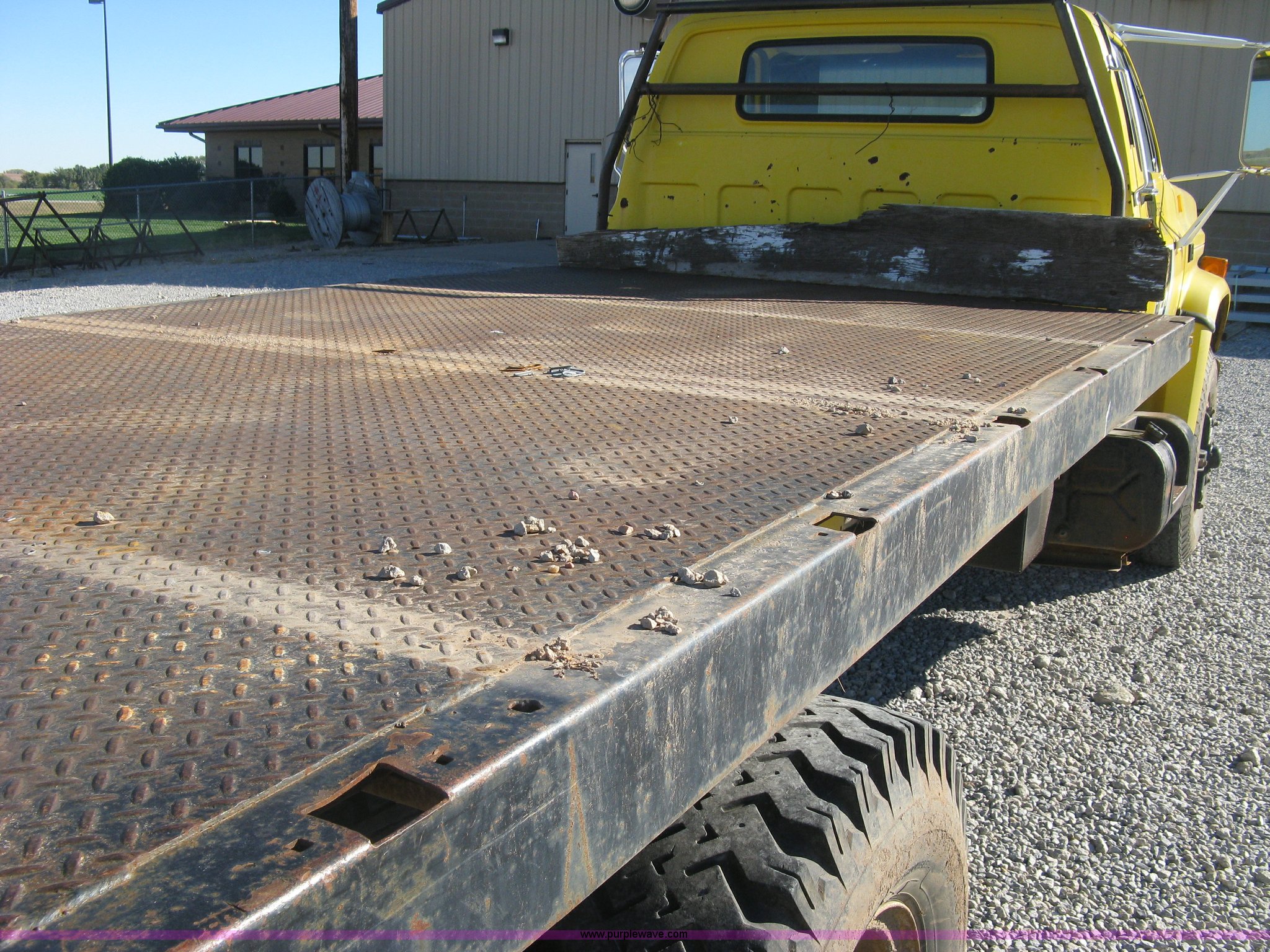 Purple Wave is selling a used Flat Bed Truck in Kansas. This item is a 1986 Chevrolet C70 Custom Deluxe flatbed truck with the following: 117,516 miles on odometer, 7.0L V8 gas engine, Five speed manual transmission, Two speed rear end, Heat, AM/FM, Manual windows and locks, Vinyl interior, Electric trailer brake booster, CB radio, Front tow hooks, Muncie PTO, Flatbed, 162"L x 94"W, Stake side pockets, Harsh single ram hoist, Ball/pintle hitch, Trailer wiring, Dual exhaust stacks, Spring suspension, 10.00-20 front tires, GVWR 30,000 lbs, FAWR 9,000 lbs, RAWR 21,200 lbs, Interior/exterior cosmetic damage, Scratches, Dents, Grill plastic damage, Unit# 12