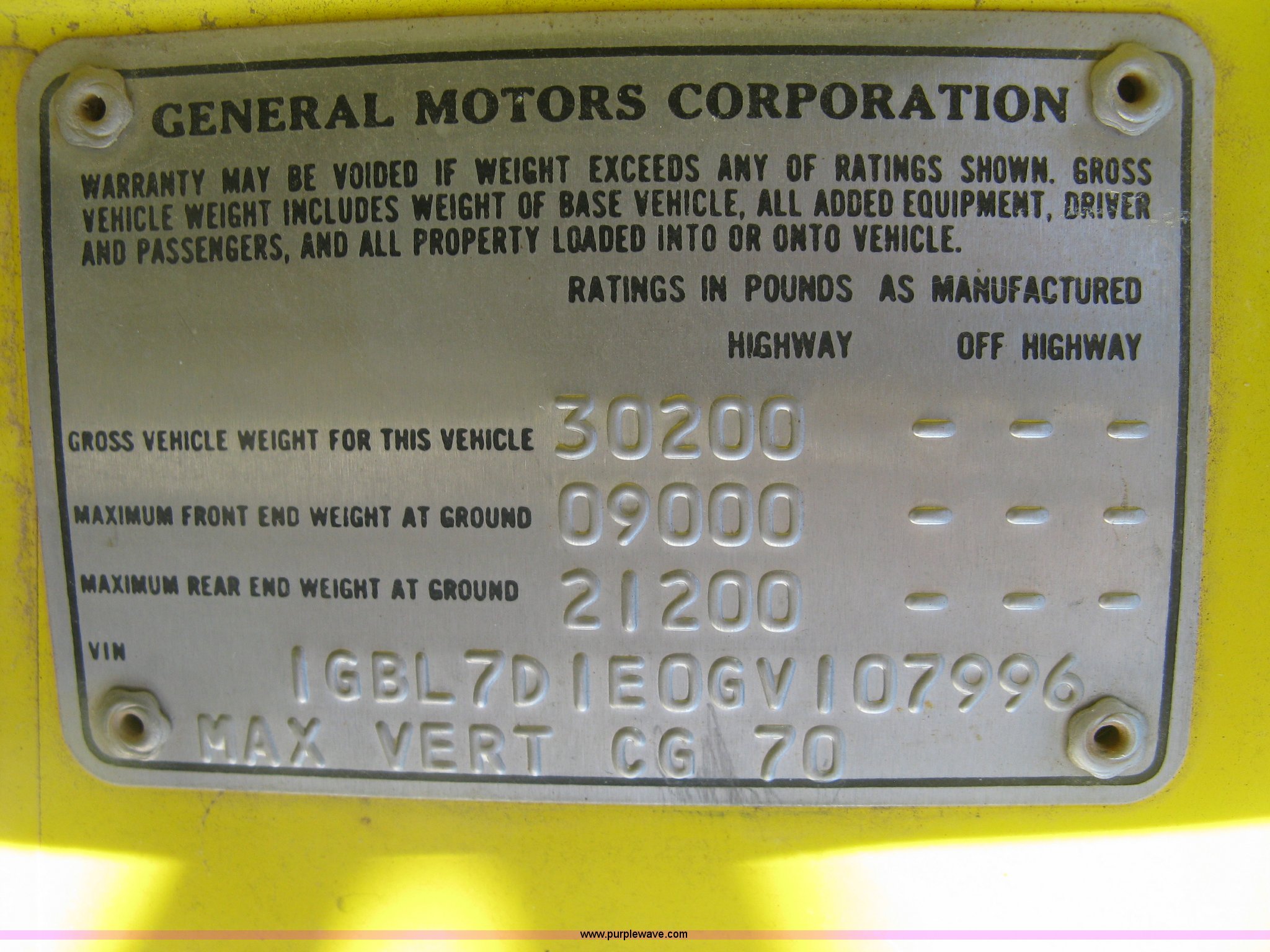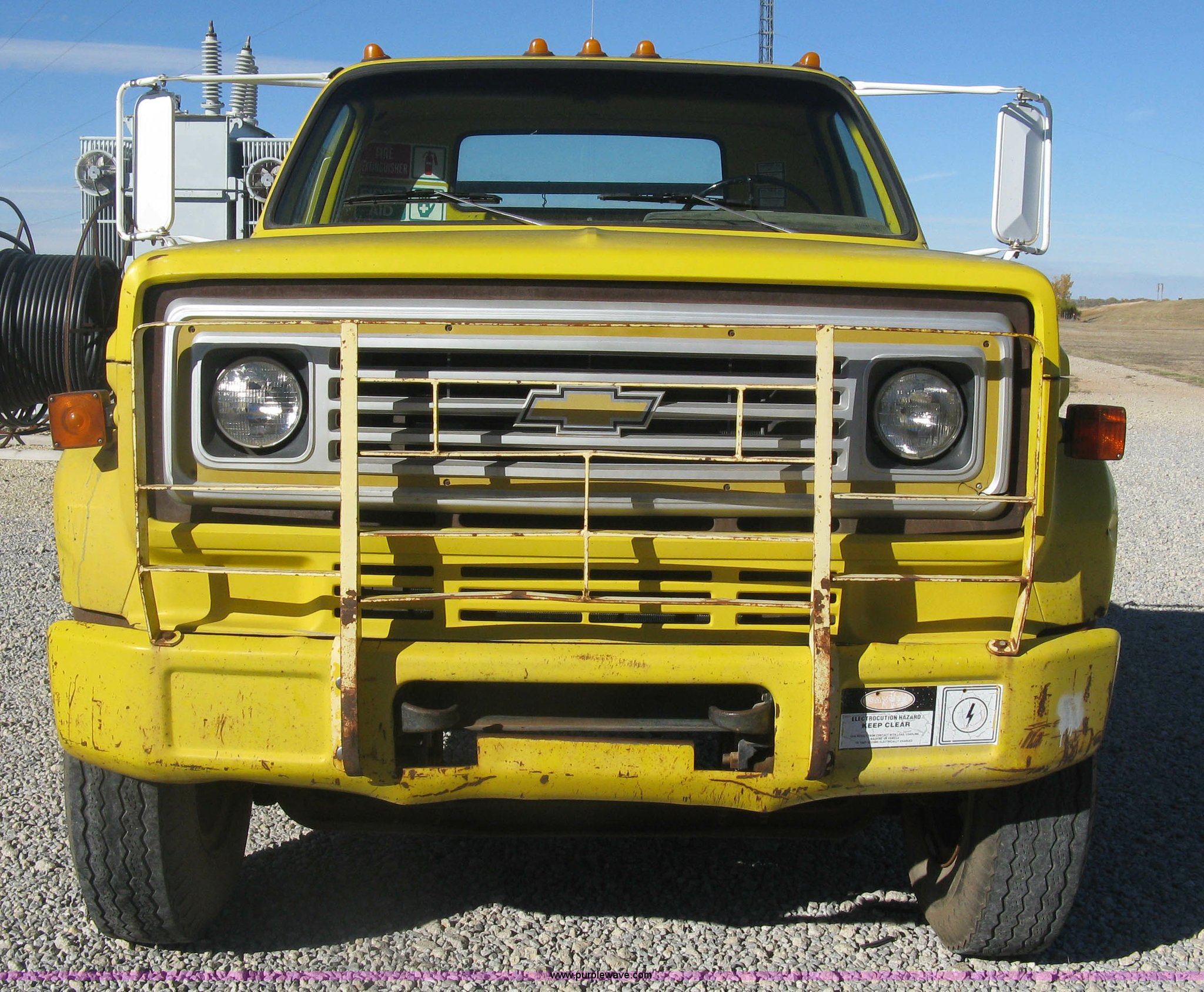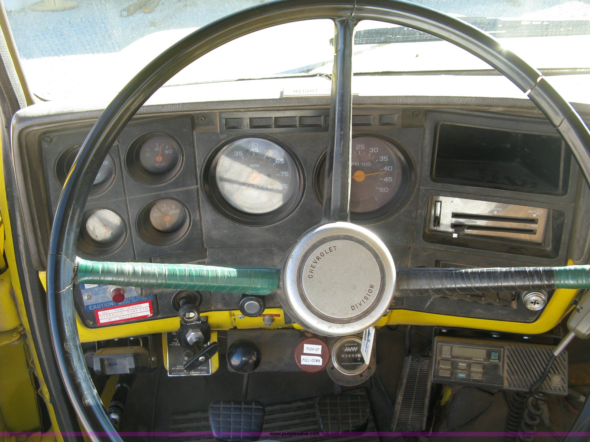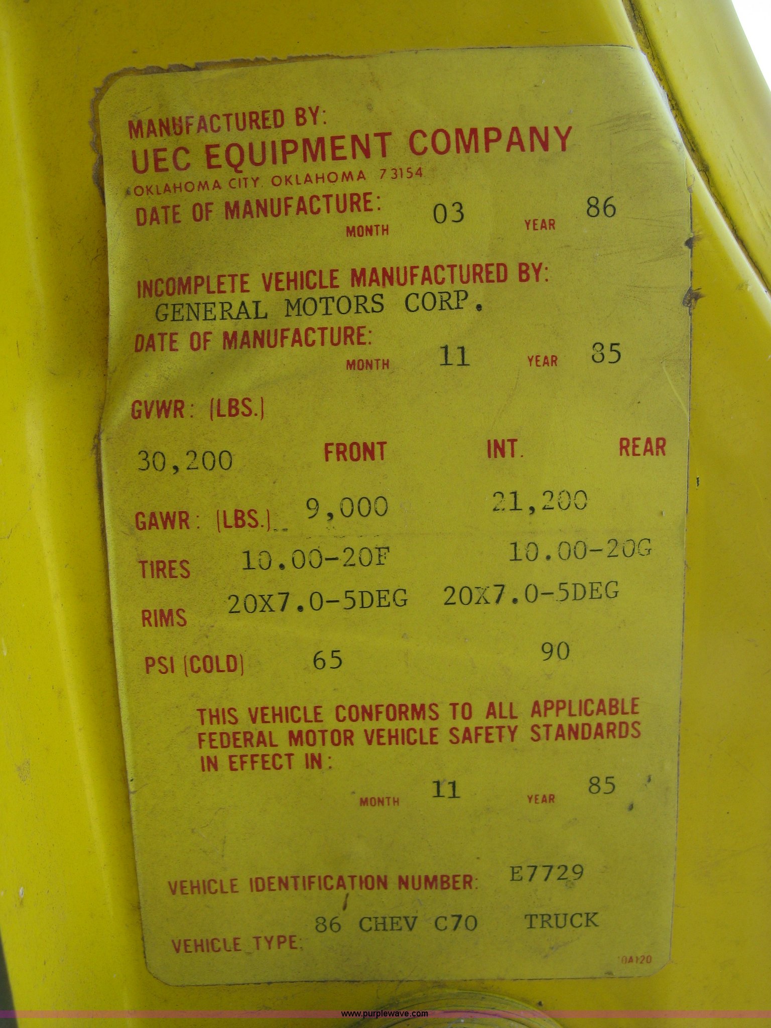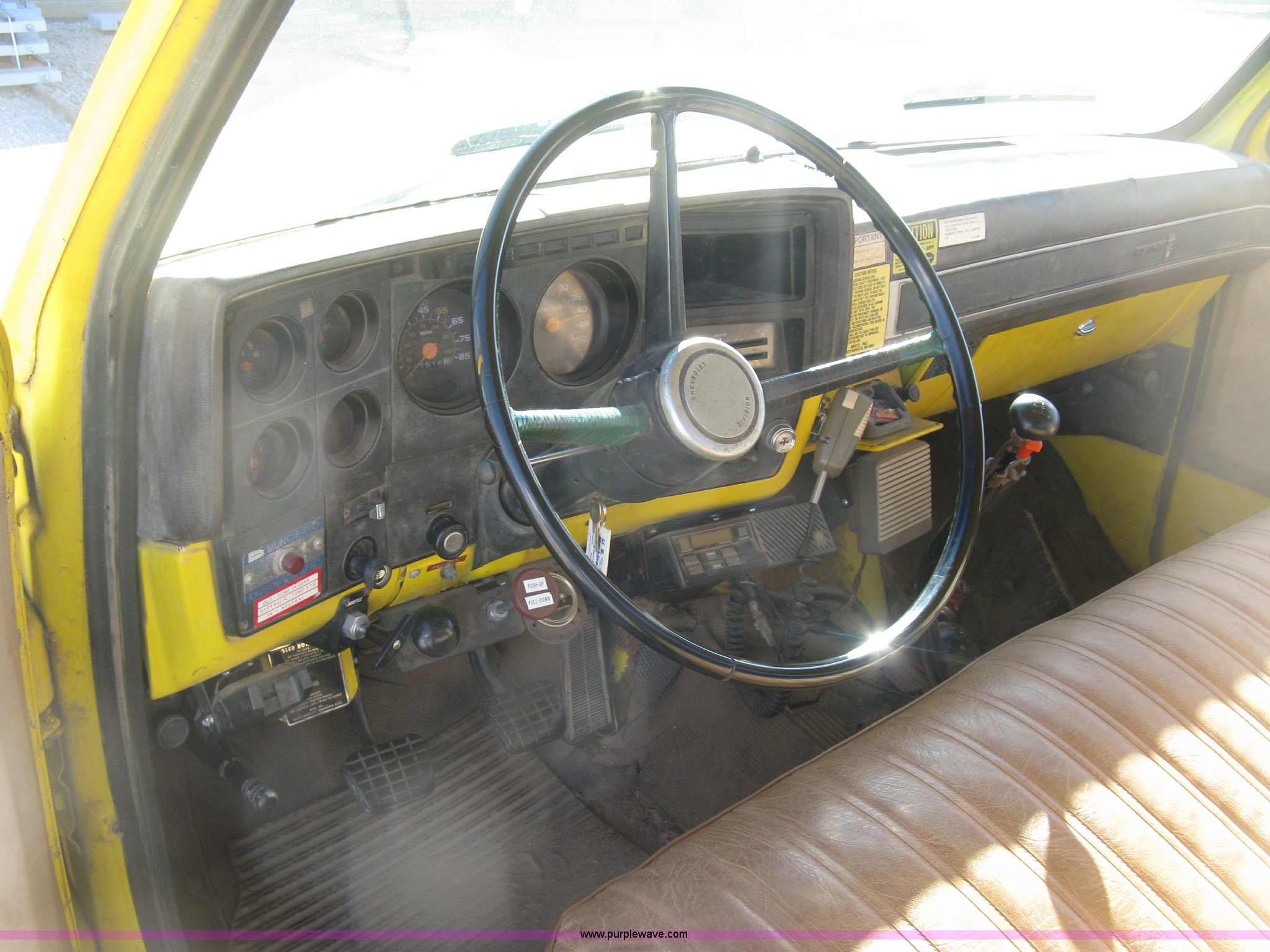 Purple Wave is selling a used Flat Bed Truck in Kansas. This item is a 1986 Chevrolet C70 Custom Deluxe flatbed truck with the following: 117,516 miles on odometer, 7.0L V8 gas engine, Five speed manual transmission, Two speed rear end, Heat, AM/FM, Manual windows and locks, Vinyl interior, Electric trailer brake booster, CB radio, Front tow hooks, Muncie PTO, Flatbed, 162"L x 94"W, Stake side pockets, Harsh single ram hoist, Ball/pintle hitch, Trailer wiring, Dual exhaust stacks, Spring suspension, 10.00-20 front tires, GVWR 30,000 lbs, FAWR 9,000 lbs, RAWR 21,200 lbs, Interior/exterior cosmetic damage, Scratches, Dents, Grill plastic damage, Unit# 12