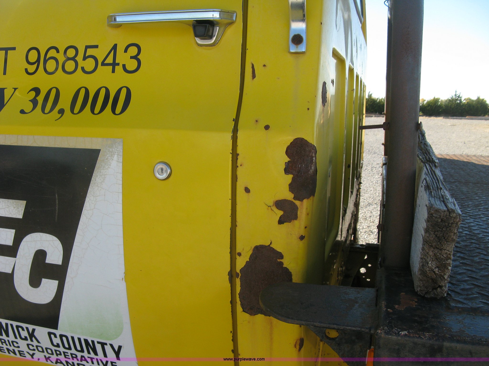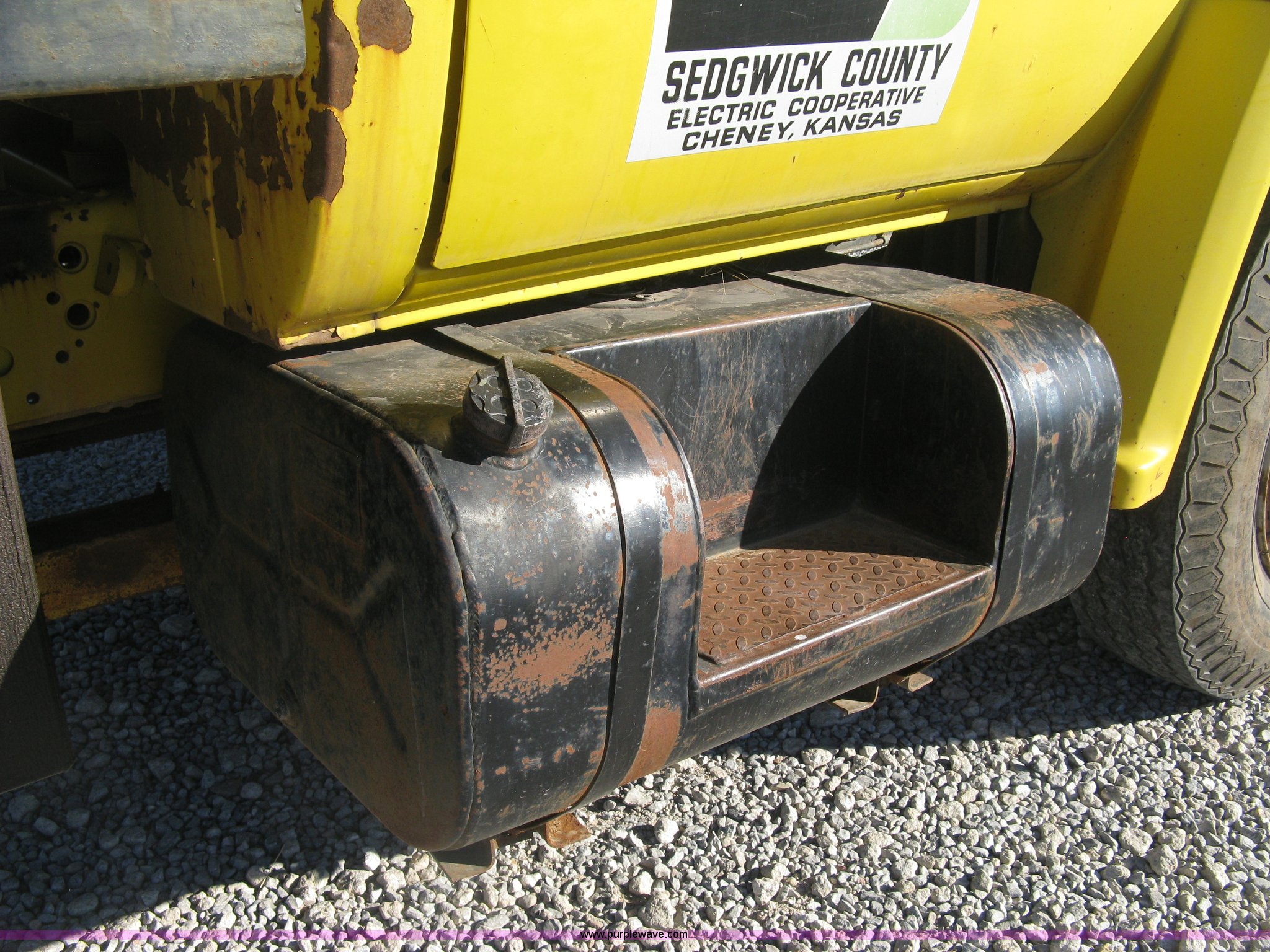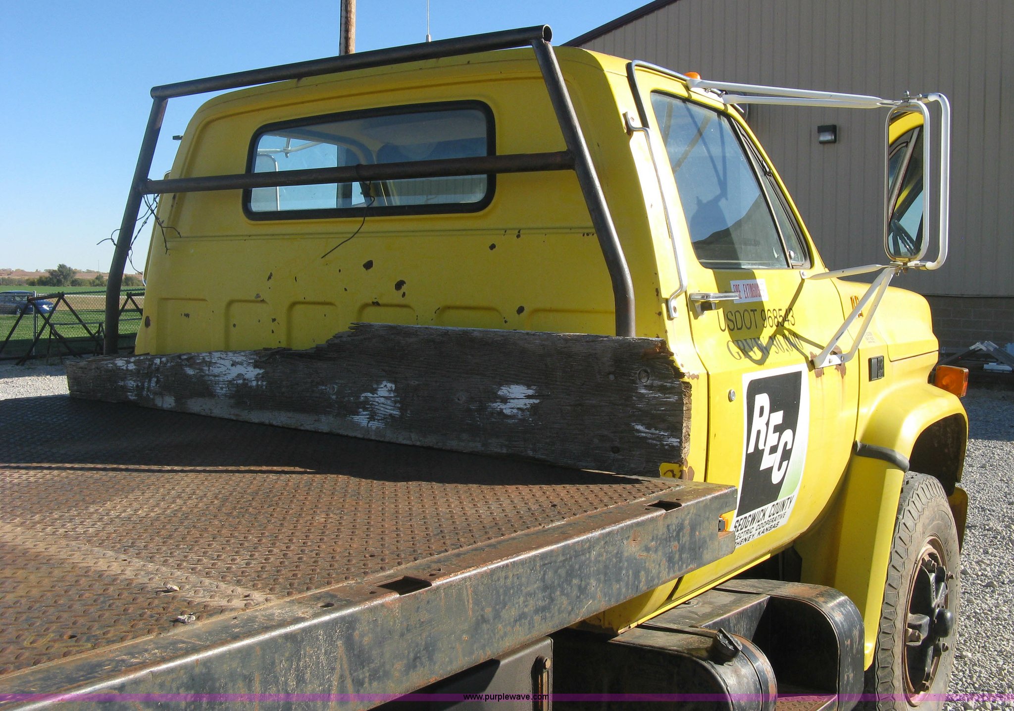 1986 Chevrolet C70 Custom Deluxe flatbed truck. 117,516 miles on odometer, 7.0L V8 gas engine, Five speed manual transmission, Two speed rear end, Heat, AM/FM, Manual windows and locks, Vinyl interior, Electric trailer brake booster, CB radio, Front tow hooks, Muncie PTO, Flatbed 162"L x 94"W , Stake side pockets, Harsh single ram hoist , Ball/pintle hitch, Trailer wiring, Dual exhaust stacks, Spring suspension, 10.00-20 front tires, GVWR 30,000 lbs, FAWR 9,000 lbs, RAWR 21,200 lbs, Interior/exterior cosmetic damage, Scratches , Dents, Grill plastic damage, Unit# 12. 1GBL7D1E0GV107996. Sedgwick County Electric Cooperative. 1355 S 383rd St W. Cheney , KS 67025