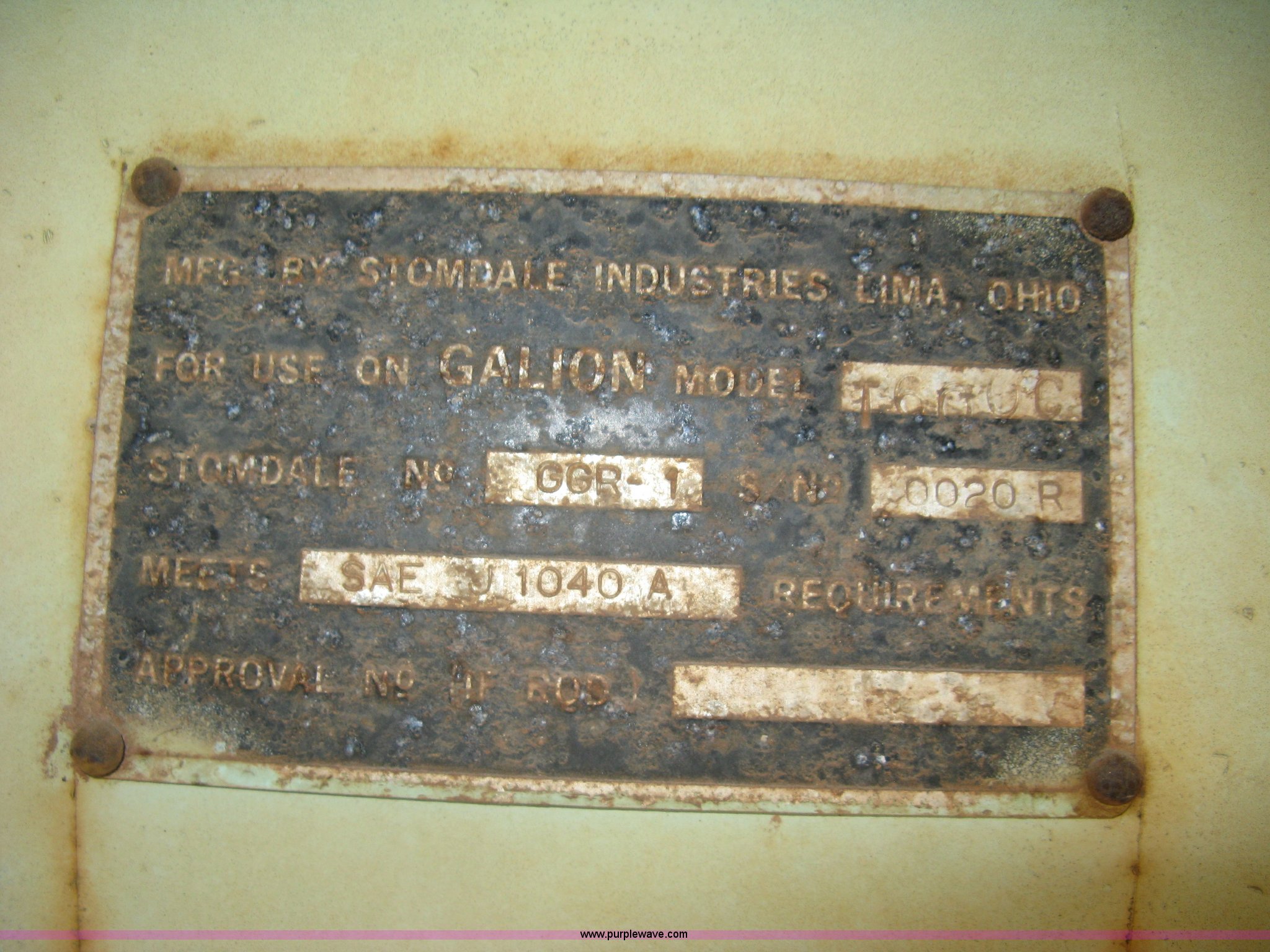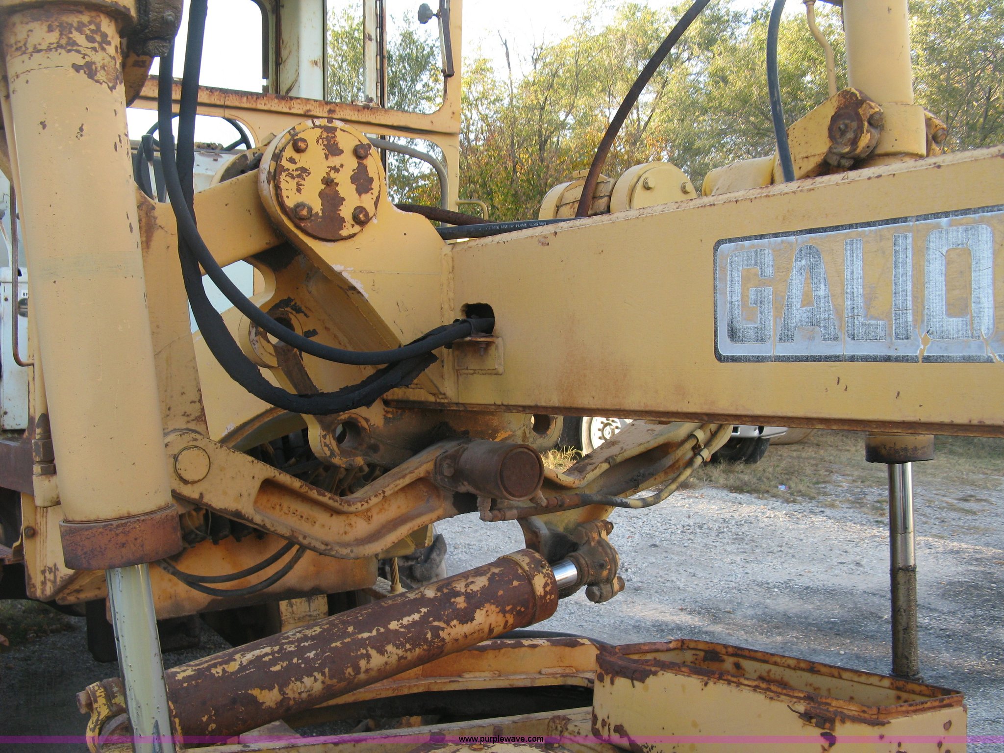 Purple Wave is selling a used Motor Grader in Kansas. This item is a Galion T600C rigid frame motor grader with the following: 465 hours on meter, International six cylinder diesel engine, Powershift transmission, 4F-4R gears, EROPS, 12'W moldboard, Front mounted scarifier, (2) teeth, One tooth broken,, 14.00R24 tires, Rear glass only, Non-operational brakes, Serial IC-02728
