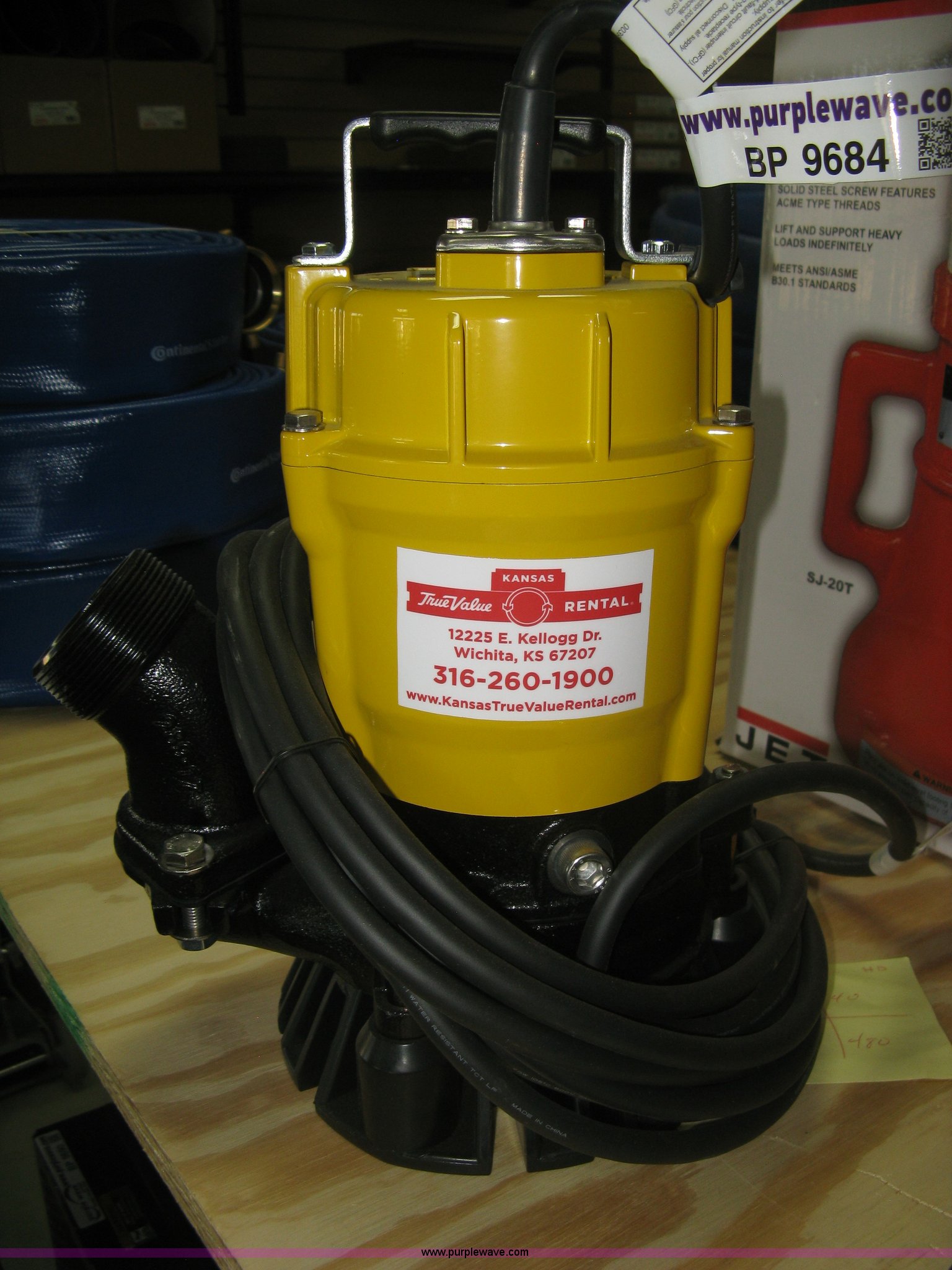 Purple Wave is selling a used Pump in Kansas. This item is a Wacker Neuson PST2-400 submersible pump with the following: 1/2 HP, 110V, Single phase, 53 gallon per minute capacity, 39' maximum feet, Unused