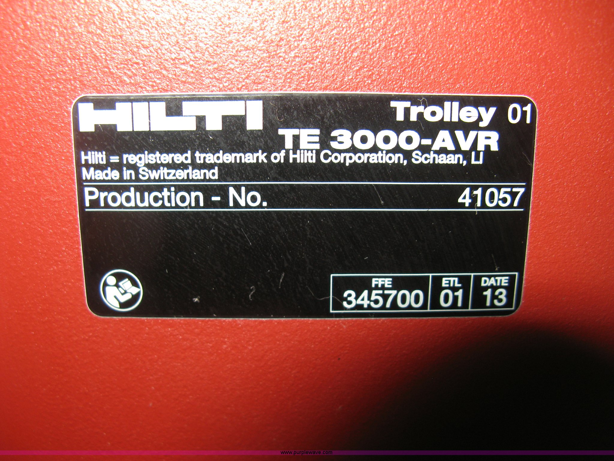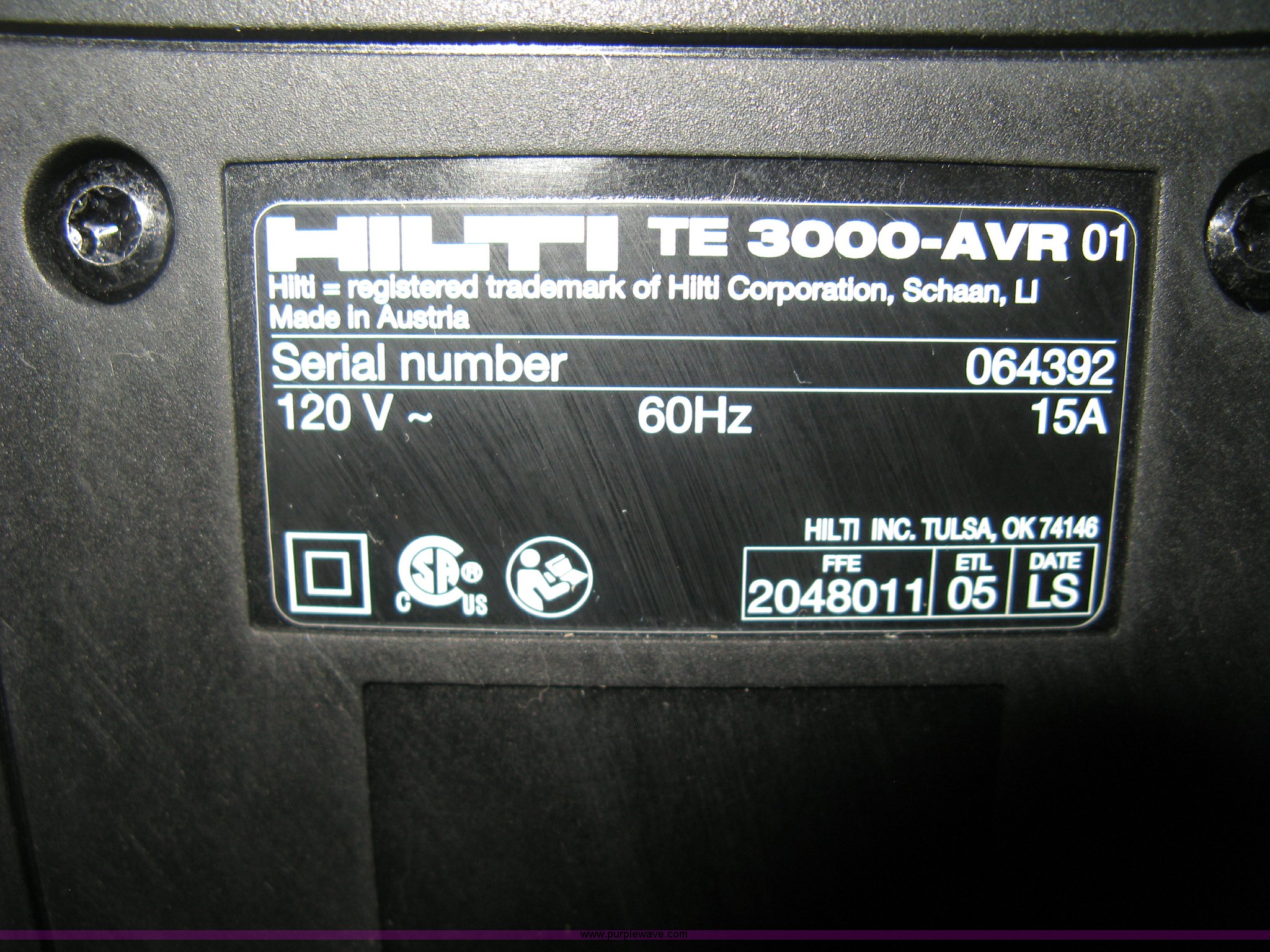 Take a look at this used Hilti TE3000-AVR electric breaker being sold on December 3rd, 2015 in the SOLD! December 3 True Value Rental Relocation Auction made by Hilti. Take a look at all of the item information below or take a look at similar auctions for Shop Tools.