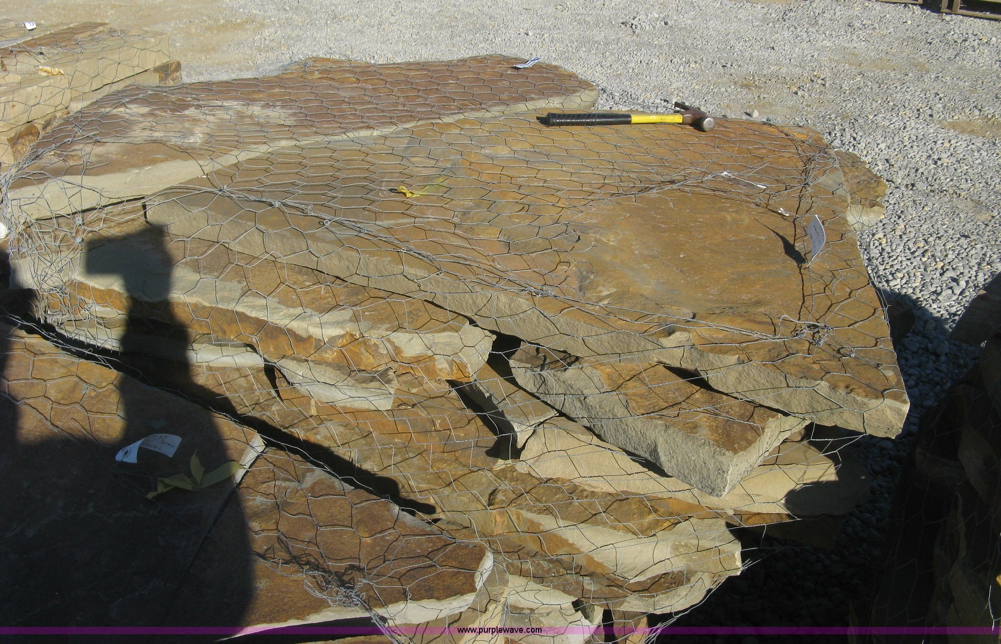 Purple Wave is selling a used Lawn and Garden in Kansas. This item is a Oklahoma brown tan large flagstones with the following: Approx. 160 sq. ft. coverage, Approx. 4,440 lbs