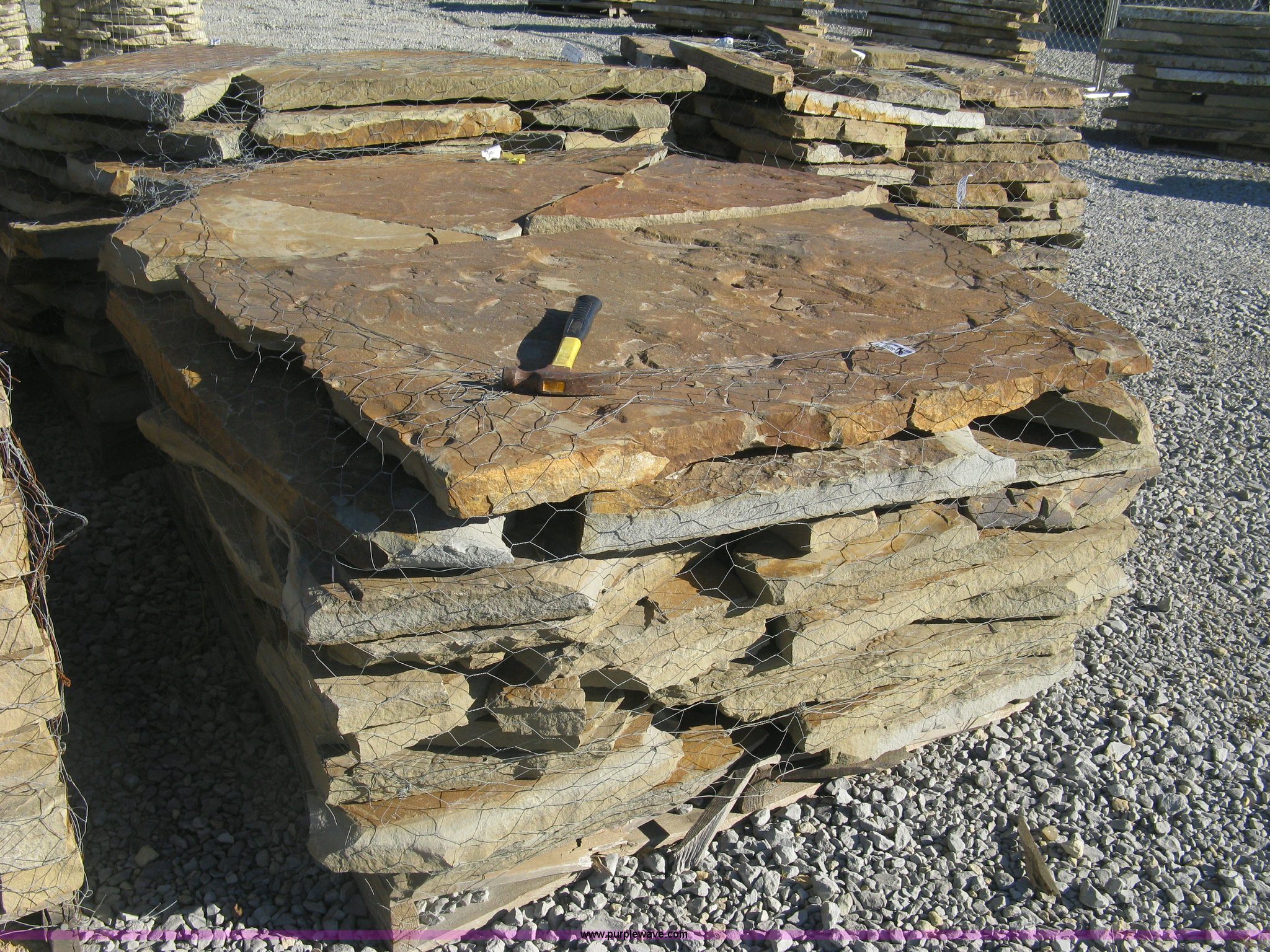 Purple Wave is selling a used Lawn and Garden in Kansas. This item is a Oklahoma brown tan large flagstones with the following: Approx 4,800 lbs