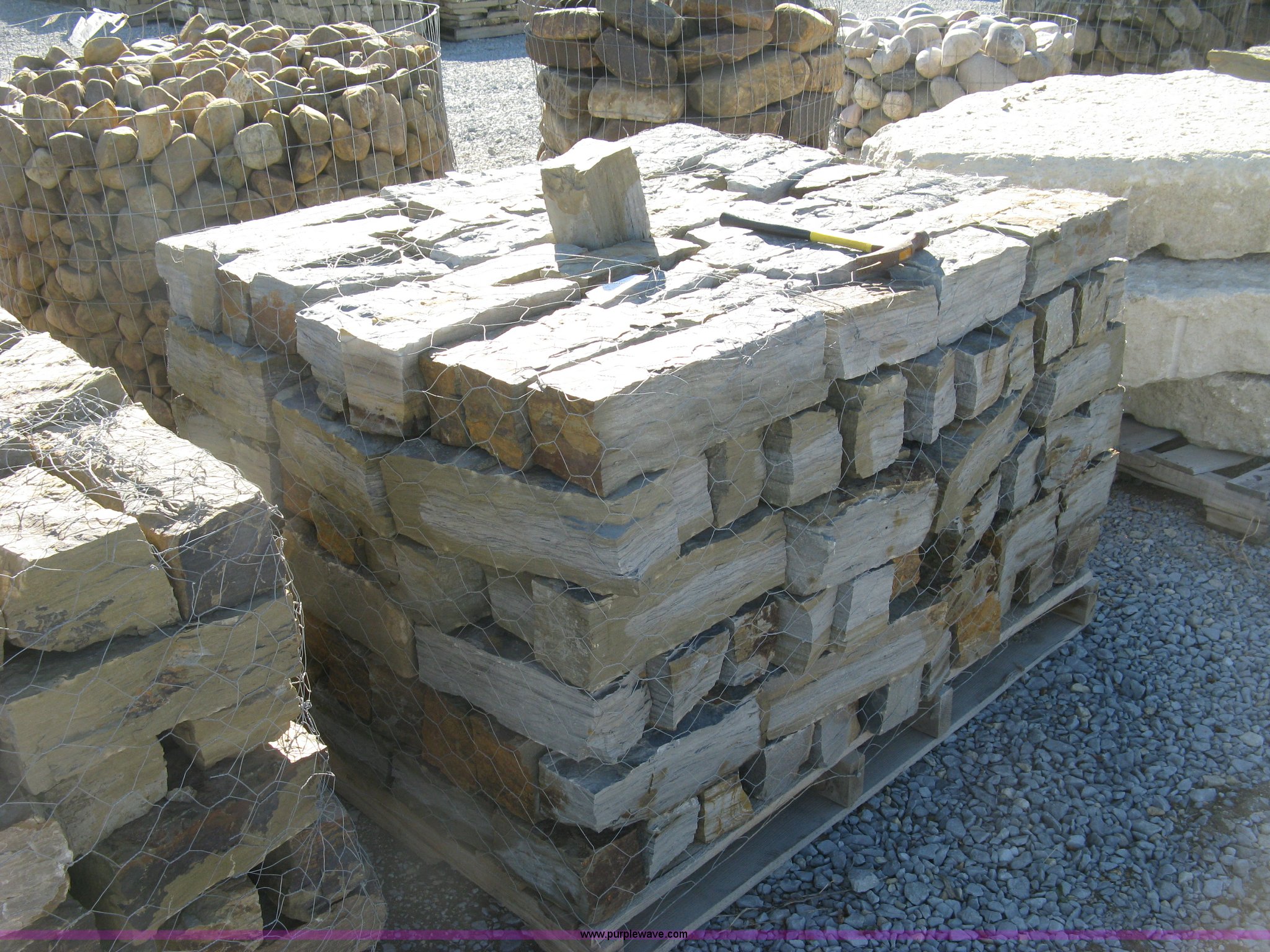 Purple Wave is selling a used Lawn and Garden in Kansas. This item is a Oklahoma blue brown rustic chopped stones with the following: Approx. 200 linear ft., Approx. 4,000 lbs