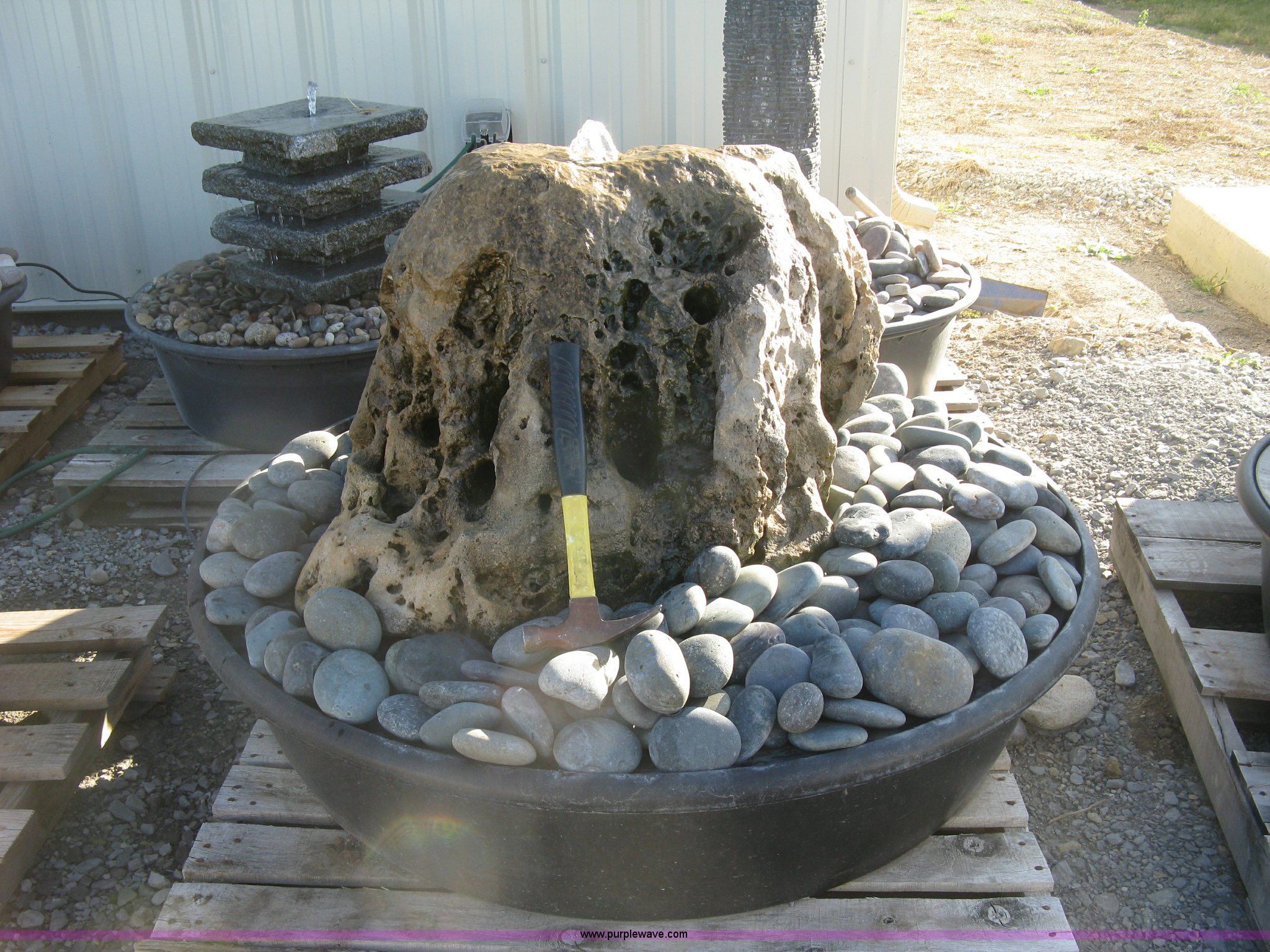 Purple Wave is selling a used Lawn and Garden in Kansas. This item is a Running water feature with the following: Premium tub, rocks, pump, and connections included