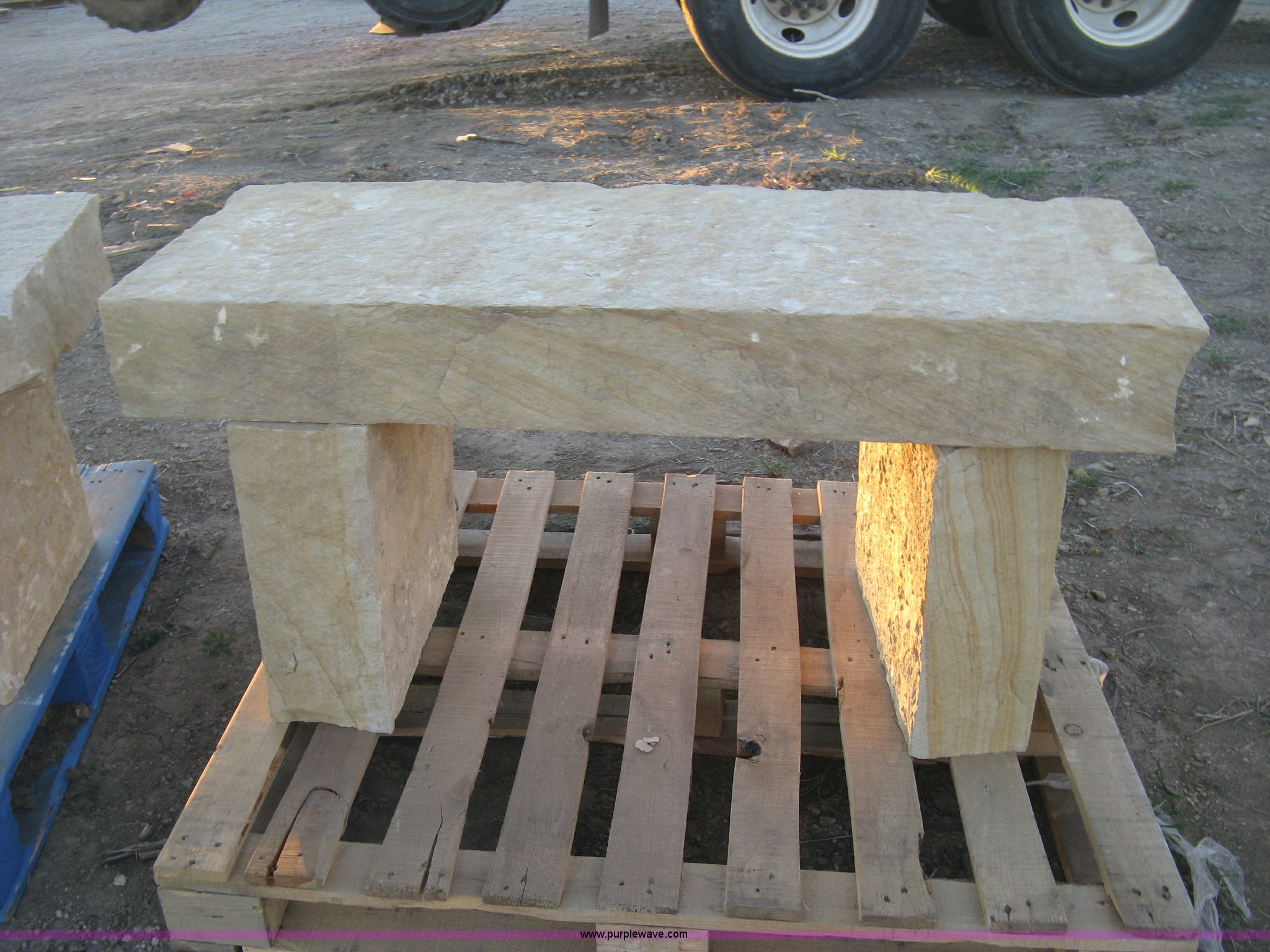 Purple Wave is selling a used Lawn and Garden in Kansas. This item is a Colorado Buff three piece natural stone bench with the following: 4'W