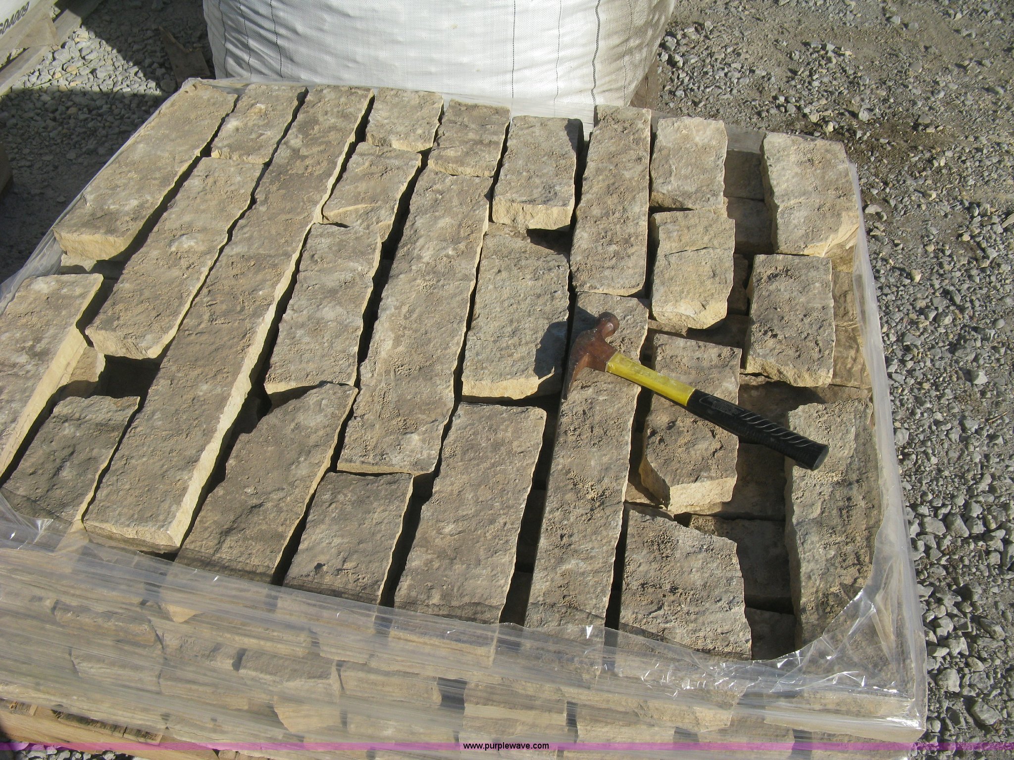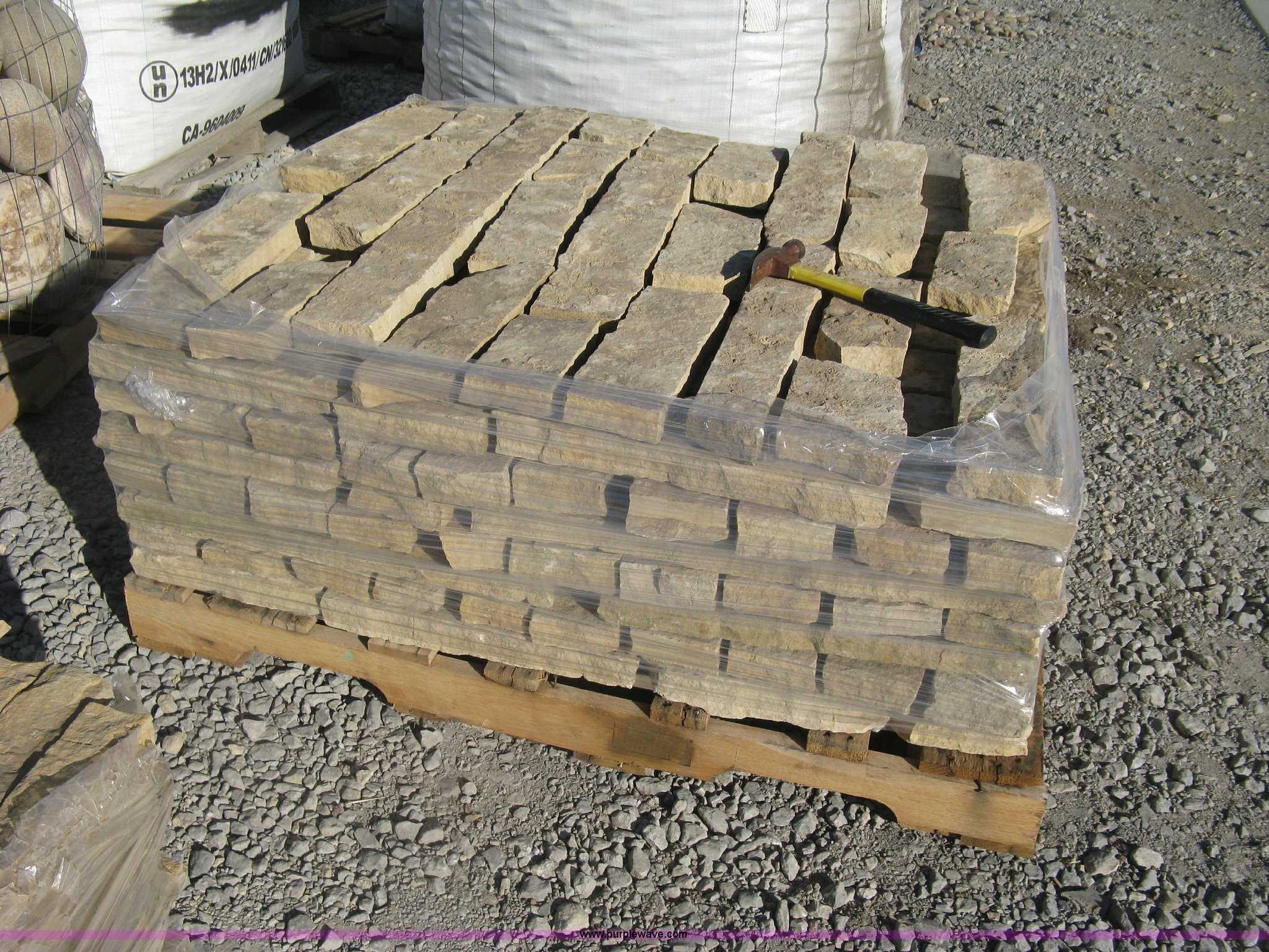 Purple Wave is selling a used Lawn and Garden in Kansas. This item is a Colorado Buff thin veneer stone with the following: Approx 90 sq.ft.