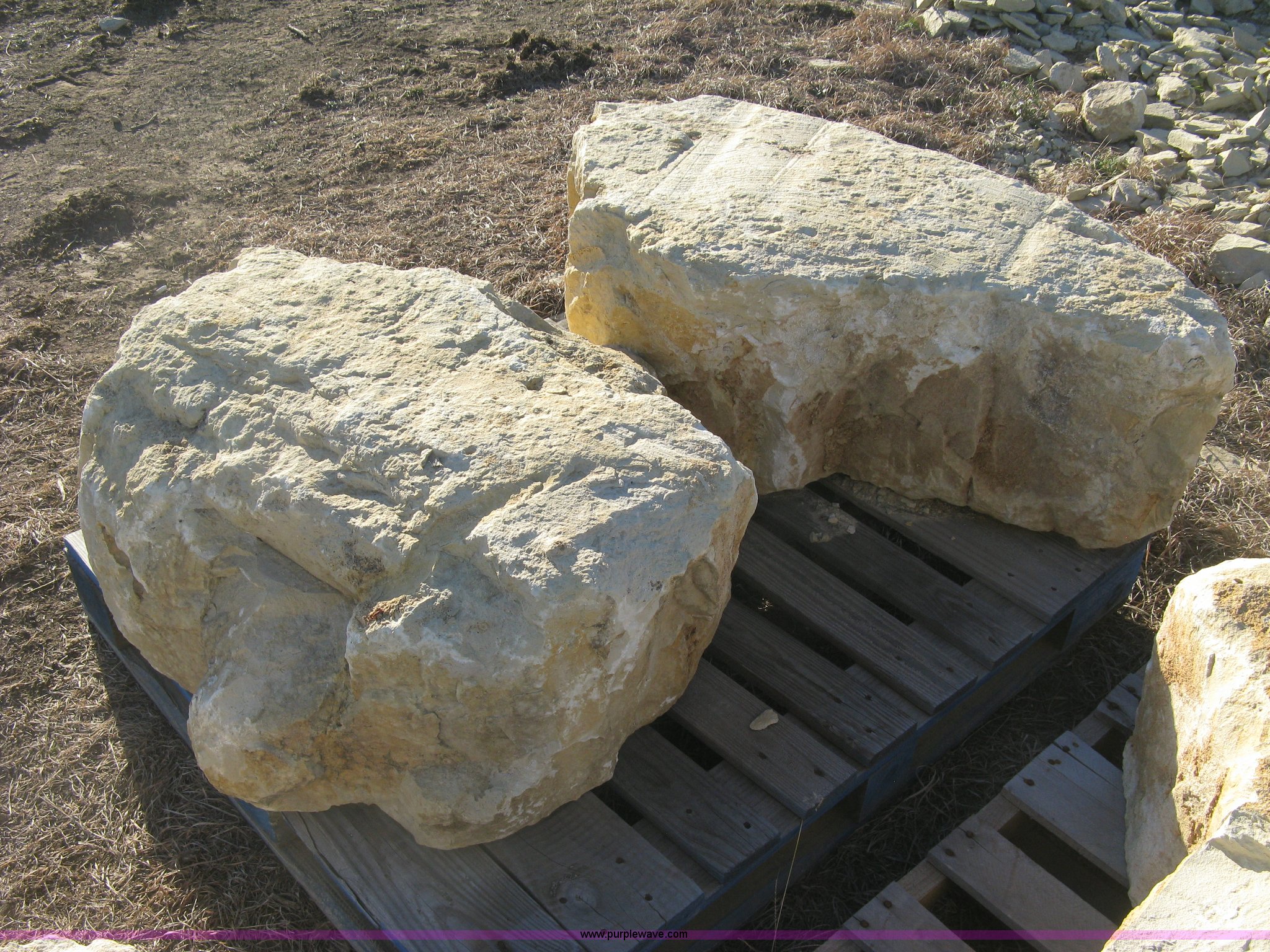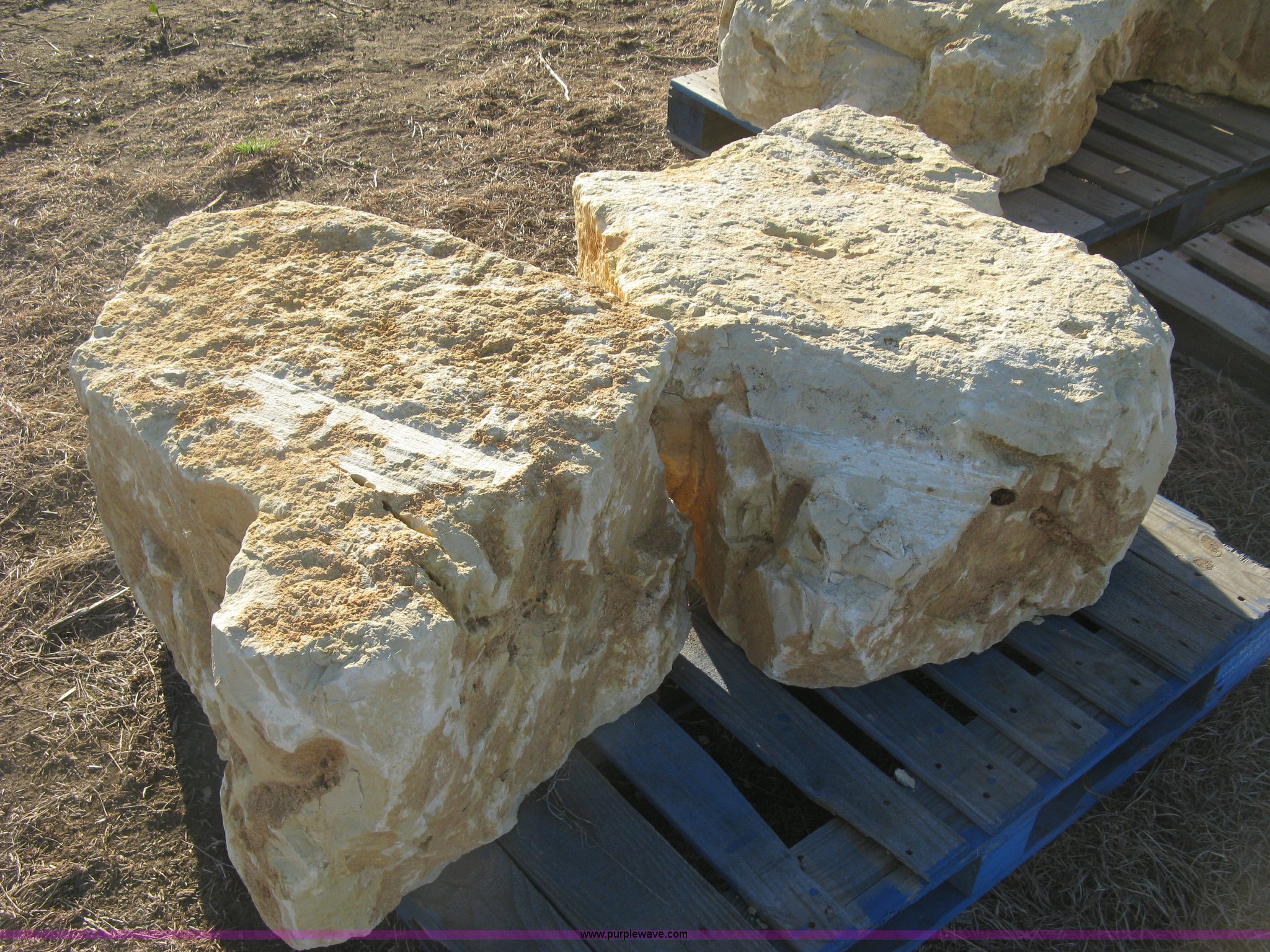 Purple Wave is selling a used Lawn and Garden in Kansas. This item is a (5) native Kansas cream limestone boulders with the following: Three pallets