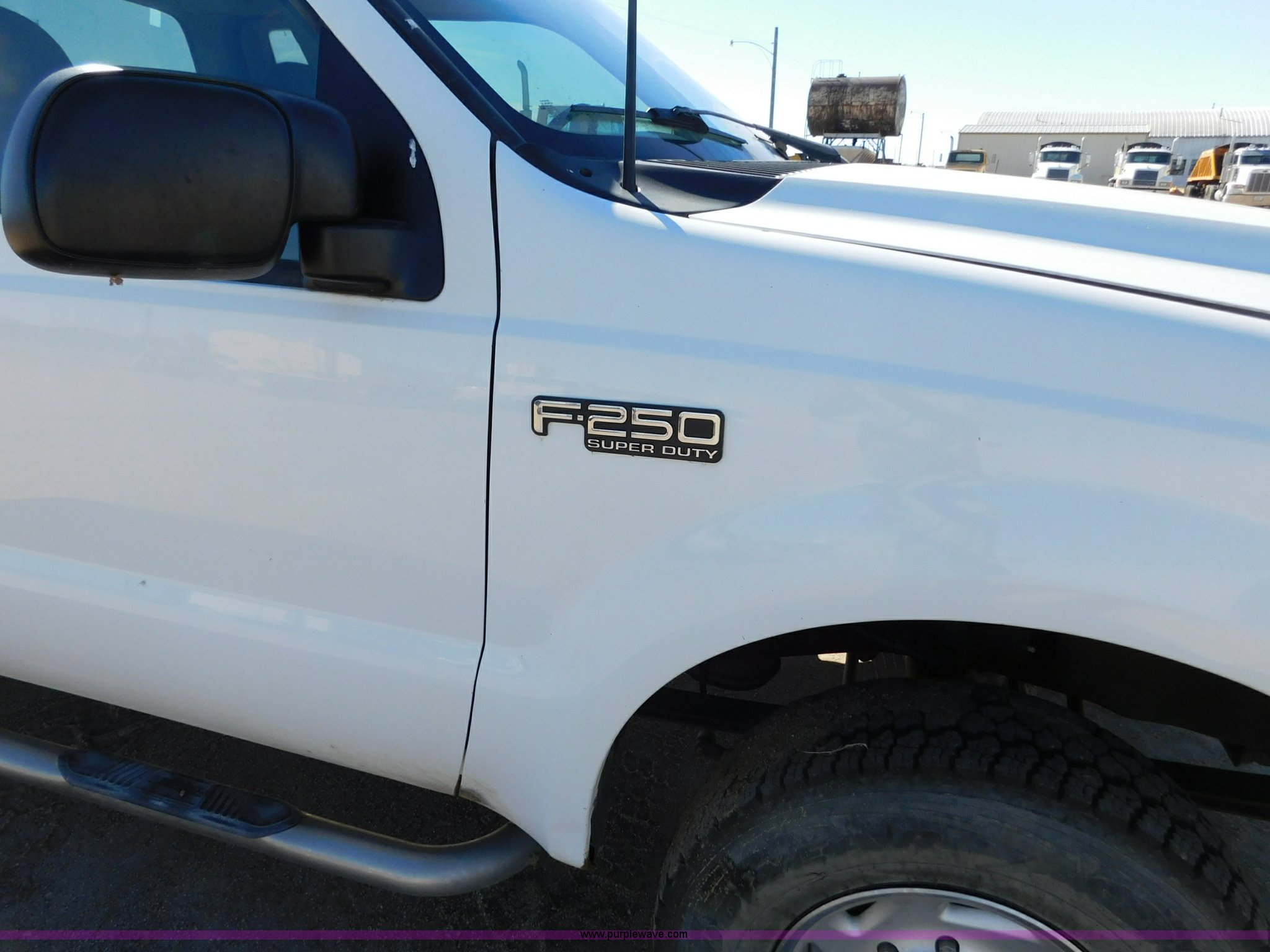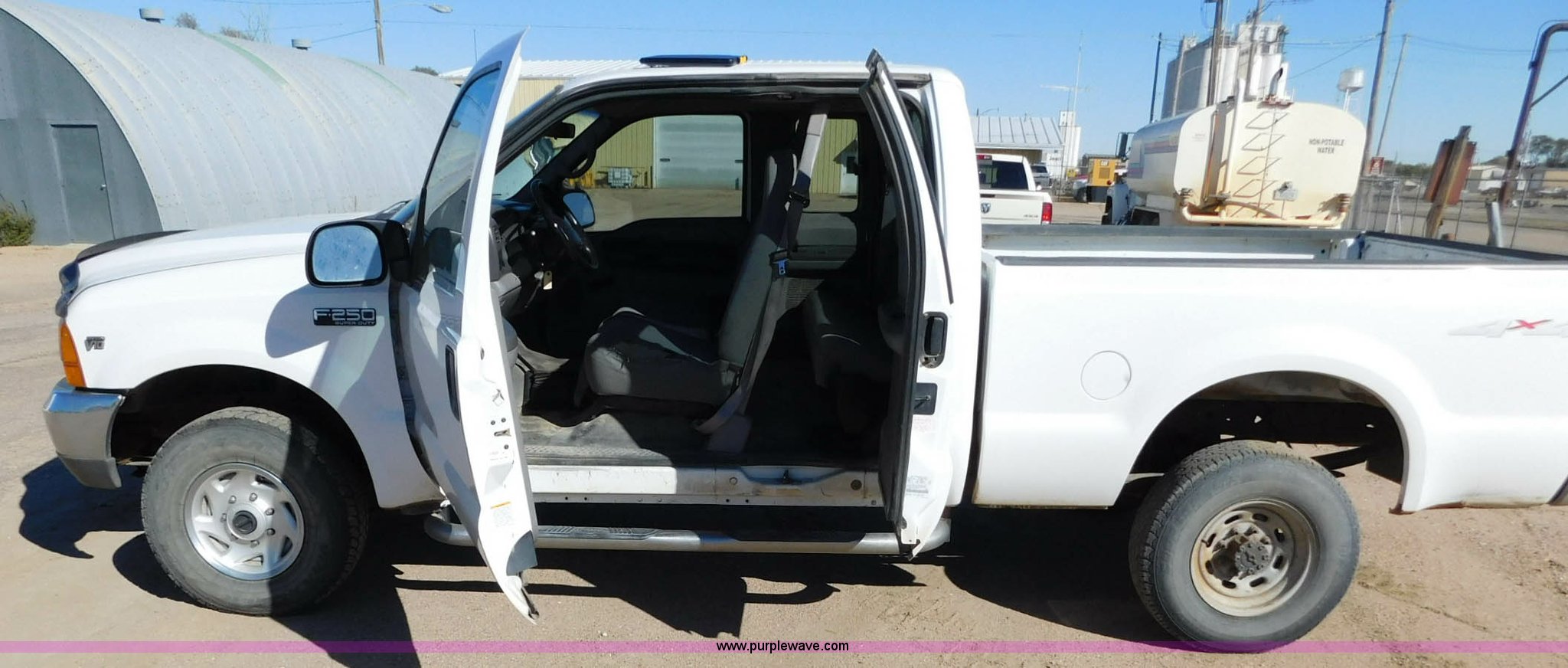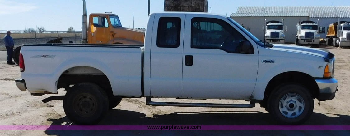 Purple Wave is selling a used 3/4 or 1 Ton Pickup or Van in Kansas. This item is a 1999 Ford F250 Ext. Cab pickup truck with the following: 193,655 miles on odometer, 6.8L V10 SOHC 20V gas engine, Automatic transmission, Four wheel drive, Lock-out hubs, AC and heat, Tilt, Cruise, Cassette, Manual windows and locks, Cloth interior, Running boards, Front tow hooks, Long bed, 6'L x 68"W, Receiver hitch, LT235/85R16 tires, Interior/exterior cosmetic damage, Transmission has limited operation, Windshield cracked, Weak battery