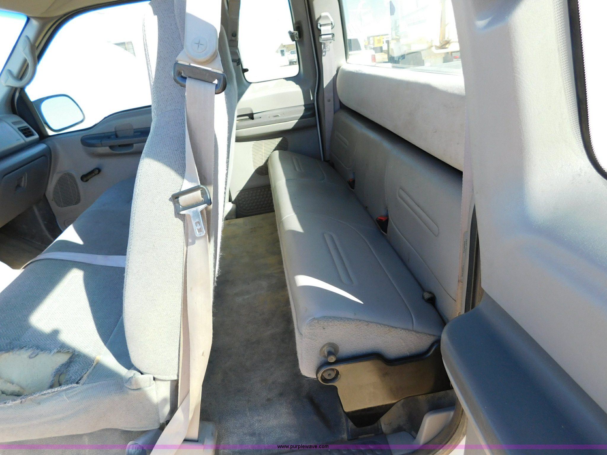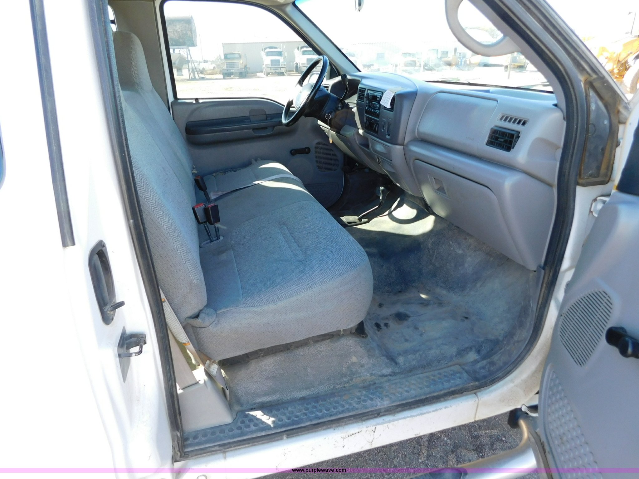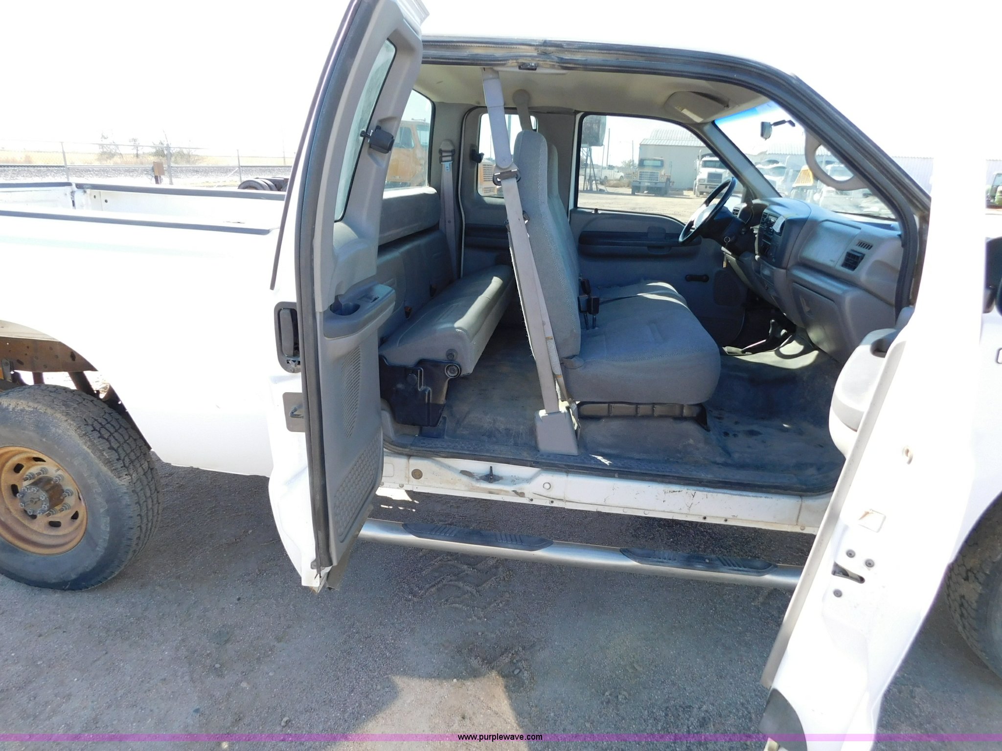 Purple Wave is selling a used 3/4 or 1 Ton Pickup or Van in Kansas. This item is a 1999 Ford F250 Ext. Cab pickup truck with the following: 193,655 miles on odometer, 6.8L V10 SOHC 20V gas engine, Automatic transmission, Four wheel drive, Lock-out hubs, AC and heat, Tilt, Cruise, Cassette, Manual windows and locks, Cloth interior, Running boards, Front tow hooks, Long bed, 6'L x 68"W, Receiver hitch, LT235/85R16 tires, Interior/exterior cosmetic damage, Transmission has limited operation, Windshield cracked, Weak battery