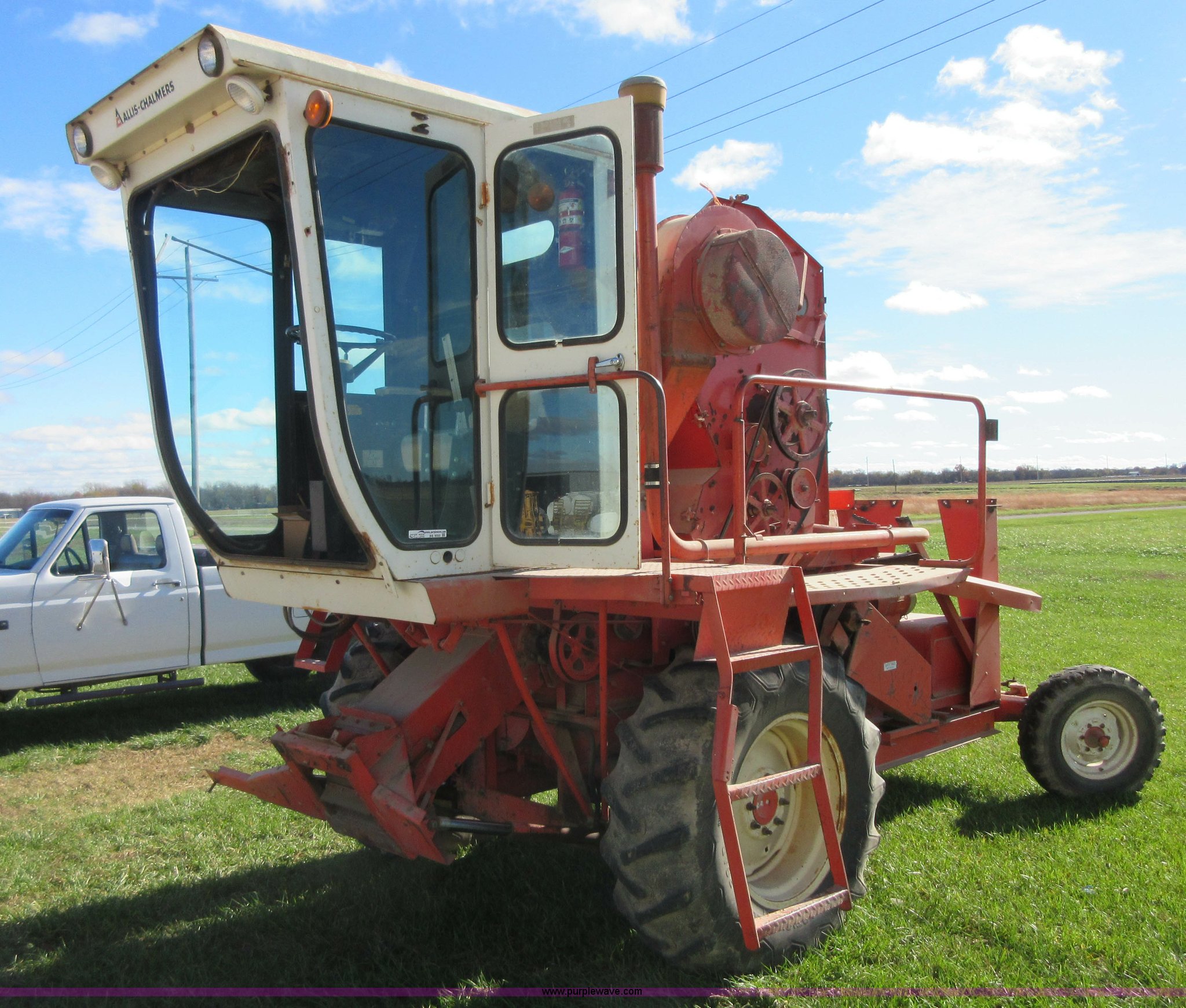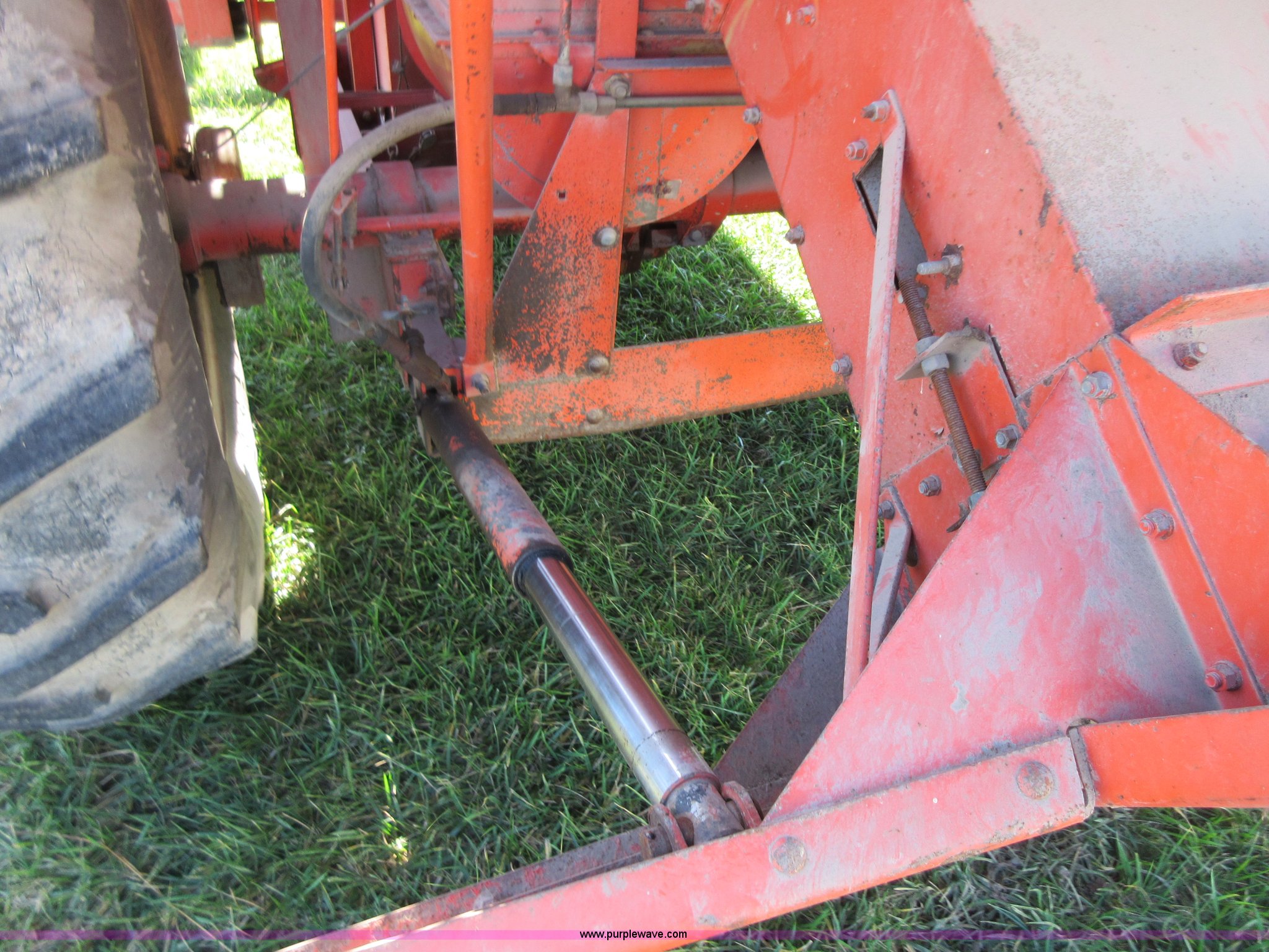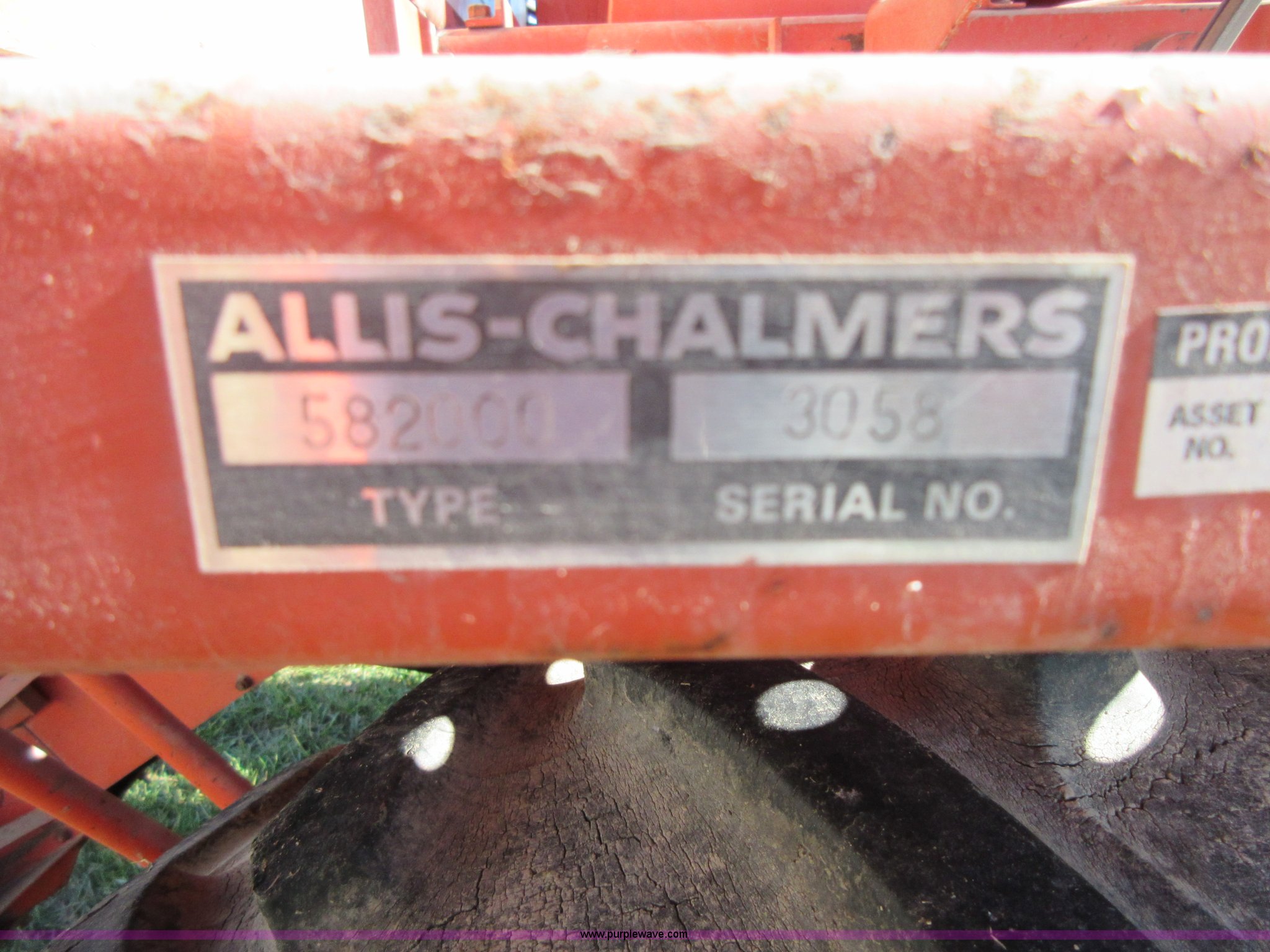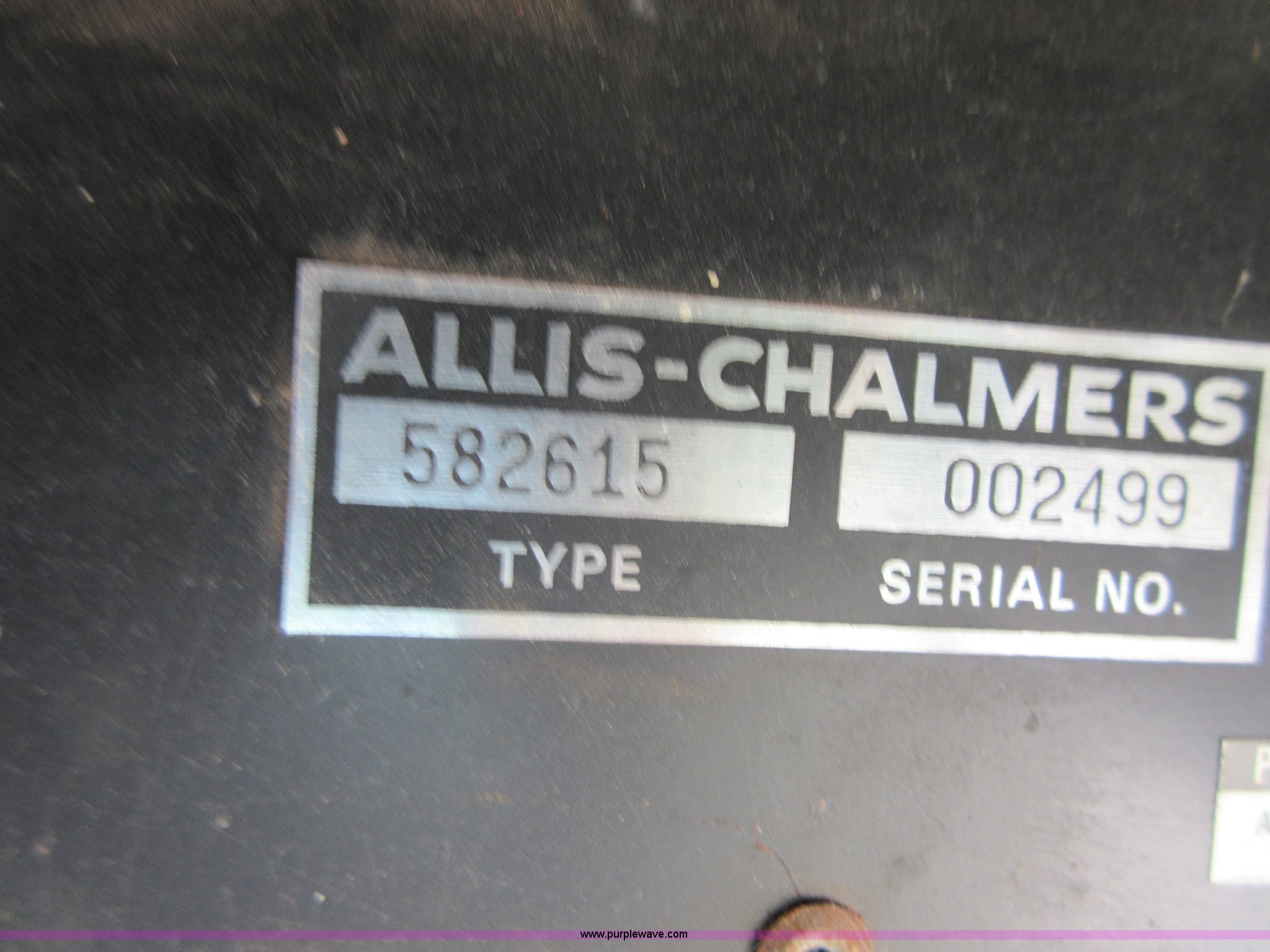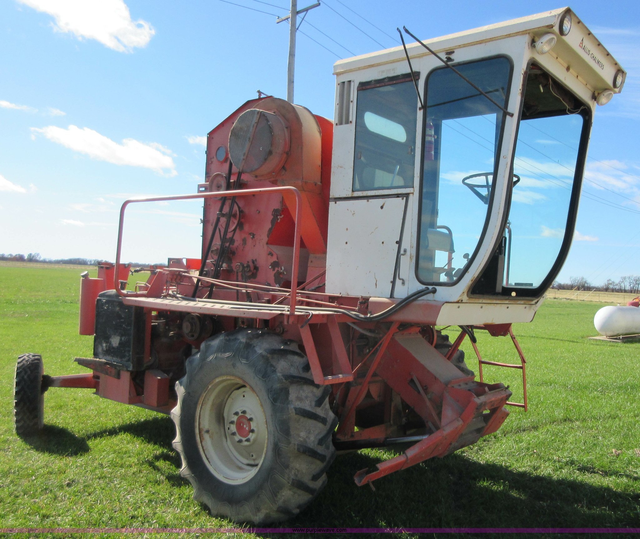 Purple Wave is selling a used Cotton Harvester Equip. in Kansas. This item is a Allis Chalmers 582000 cotton picker with the following: Allis Chalmers 2800 six cylinder diesel engine, Three speed variable transmission, 16.9-26 front tires, 7.50-16LT rear tires, Engine and drive train operational, Parts missing, Non-operational cotton picking unit, Serial 3058