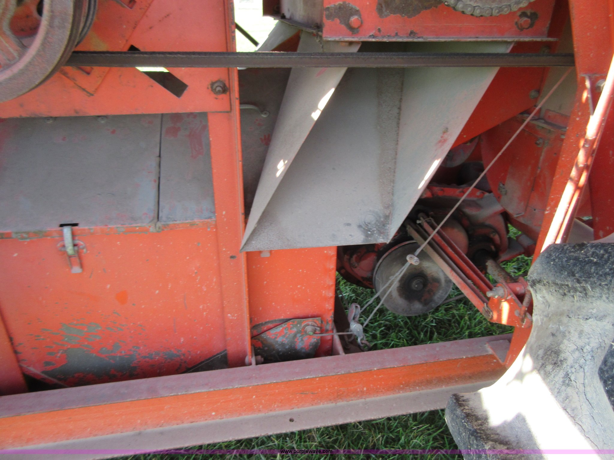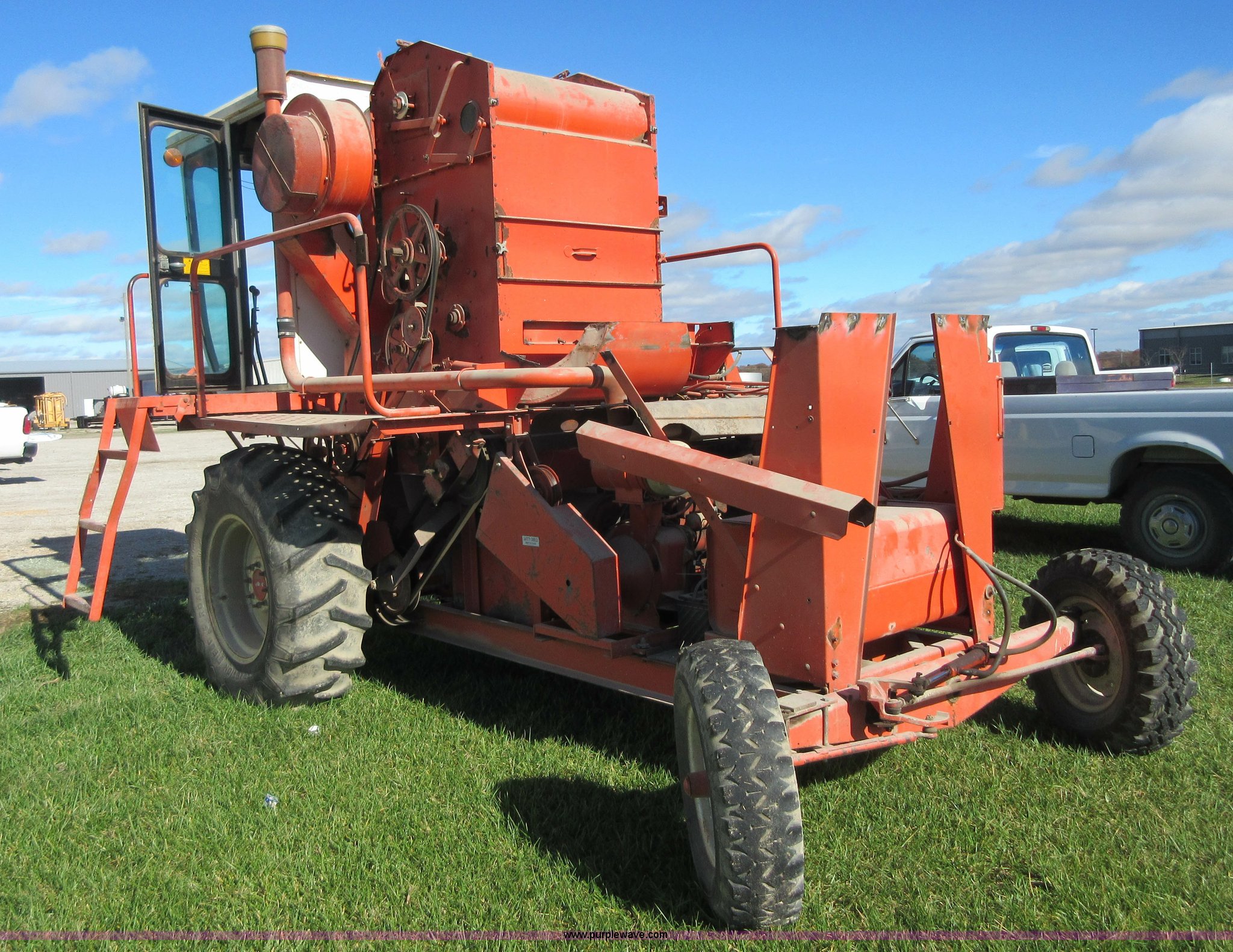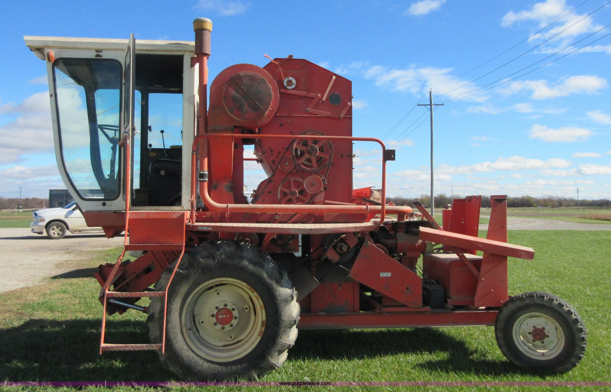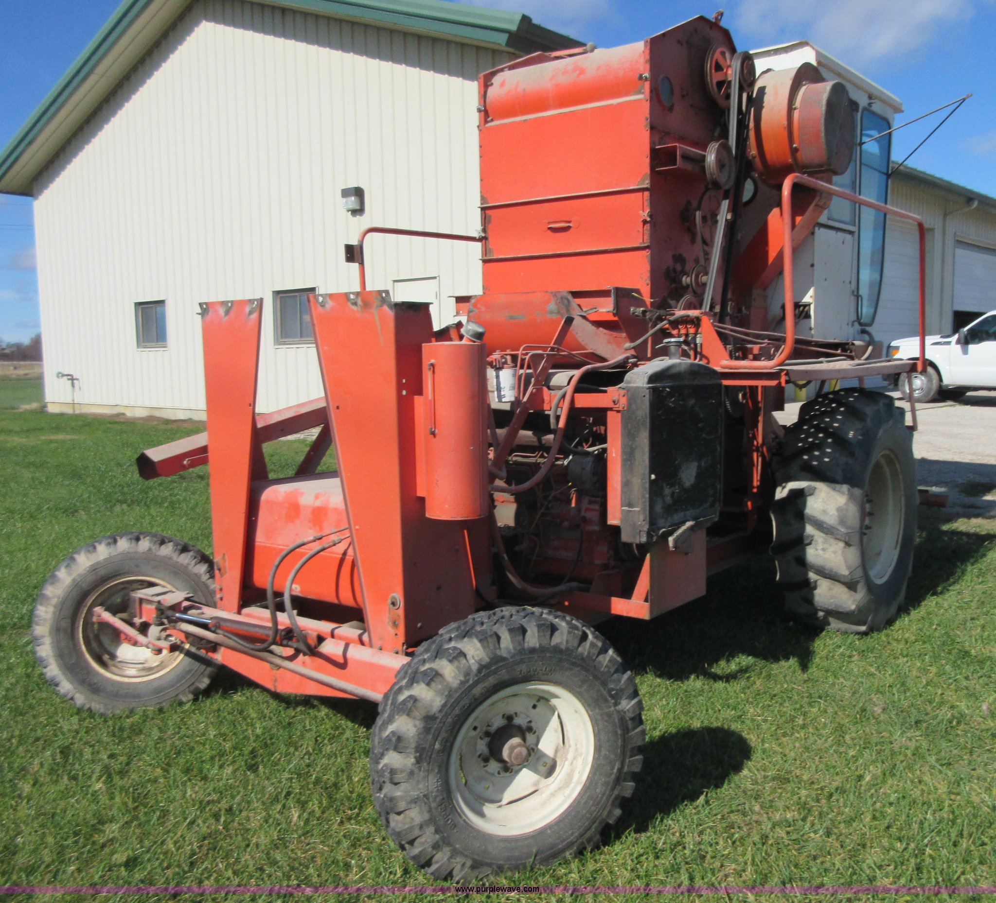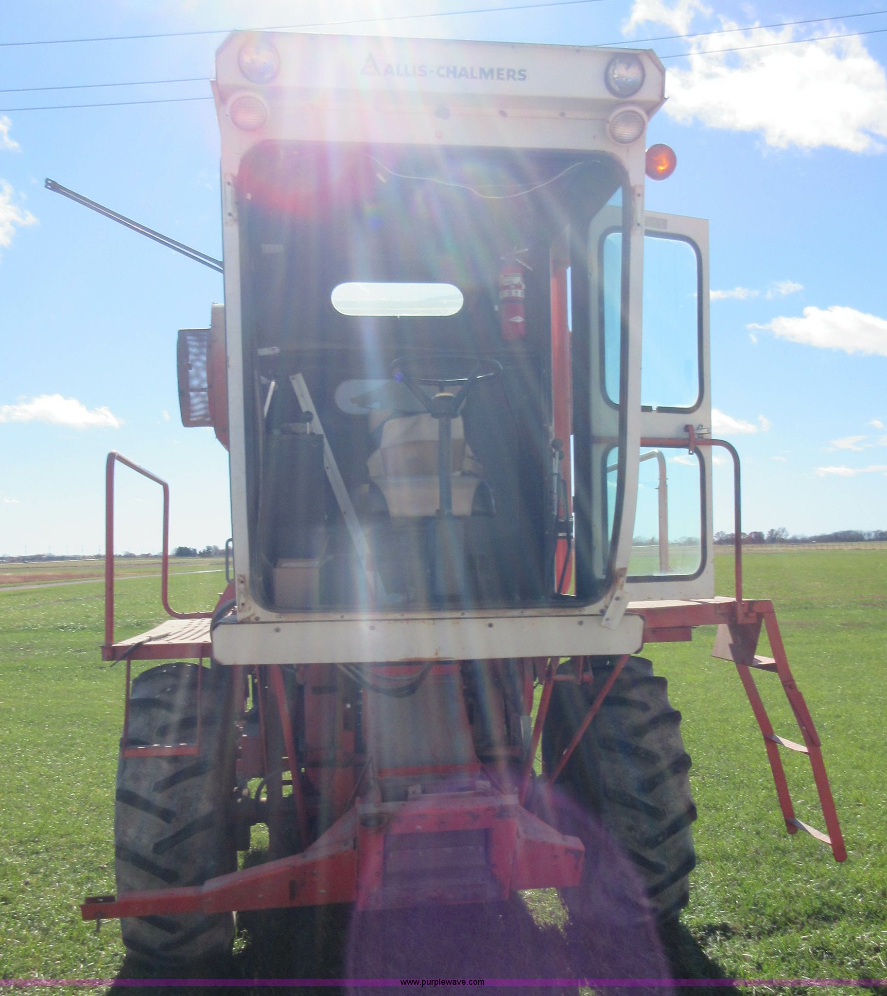 Purple Wave is selling a used Cotton Harvester Equip. in Kansas. This item is a Allis Chalmers 582000 cotton picker with the following: Allis Chalmers 2800 six cylinder diesel engine, Three speed variable transmission, 16.9-26 front tires, 7.50-16LT rear tires, Engine and drive train operational, Parts missing, Non-operational cotton picking unit, Serial 3058