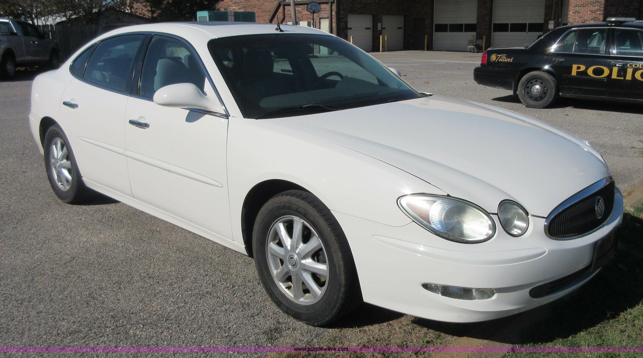 Purple Wave is selling a used Passenger Vehicle in Kansas. This item is a 2005 Buick LaCrosse CXL with the following: 107,906 miles on odometer, 3.8L V6 OHV 12V gas engine, Automatic transmission, AC and heat, Tilt, Cruise, AM/FM/CD, Power windows, locks, mirrors, and seat, Leather interior, Sunroof, P225/60R16 tires, Key fob inoperable, Police radio and lights will be removed