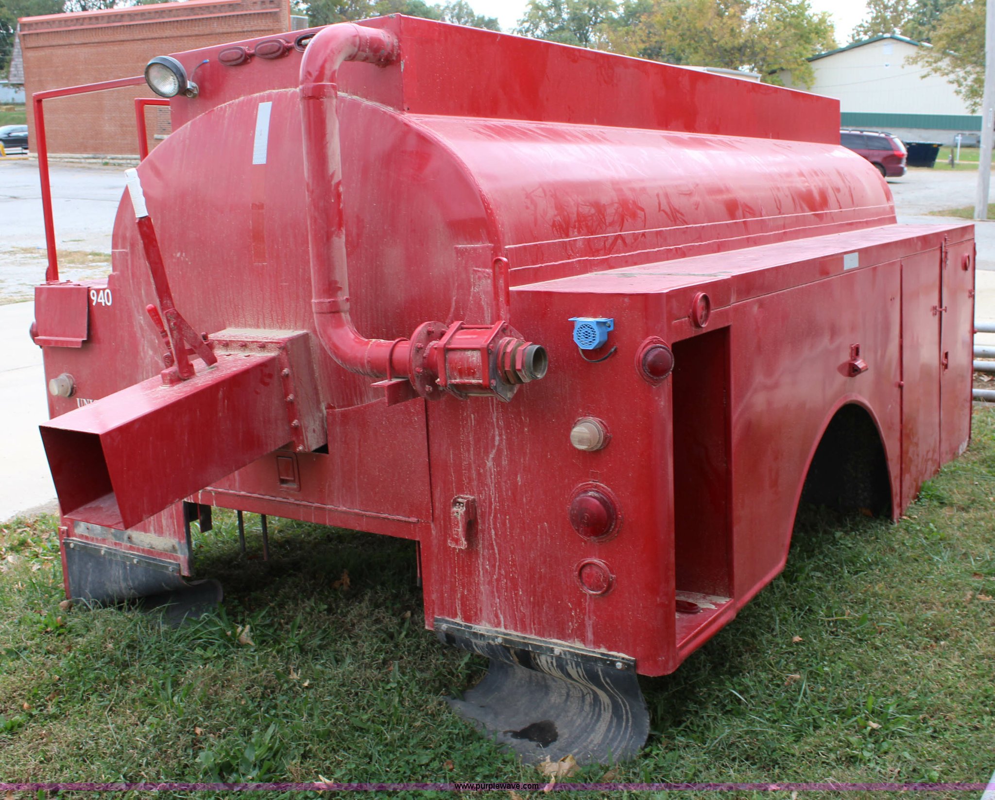 1986 Isometrics tanker bed. 13'L, 1,2000 gallon tanker bed, 9" quick dump, Removed from International 1600 truck, Serial 186T1234. Jefferson County Fire District No. 9. 104 W Lucy St. McLouth, KS 66054