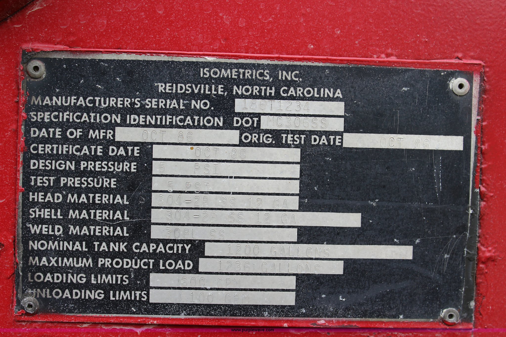 1986 Isometrics tanker bed has sold in McLouth, Kansas for $302.50. Item BB9259 sold on December 8th, 2015.