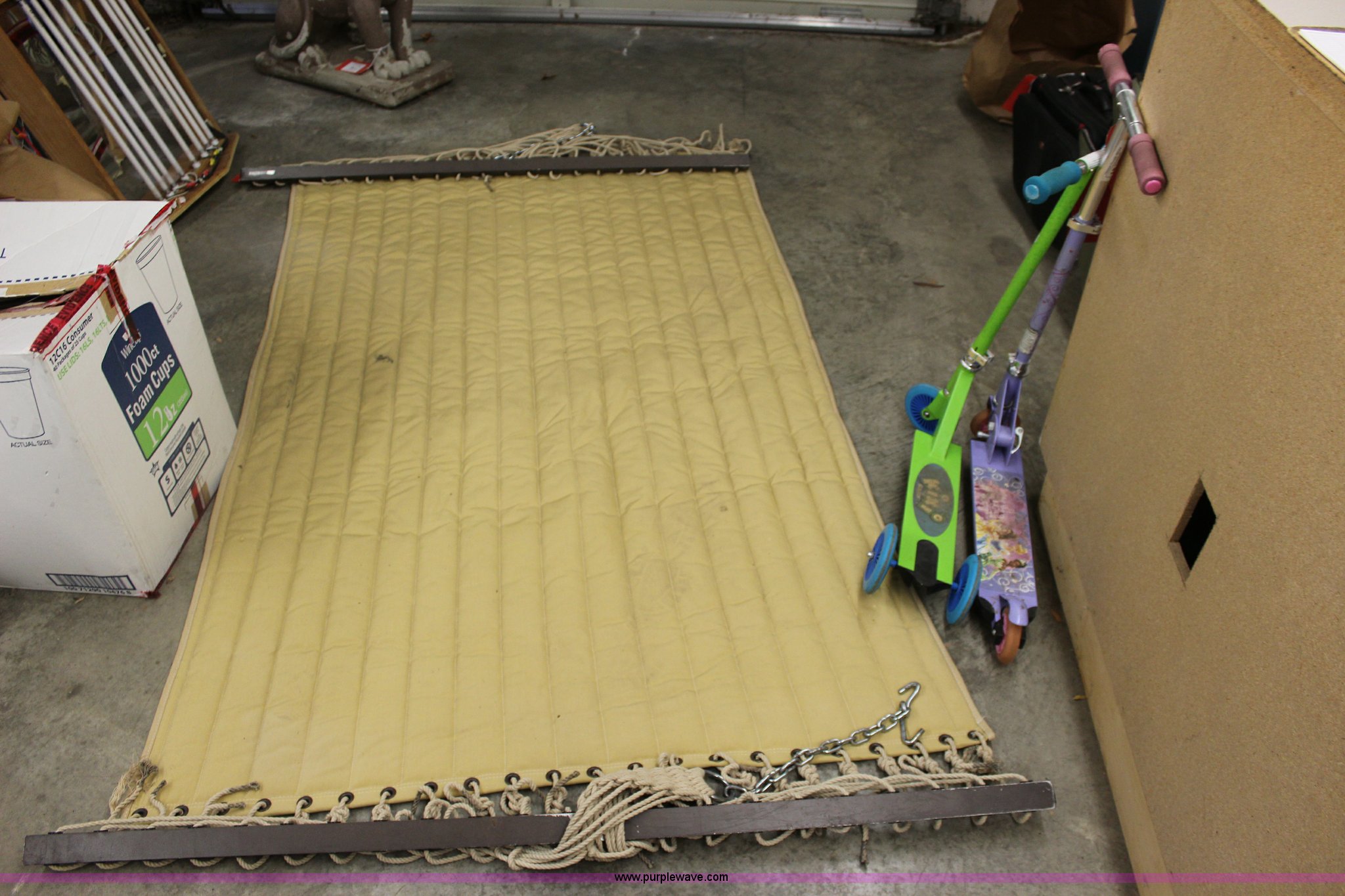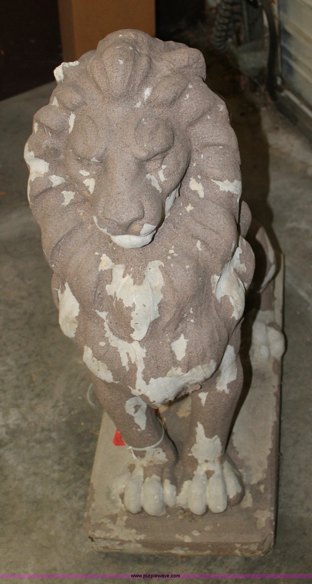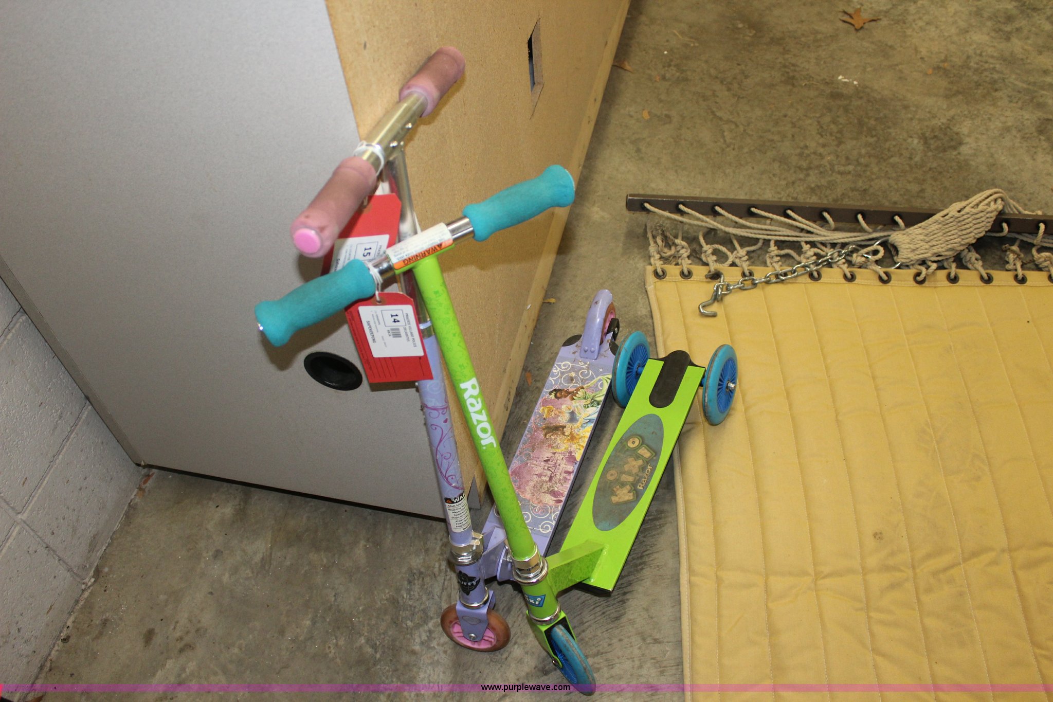 Purple Wave is selling a used Sporting Goods in Kansas. This item is a Assorted items with the following: Concrete lion, Hammock, (2) scooters, (2) suitcases