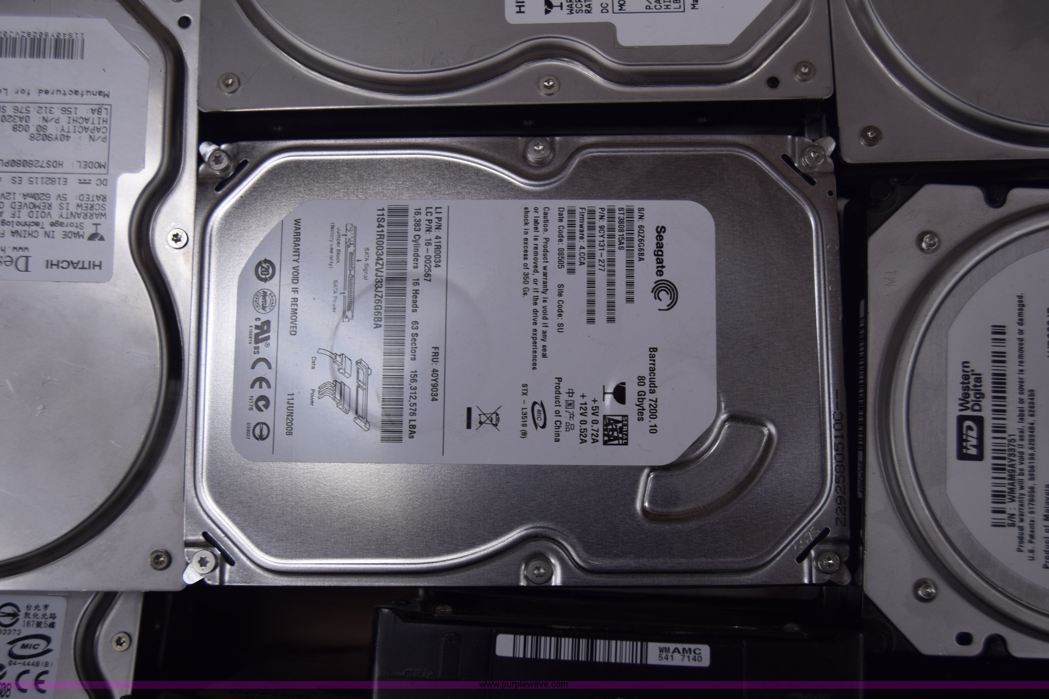Purple Wave is selling a used Computers in Kansas. This item is a (42) assorted computer hard drives with the following: (35) 80 GB, (7) 40 GB, Formatted