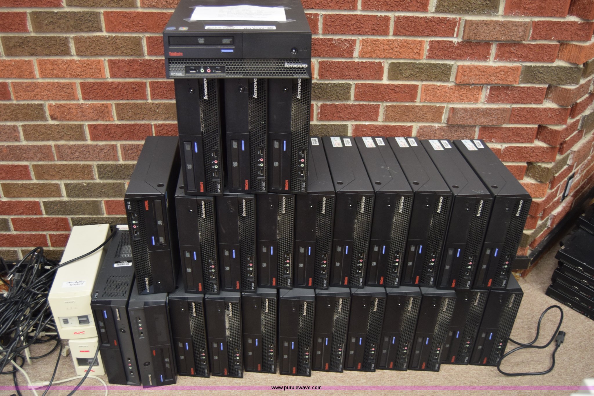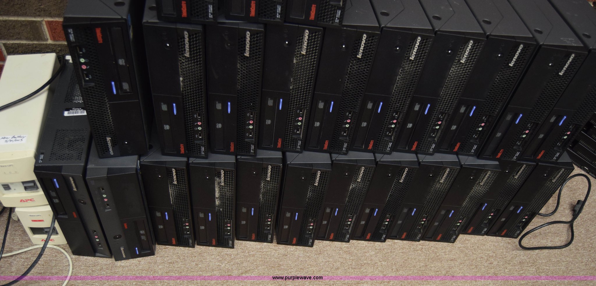 Purple Wave is selling a used Computers in Kansas. This item is a (26) Lenovo 6072 computer towers with the following: Intel Core 2 Duo E4600 processors, 2 GB RAM, 74 GB storage, Windows XP Professional, (2) APC power backups
