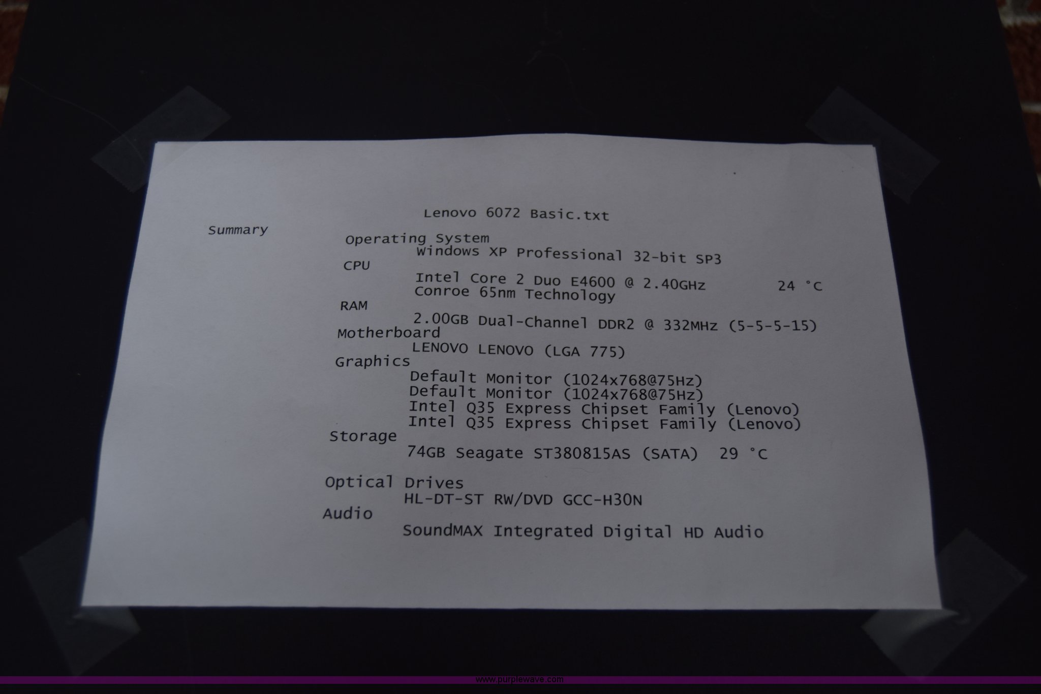 (26) Lenovo 6072 computer towers has sold in Andale, Kansas for $121. Item BO9702 sold on December 8th, 2015.