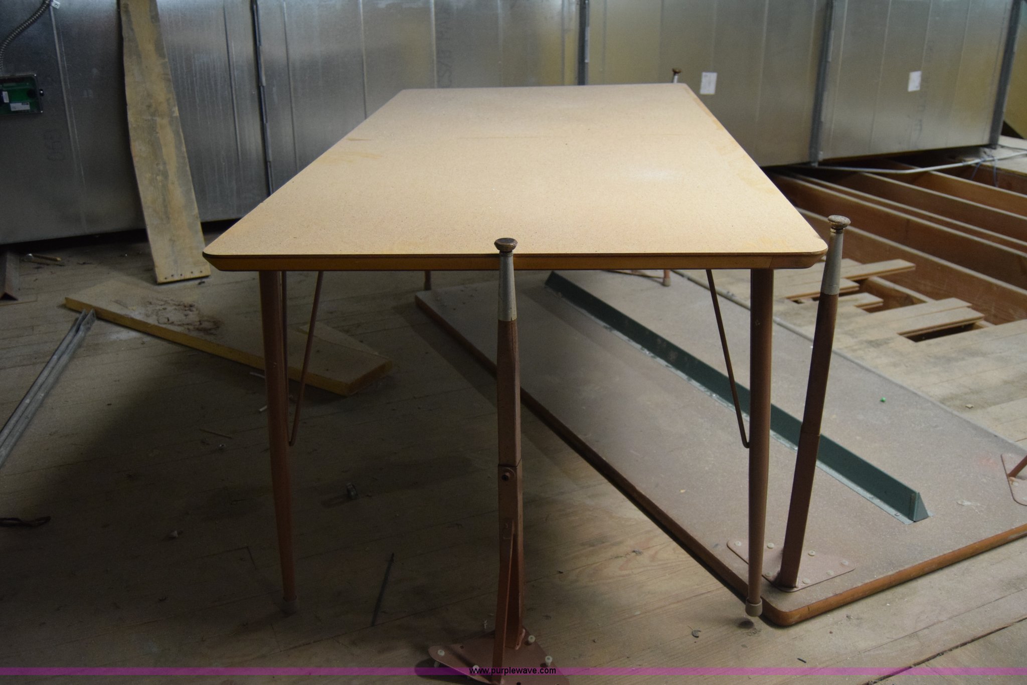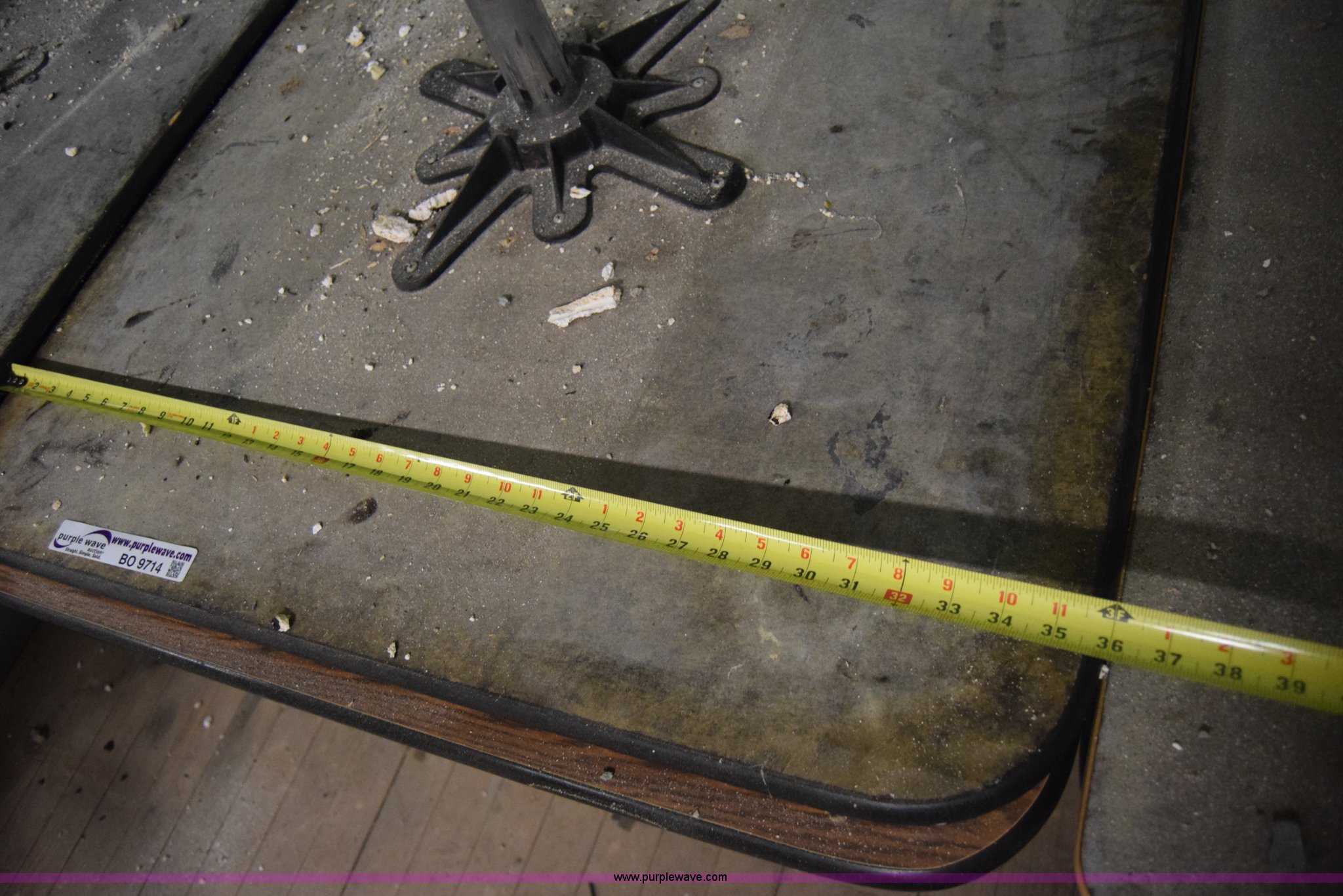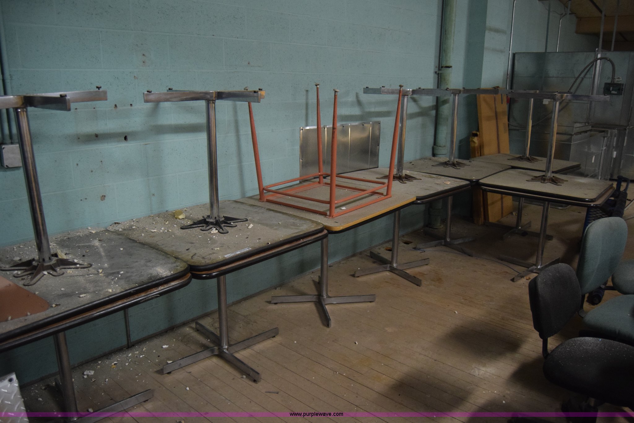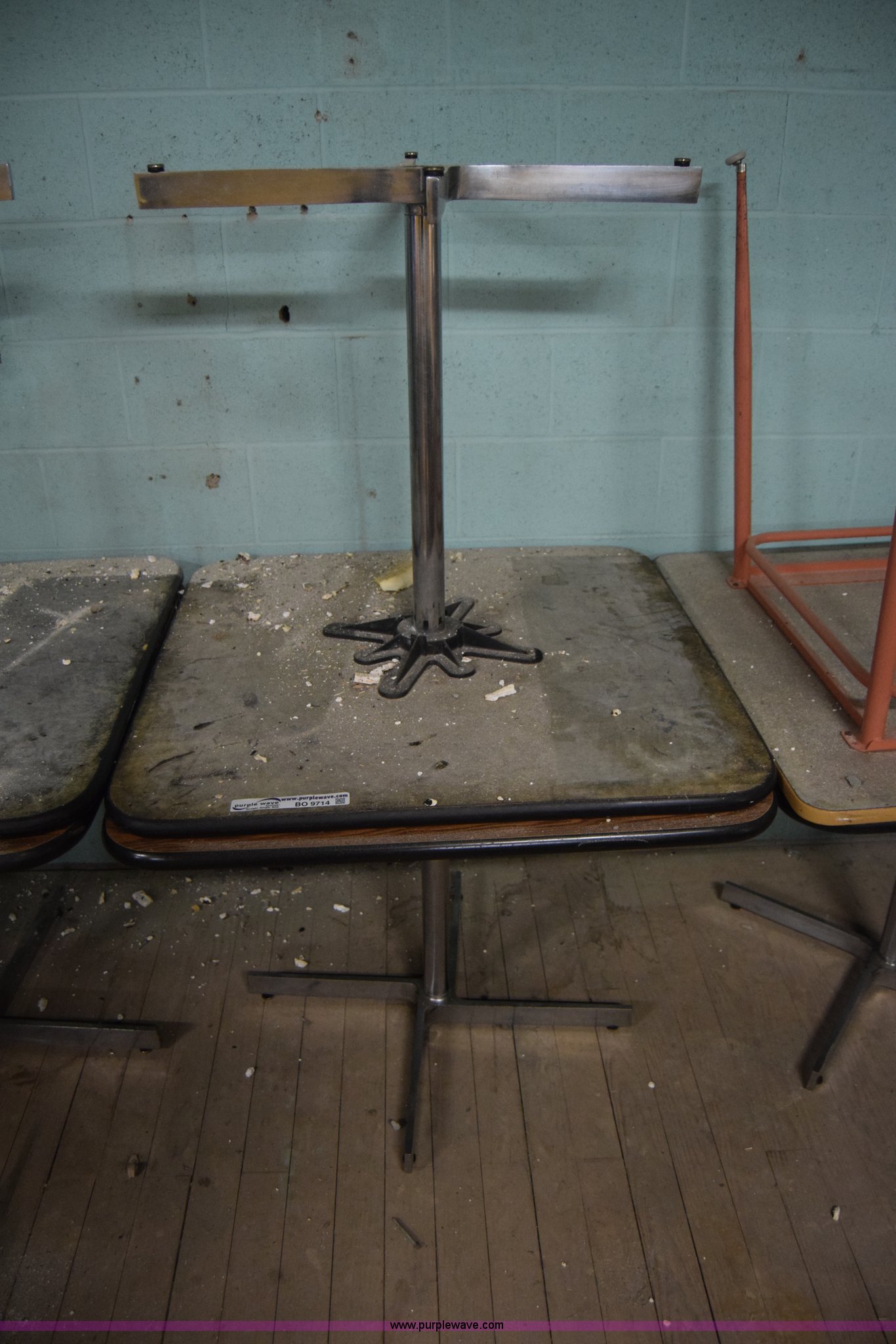 Purple Wave is selling a used Furniture in Kansas. This item is a (15) tables with the following: (14) 36" x 36", 6' x 3', Various conditions