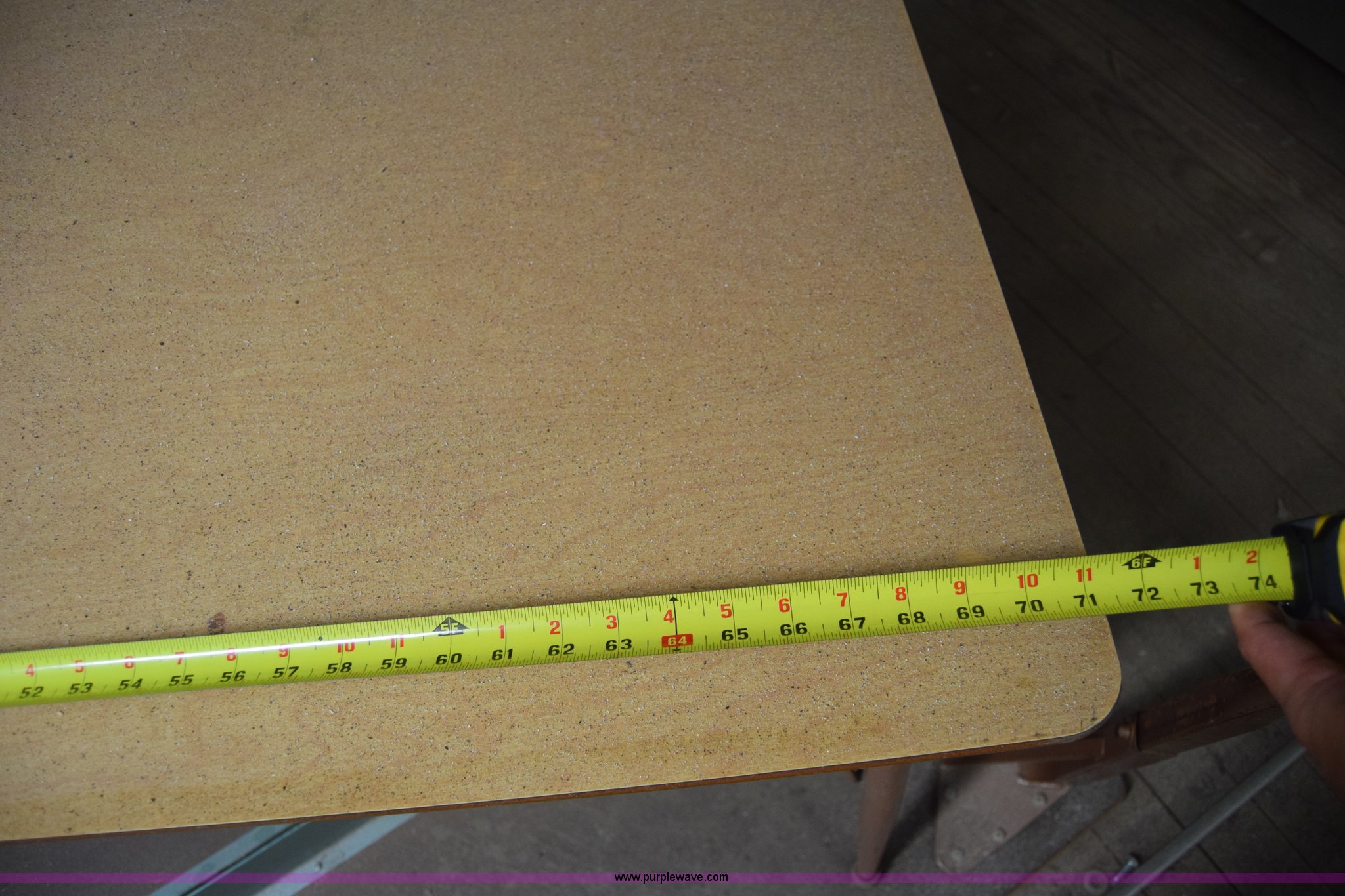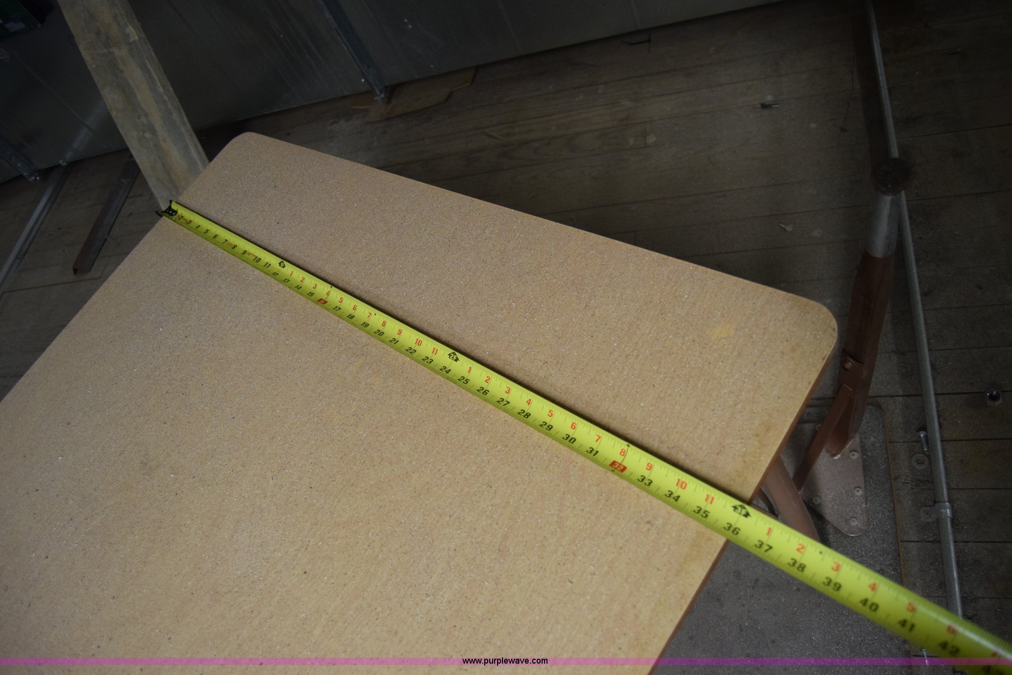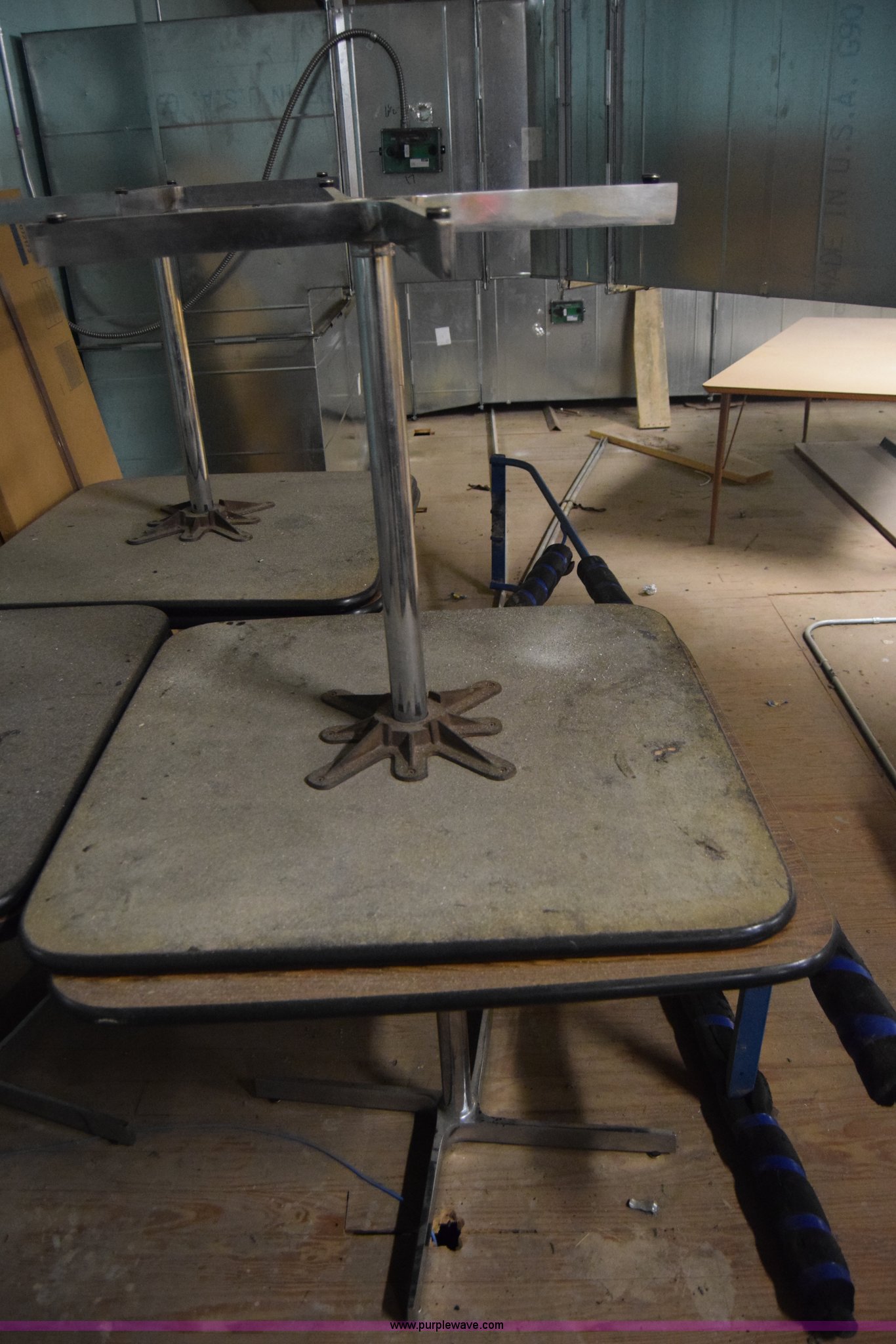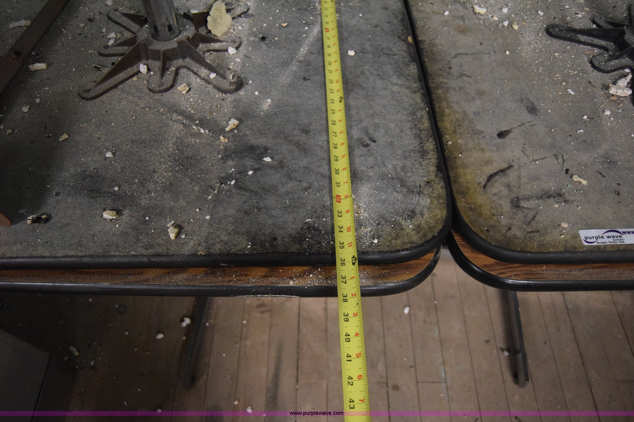 Purple Wave is selling a used Furniture in Kansas. This item is a (15) tables with the following: (14) 36" x 36", 6' x 3', Various conditions