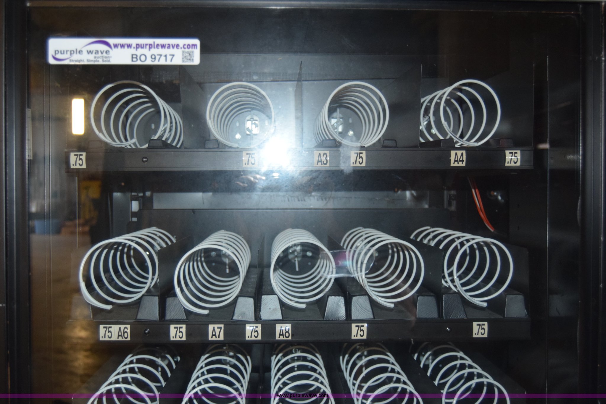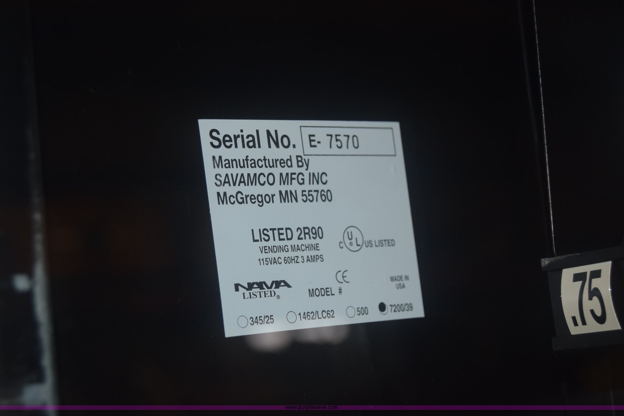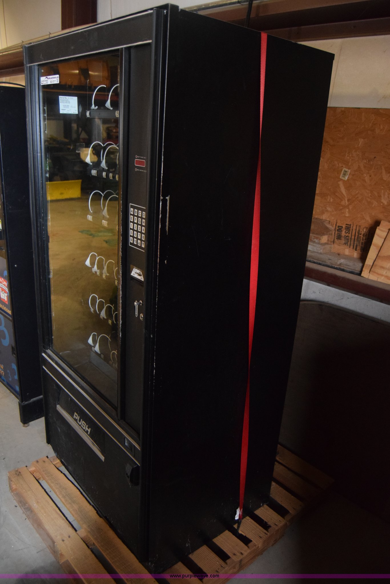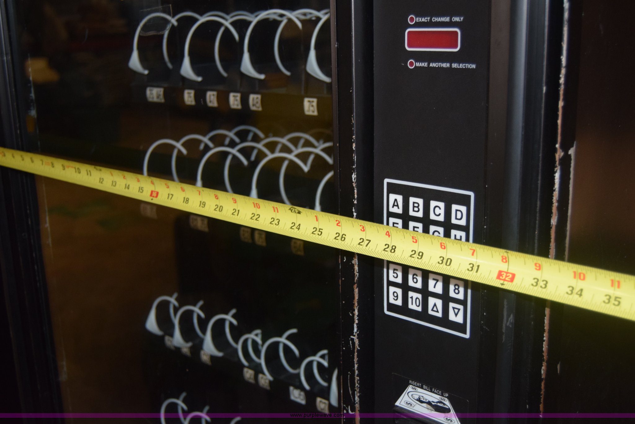 Purple Wave is selling a used Retail Displays in Kansas. This item is a Sovamco vending machine with the following: Model 7200/39, Six row, Bill accepter, 115V, 33"W x 62"H x 27"D