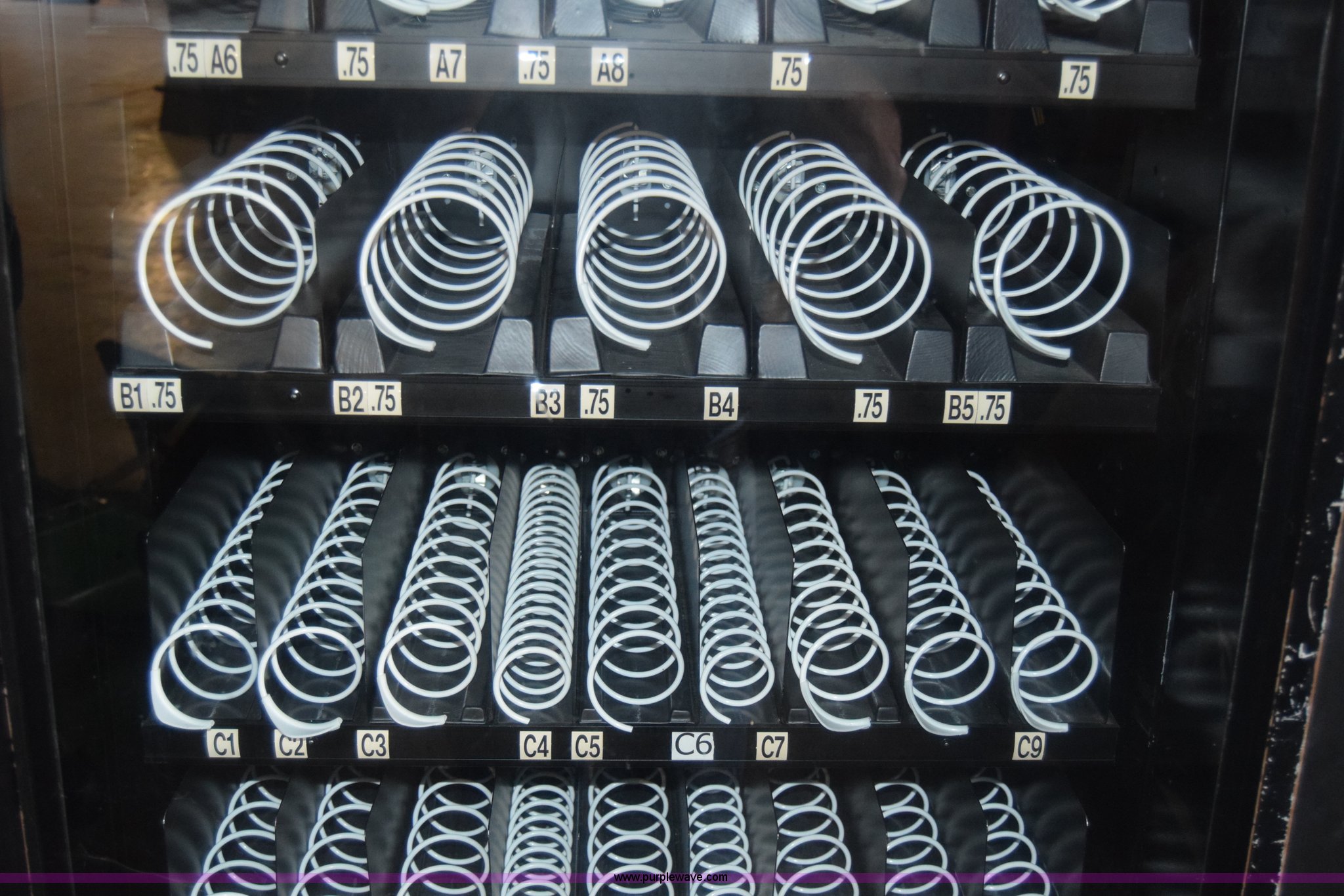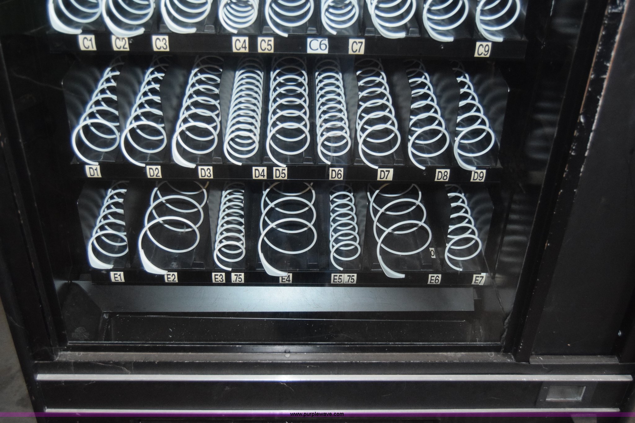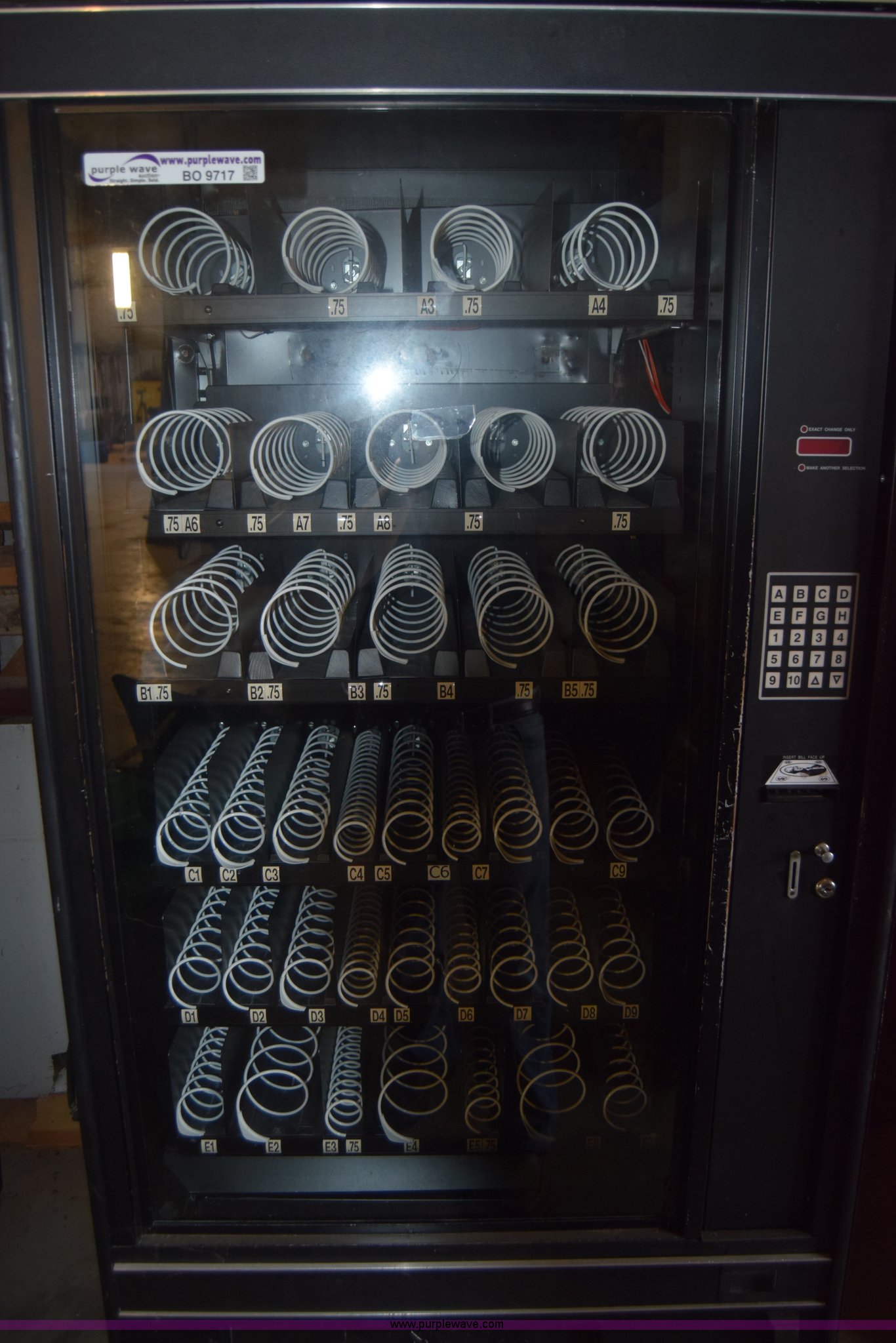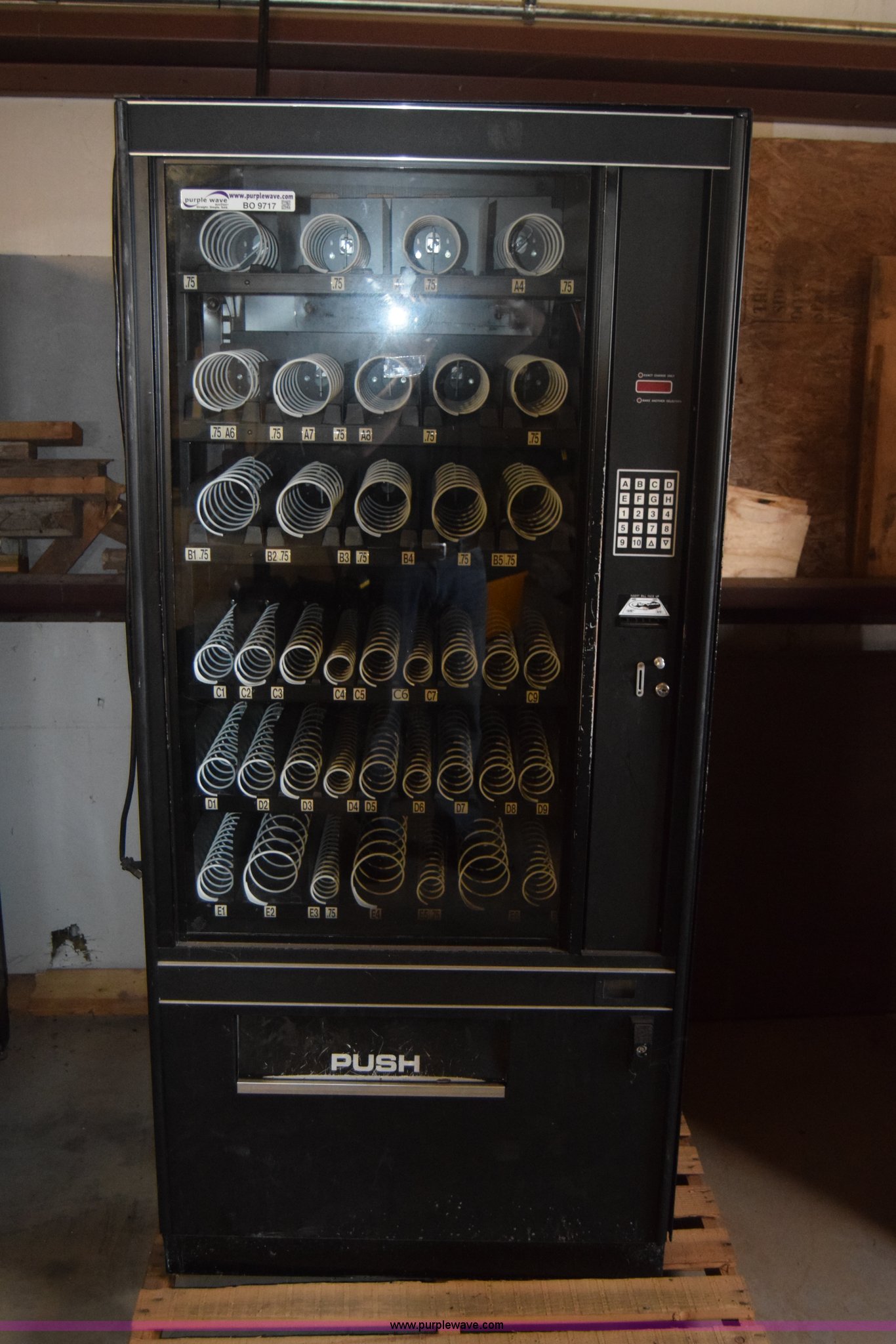 Purple Wave is selling a used Retail Displays in Kansas. This item is a Sovamco vending machine with the following: Model 7200/39, Six row, Bill accepter, 115V, 33"W x 62"H x 27"D
