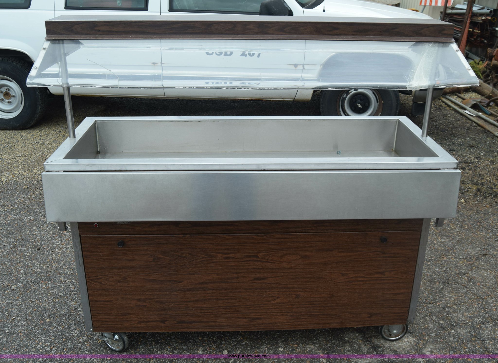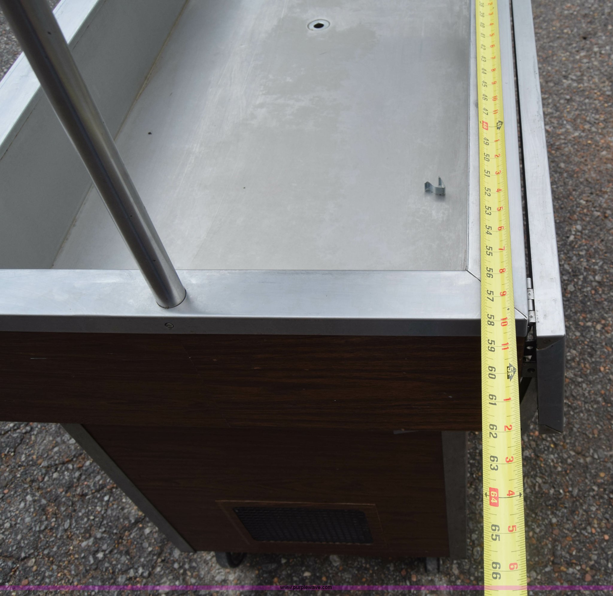 Purple Wave is selling a used Restaurant Equip. in Kansas. This item is a Lakeside Mfg. refrigerated serving cart with the following: Model 602, 58"L x 26"W, 120V, Single phase, Wheels