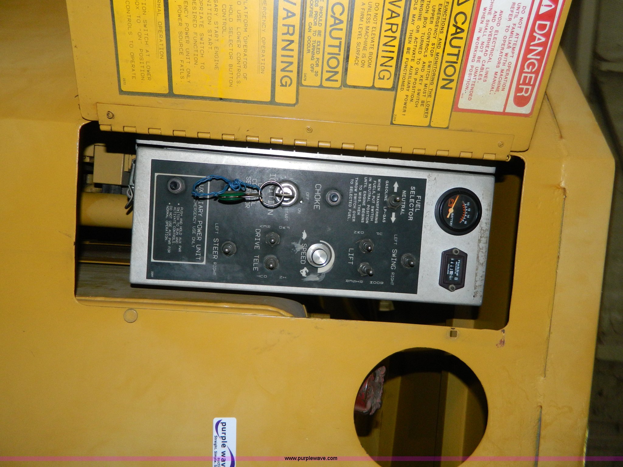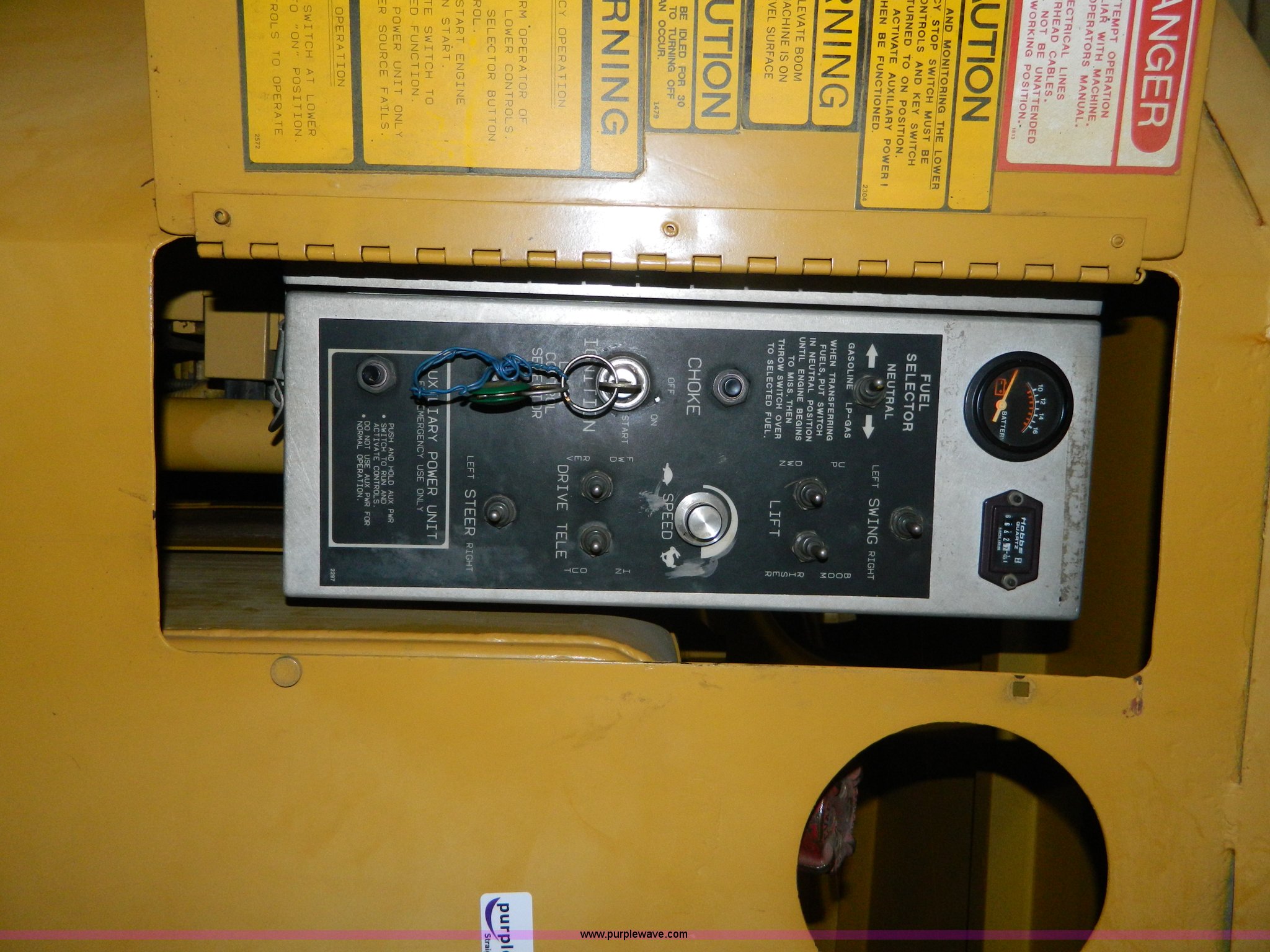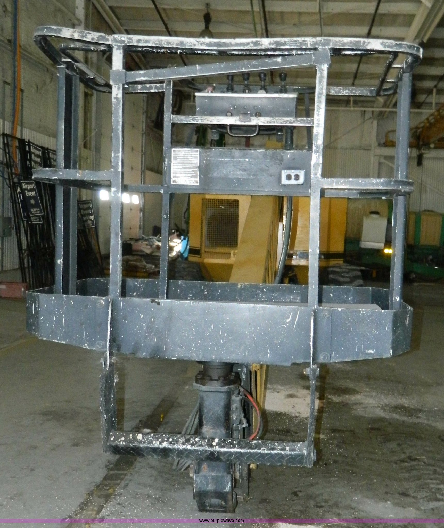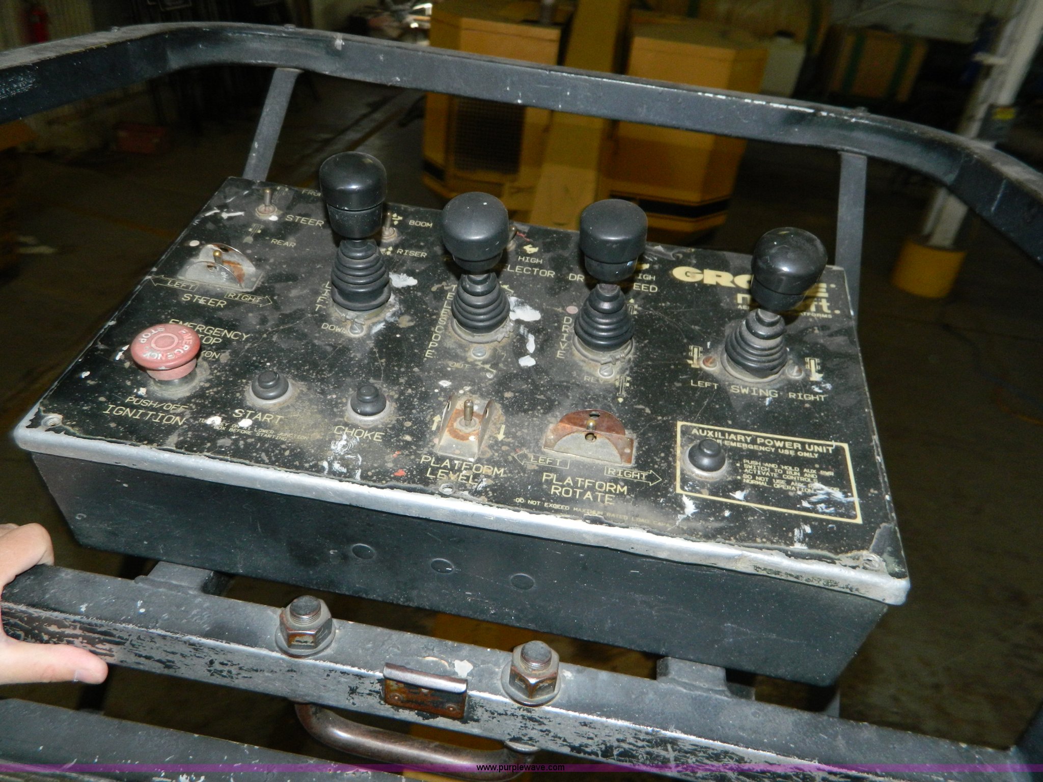 Purple Wave is selling a used Boom Lift in Kansas. This item is a Grove AM266 boom lift with the following: 6,643 hours on meter, Four cylinder dual fuel engine, Gas or propane capable, 500 lbs maximum lift capacity, 60' maximum lift height, Hydraulic leveling, Platform and ground controls, AC power outlet, Platform rotation, 15.19-5 tires, Serial 25656