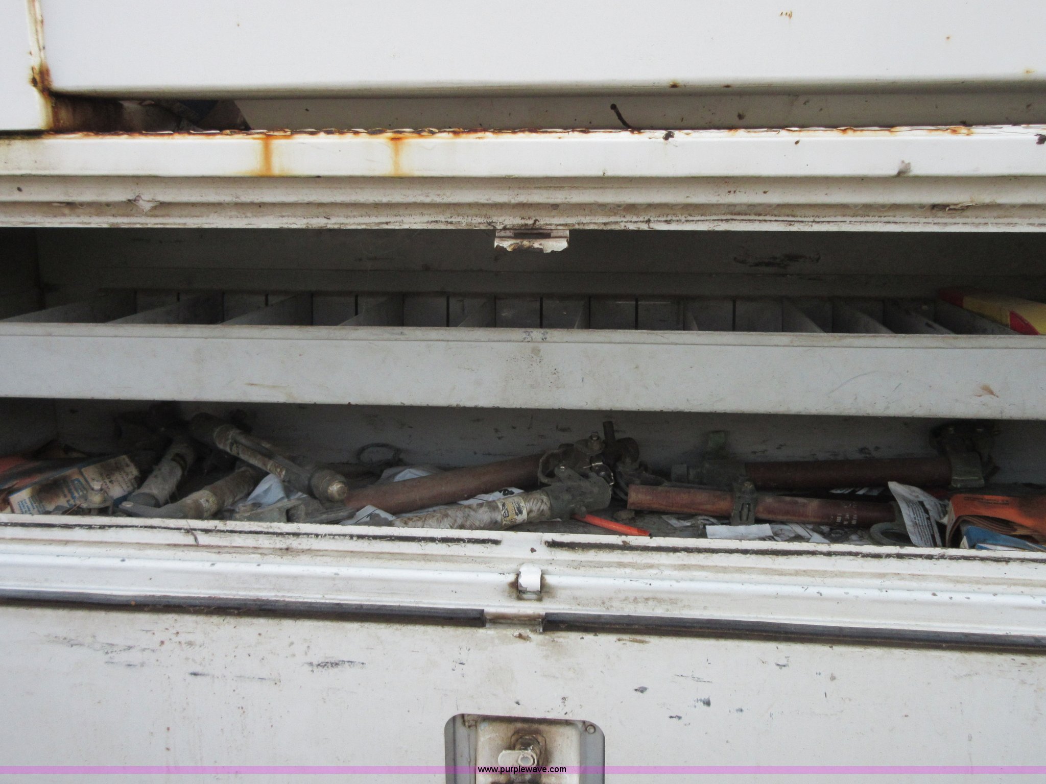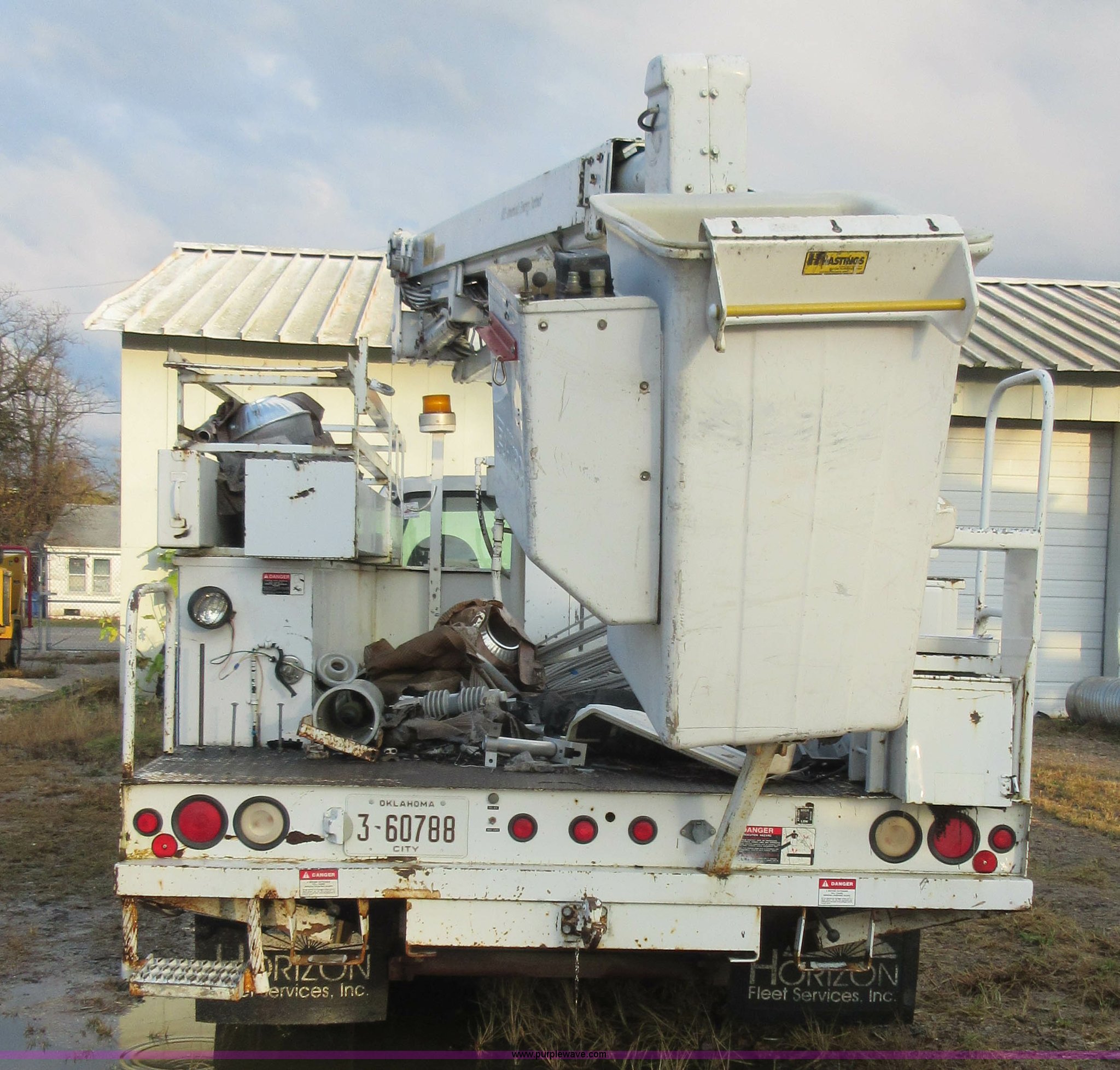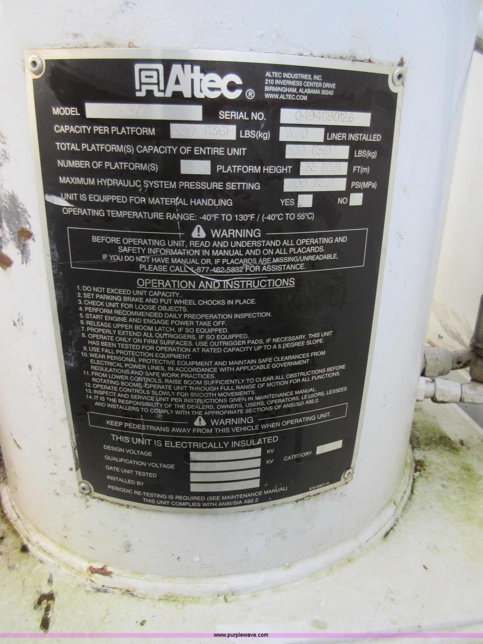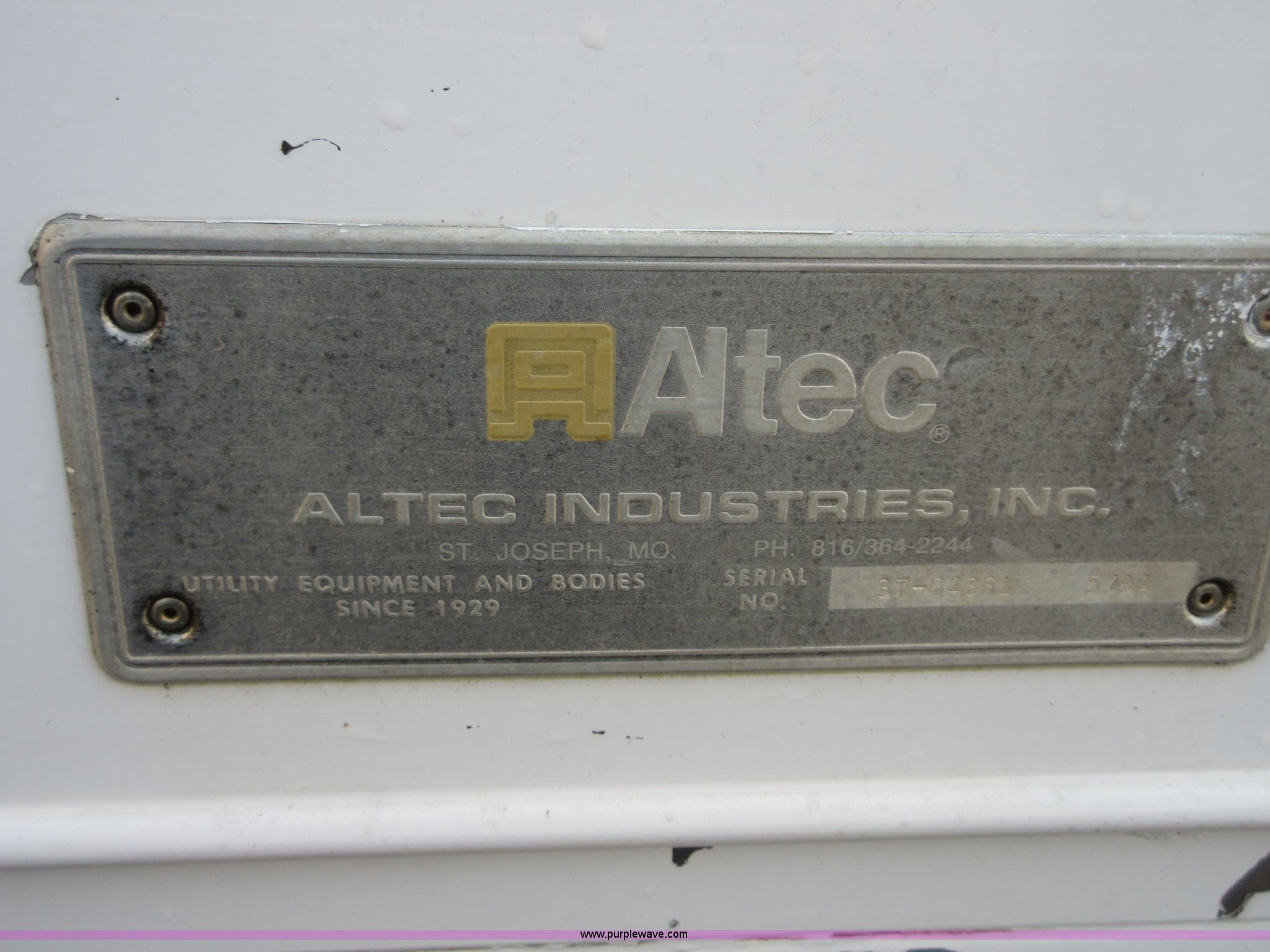 Purple Wave is selling a used Bucket Truck in Oklahoma. This item is a 2000 Ford F550 bucket truck with the following: 129,680 miles on odometer, 8,994 hours on meter, 7.3L V8 turbo diesel engine, Automatic transmission, Single axle, AC and heat, AM/FM, Block heater, PTO, Altec service bed, Serial 3T-64361, Shelving, Work lights, Pintle hitch, Altec TA35 boom, Serial 0494CB0126, 300 lbs maximum lift capacity, 35' maximum lift height, Ground and platform controls, Boom rotation, Articulating boom, Man basket, Single exhaust stack, Spring suspension, Hydraulic brakes, 225/70R19.5 tires, GVWR 17,500 lbs, Two way radio is not included, One outrigger leaks down, Shifter will not come out of park, Non-operational power steering pump, Unit will not come off idle