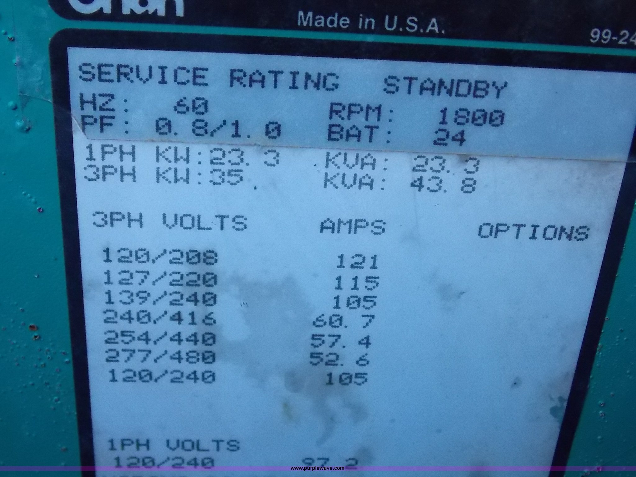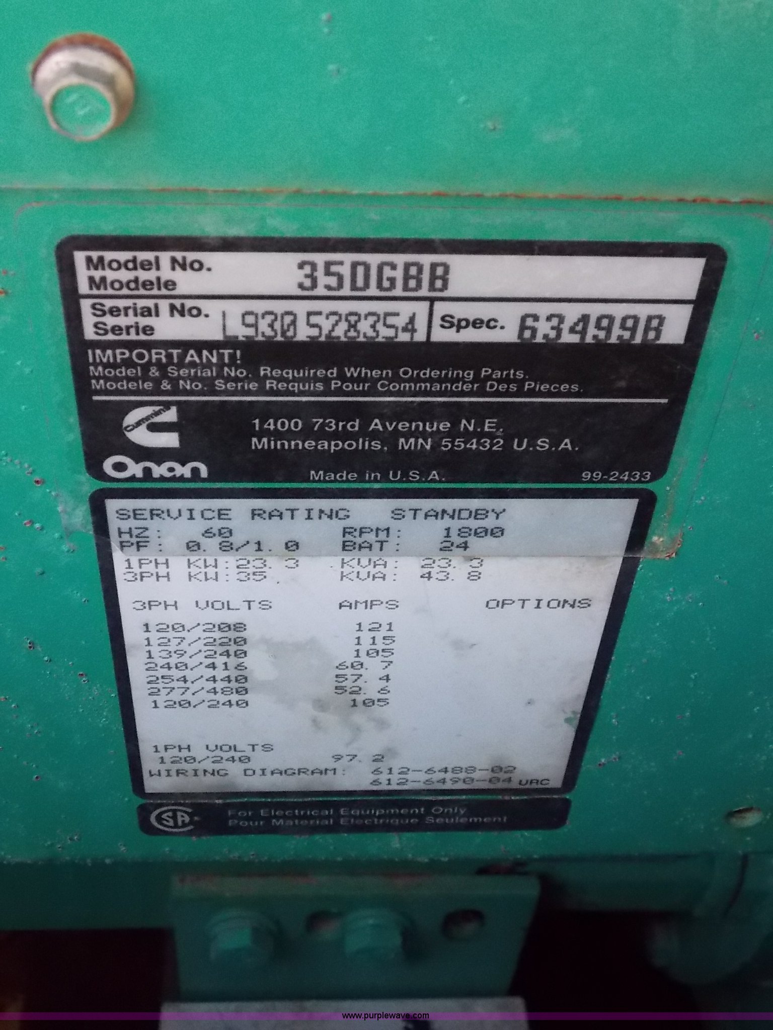 Onan 35DGBB generator has sold in Branson, Missouri for $4400. Item J2685 sold on December 8th, 2015.