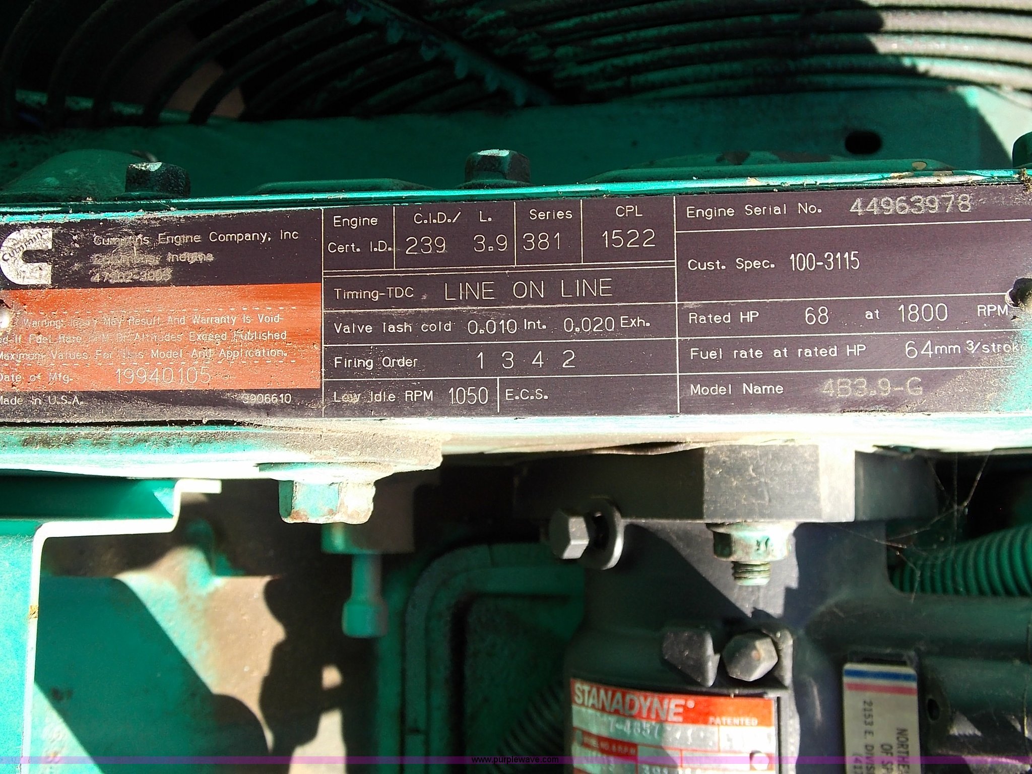 Purple Wave is selling a used Generator Set in Missouri. This item is a Onan 35DGBB generator with the following: 630 hours on meter, Cummins 4B3.9-G four cylinder diesel engine, Exhaust silencer, Model TS251R, Series 381, Three phase, 1,800 RPM, 60 Hz, Serial L930528354