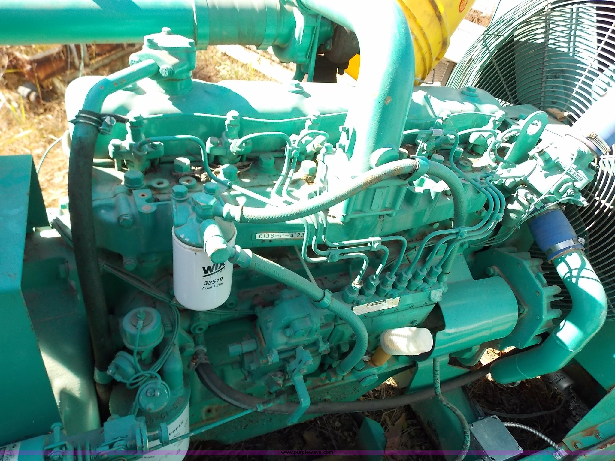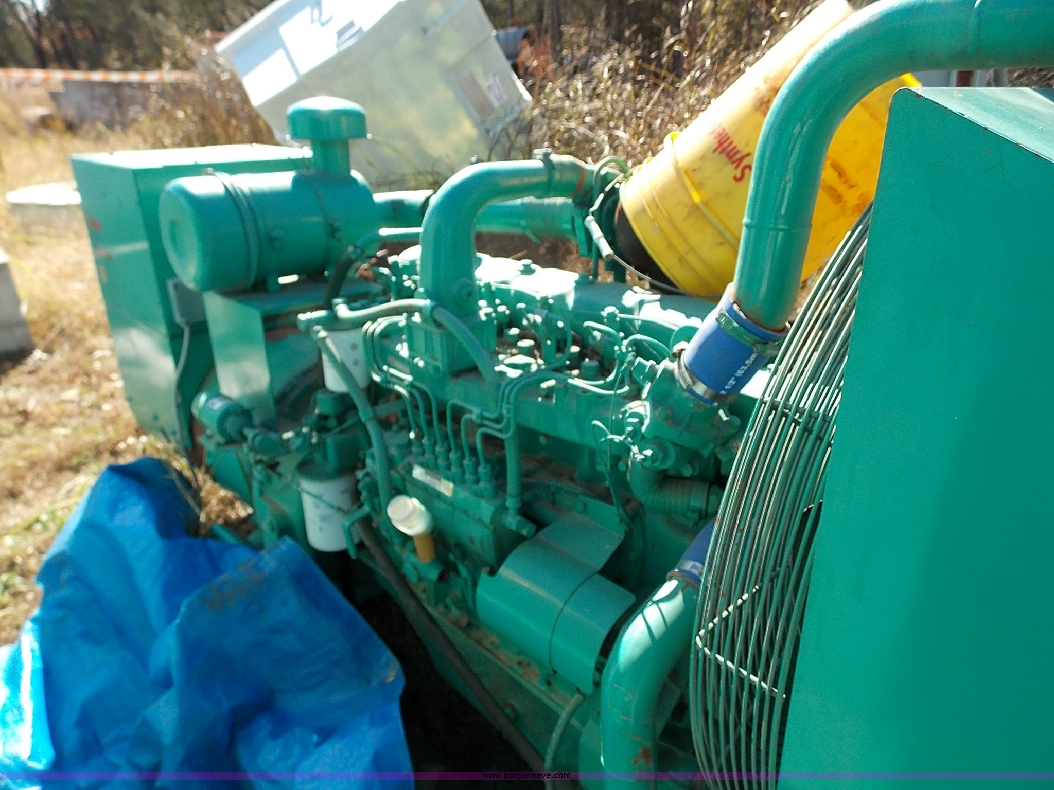 Onan generator. 369 hours on meter, Model 10030DVC-15R/278914, Six cylinder diesel engine Model 0665T, Serial 73116, Three phase, 100 kW each, 60 Hz at 1,800 RPM, Serial E850763867. City of Branson. 2855 Fall Creek Road. Branson, MO 65616